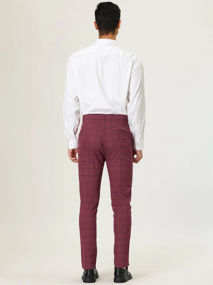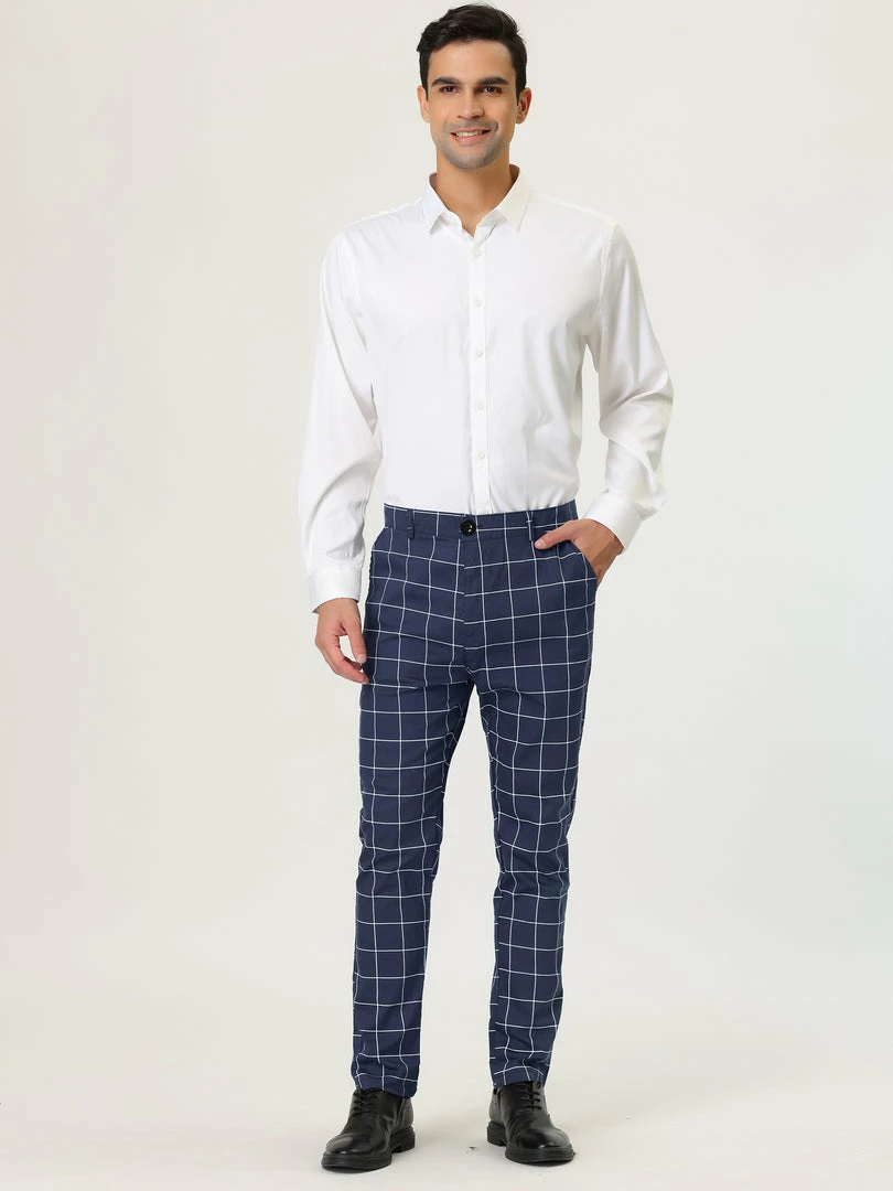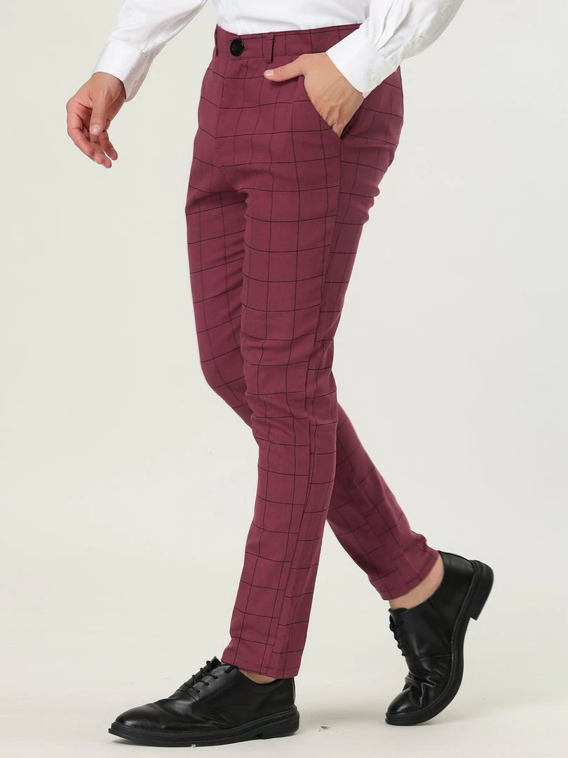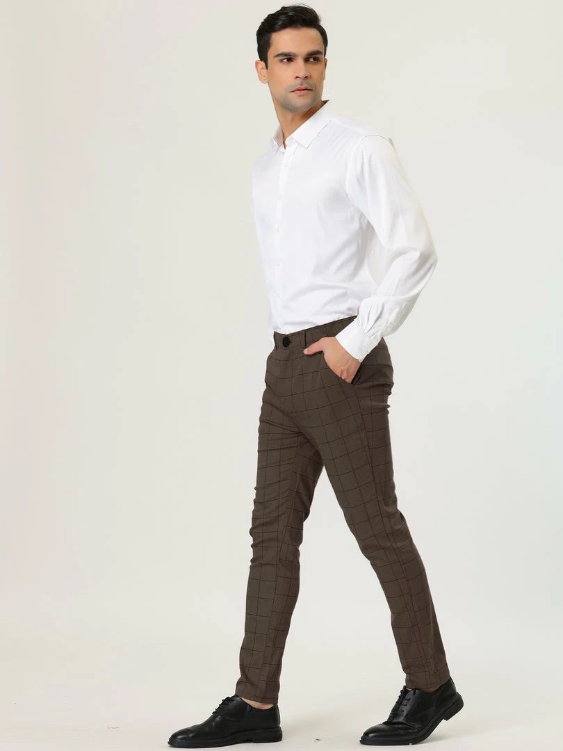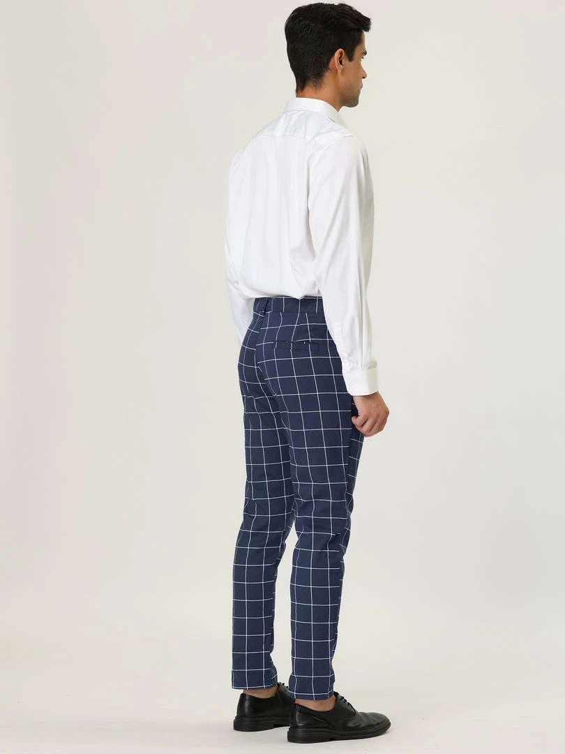 Allegra K Men’s Plaid Dress Slim Fit Checked Business Pants With Pockets