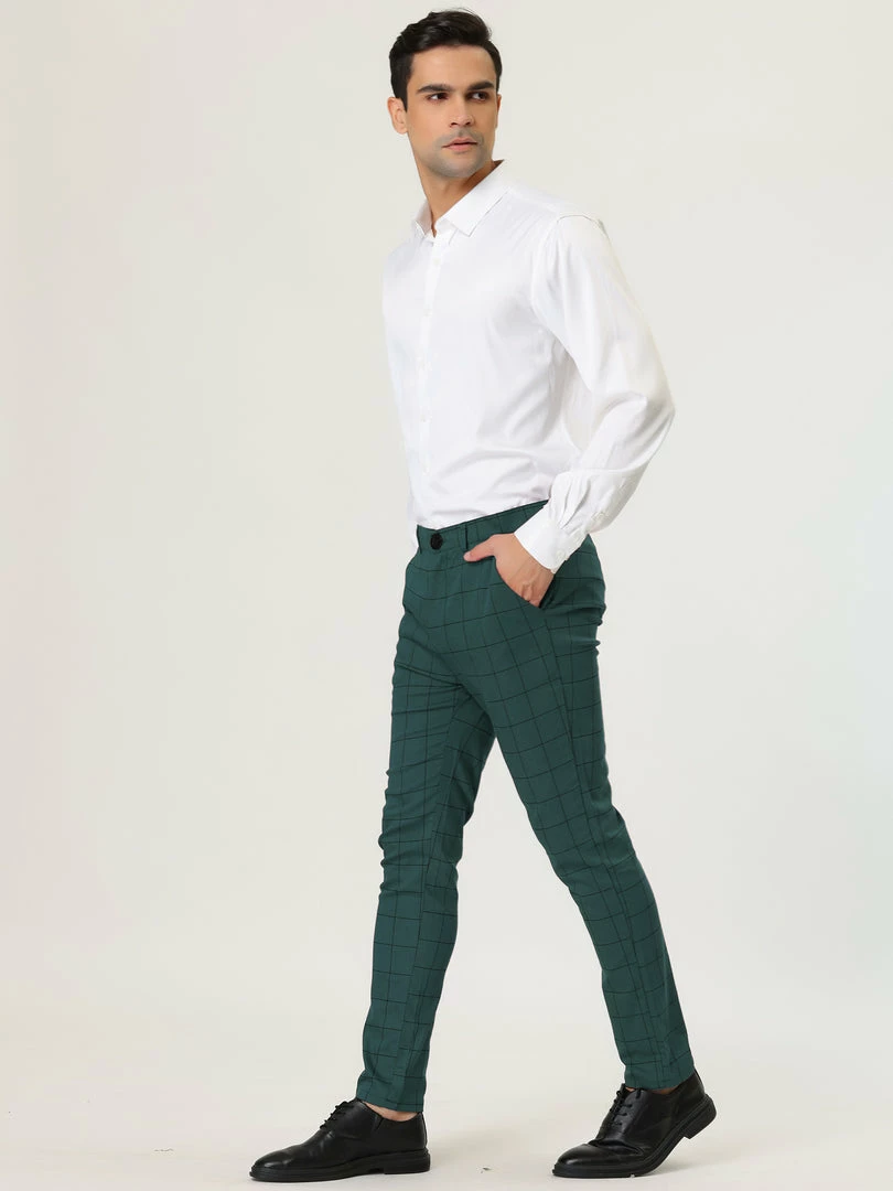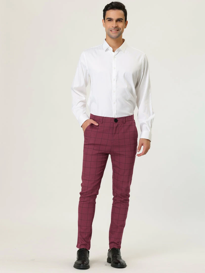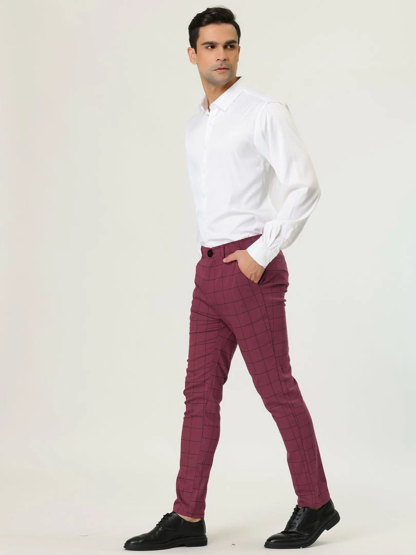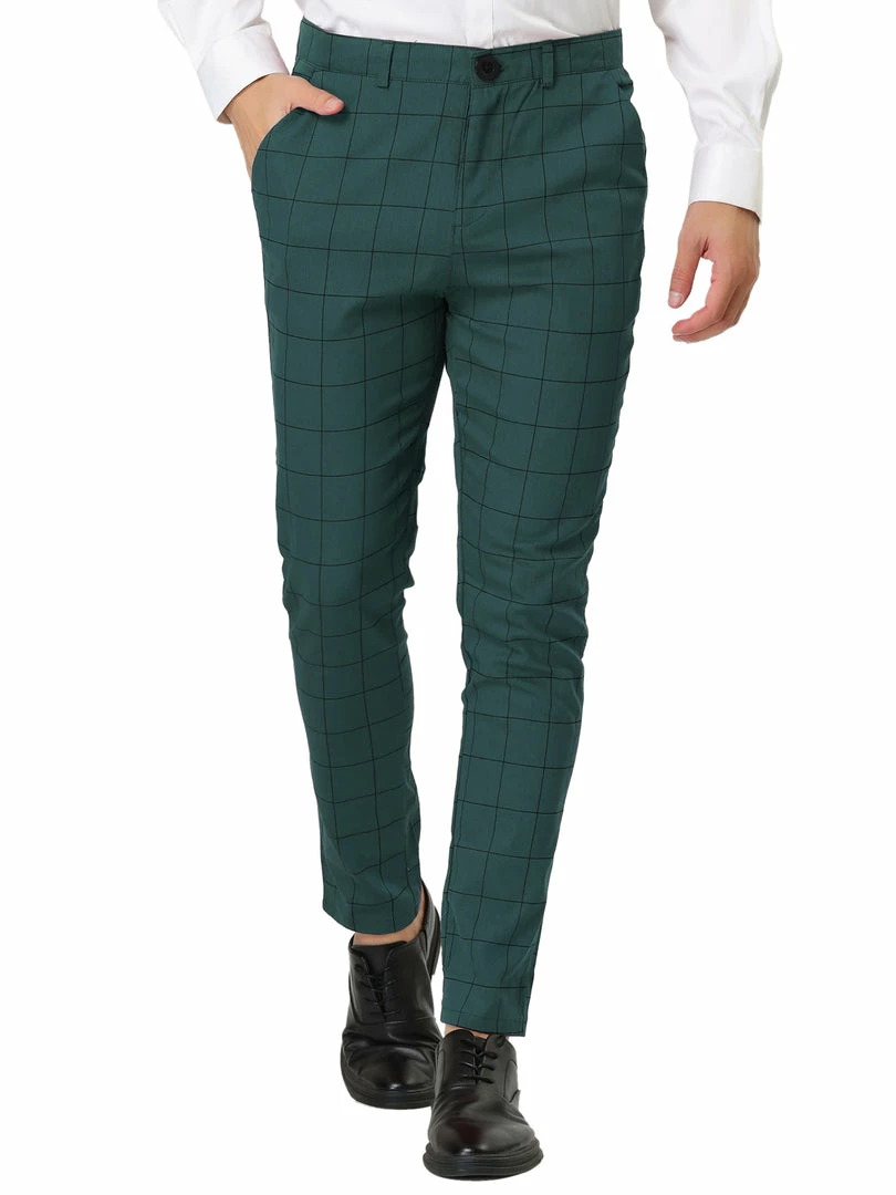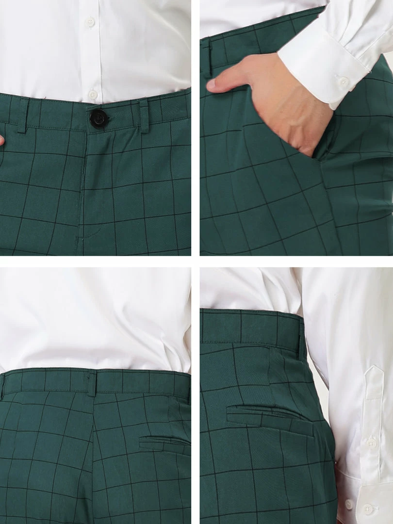 Allegra K Men’s Plaid Dress Slim Fit Checked Business Pants With Pockets