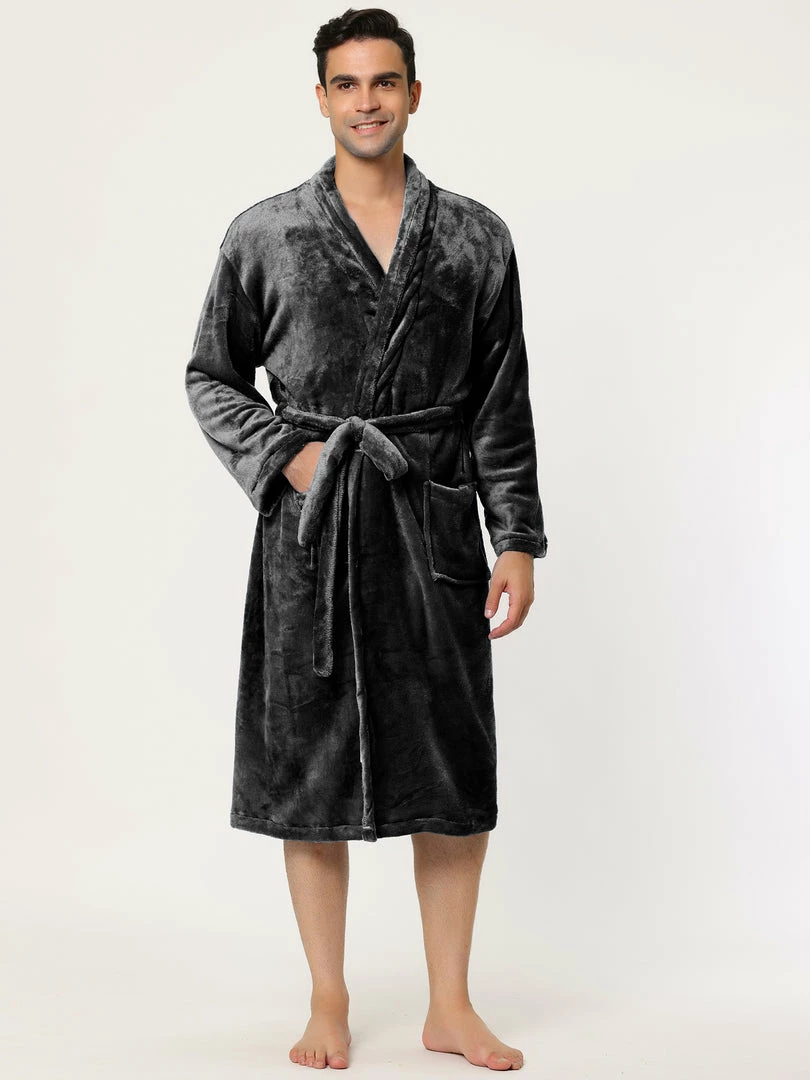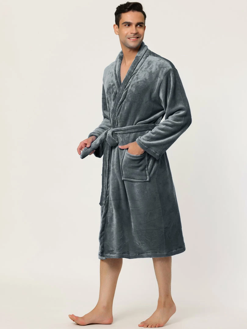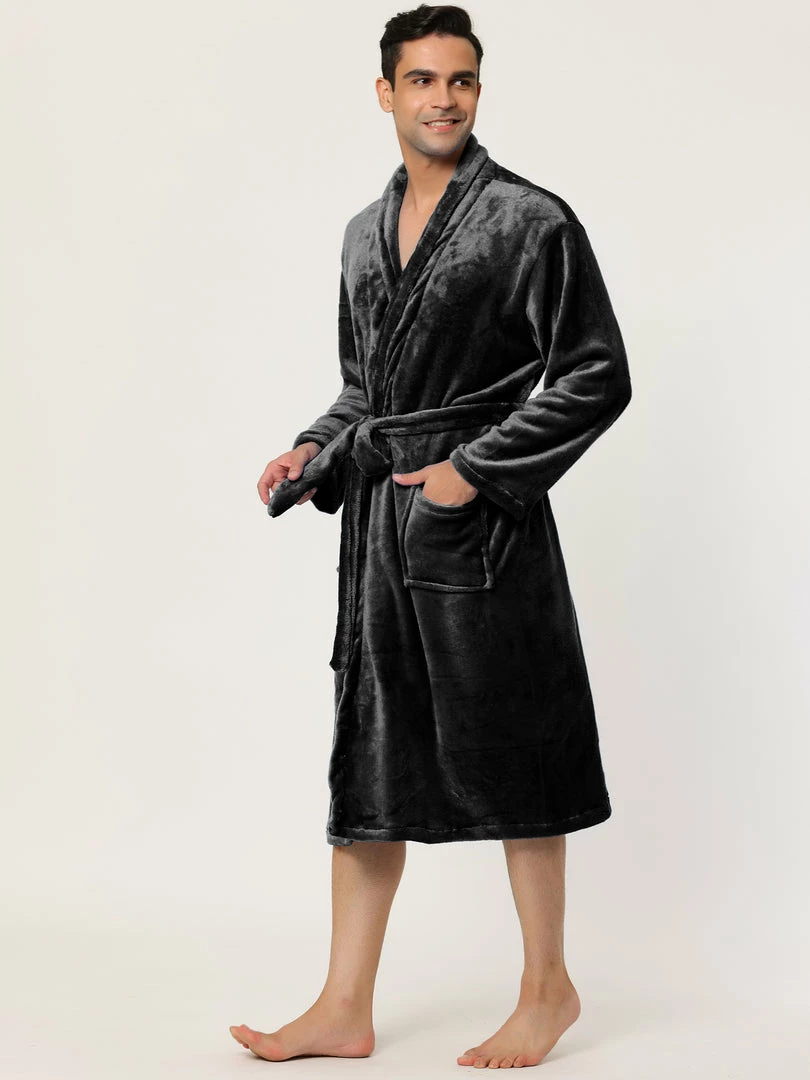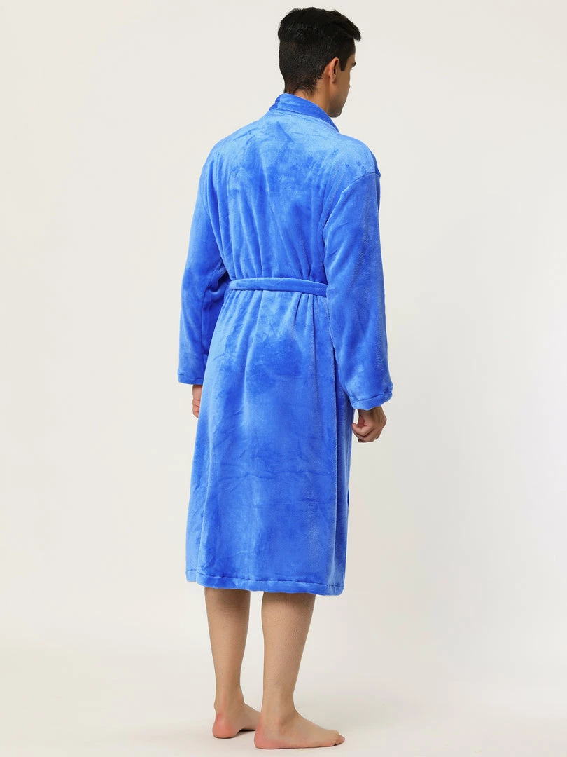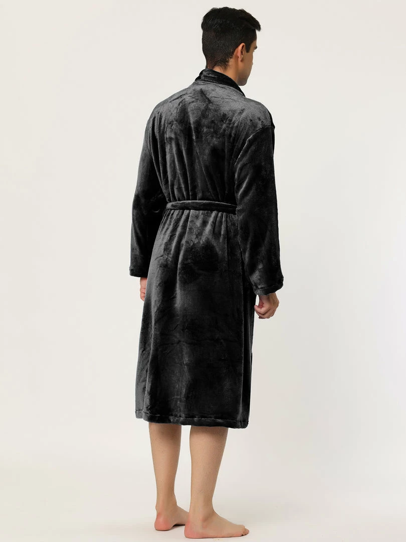 Allegra K Men’s Plush Shawl Collar Robe Long Sleeves Spa Flannel Fleece Bathrobe With Belt