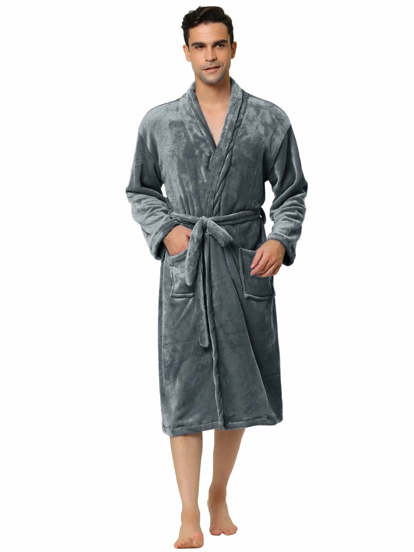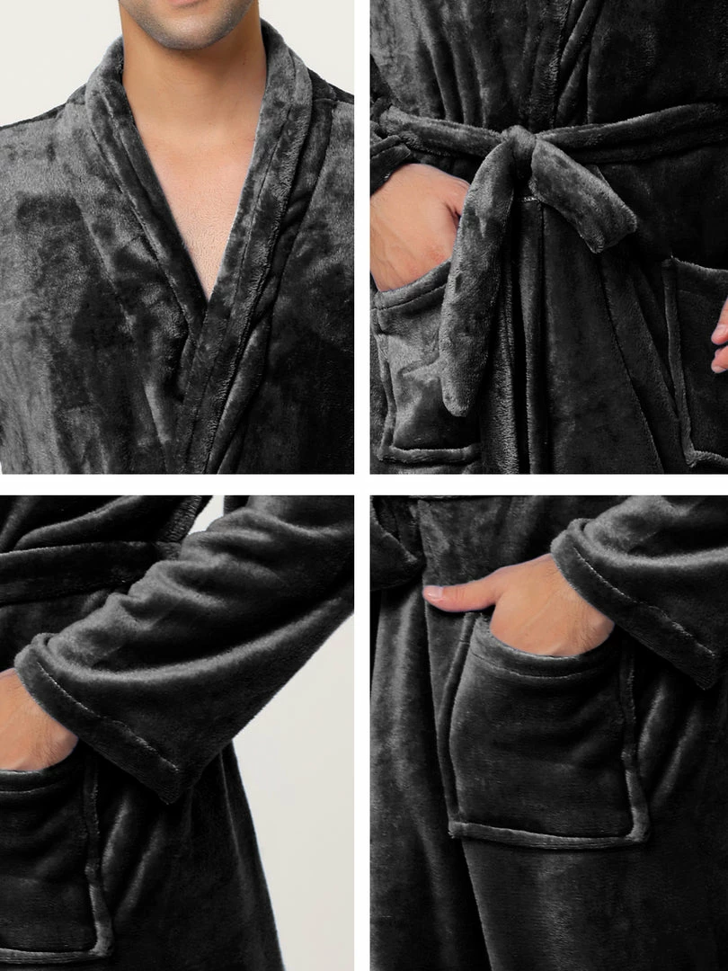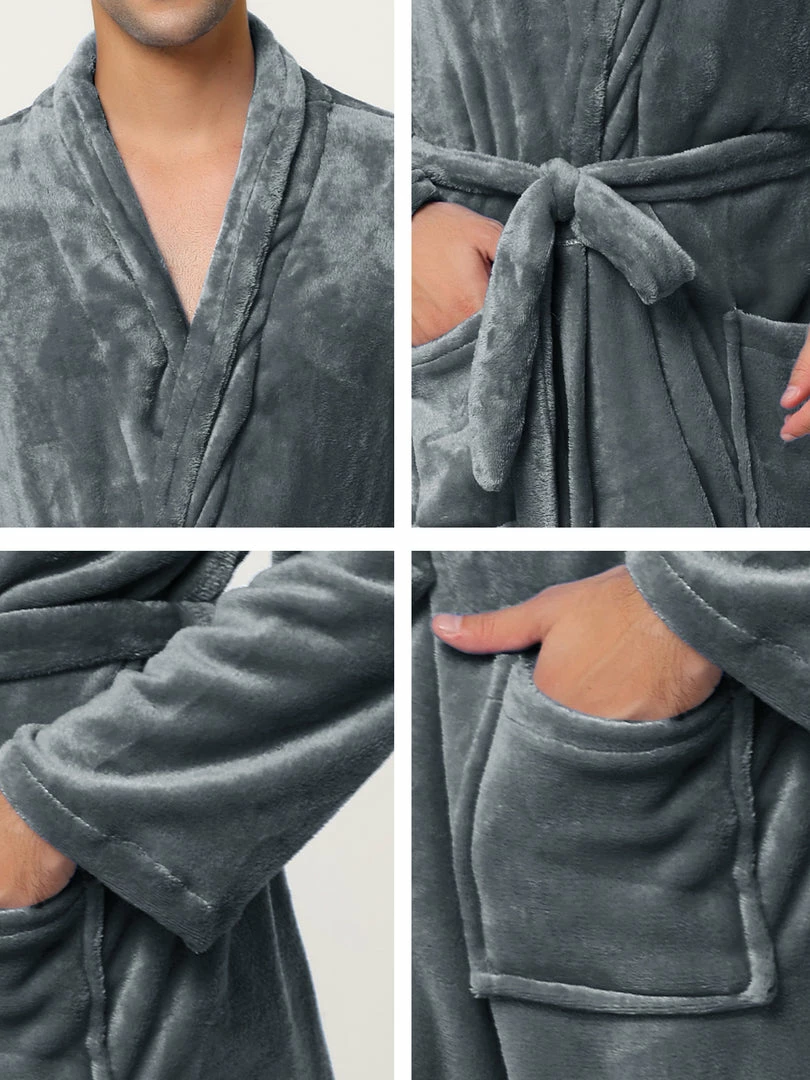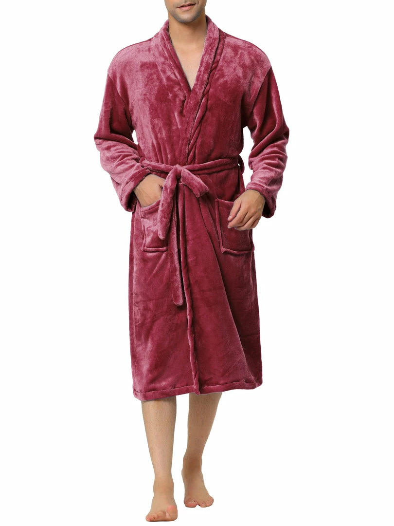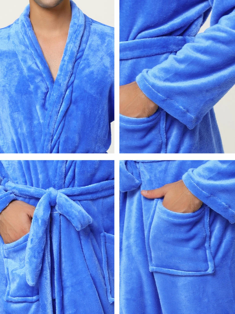 Allegra K Men’s Plush Shawl Collar Robe Long Sleeves Spa Flannel Fleece Bathrobe With Belt