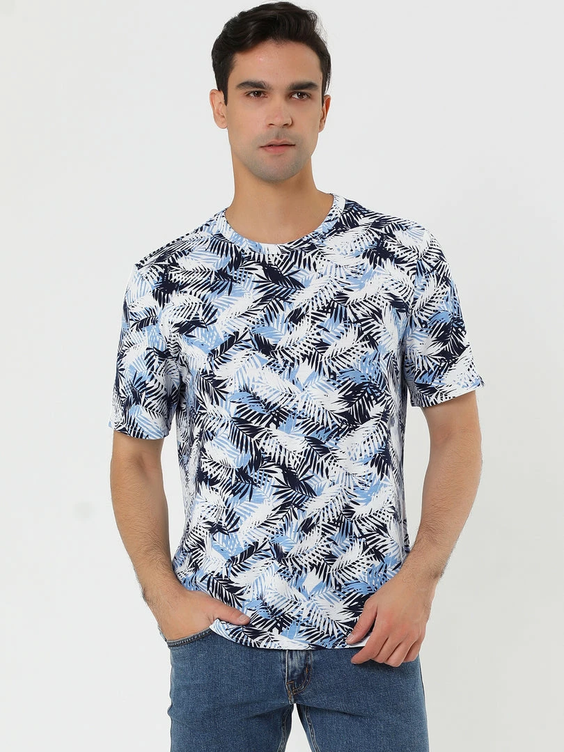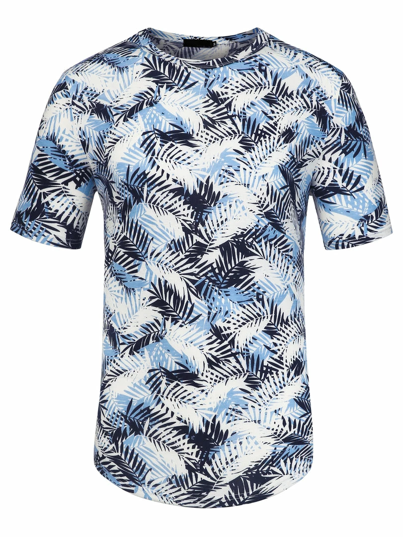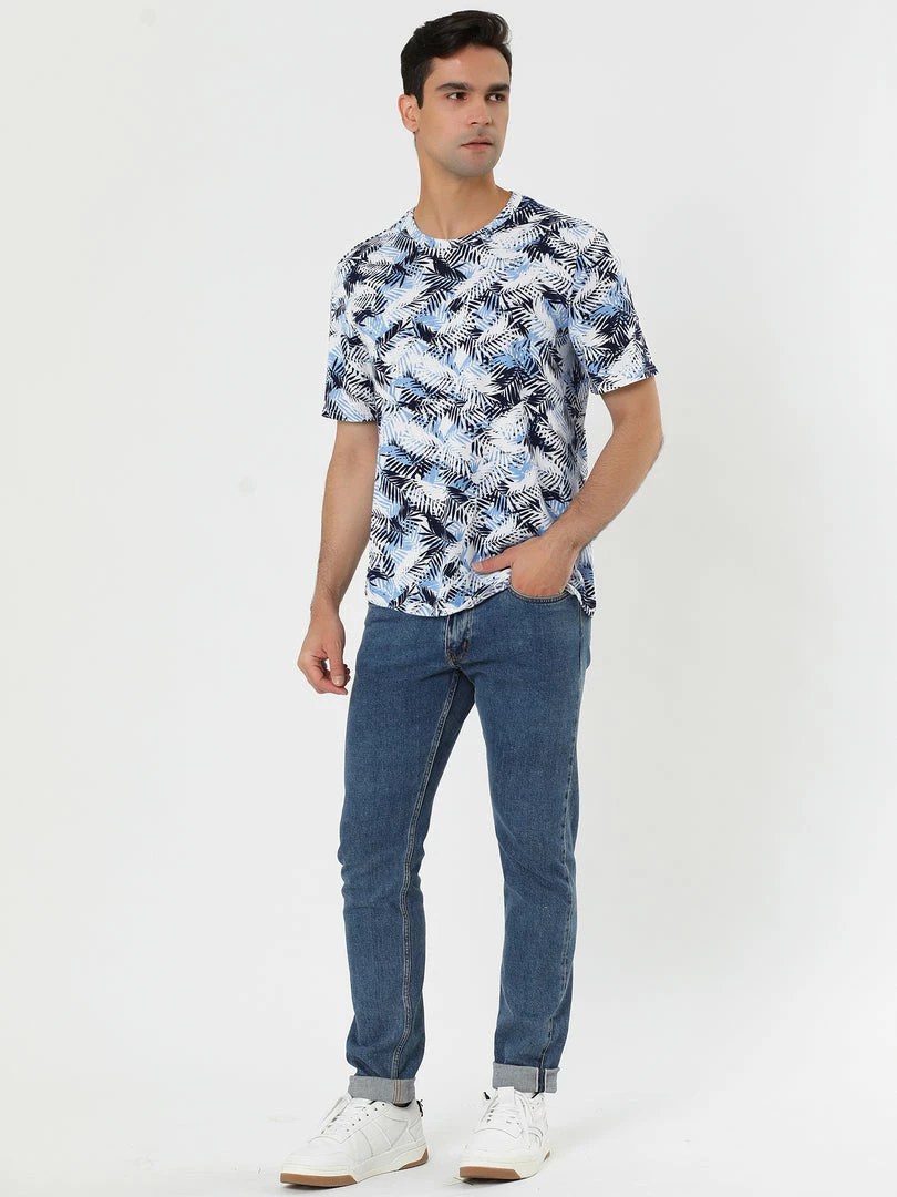 Allegra K Men’s Printed Short Sleeves Slim Fit Summer Hawaiian T Shirt Tee