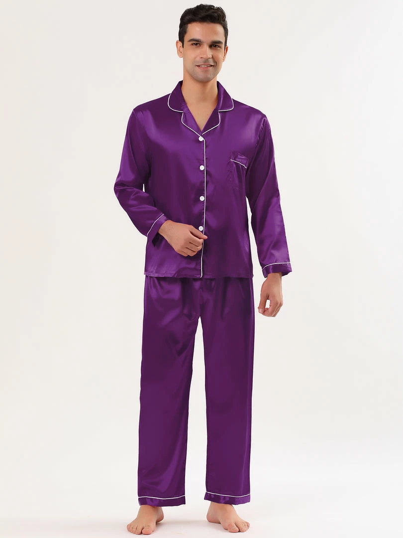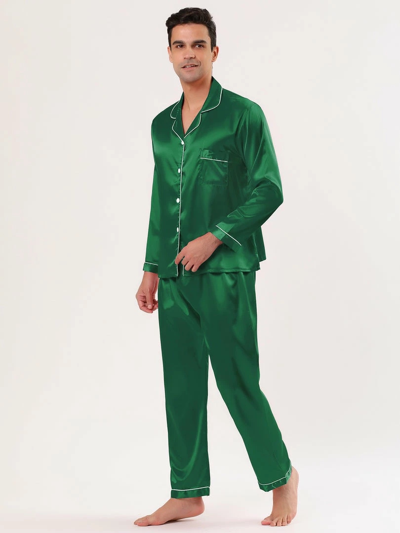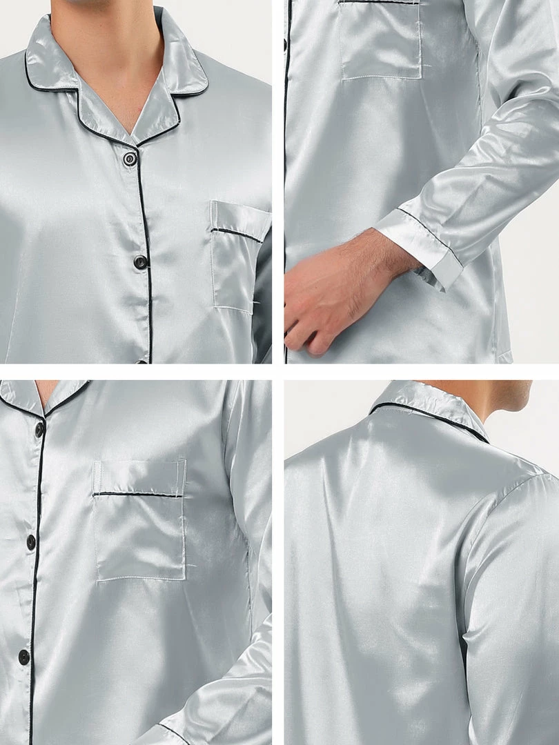 Allegra K Men’s Satin Pajama Sets Long Sleeves Button Down Nightwear Sleepwears Loungewear Pjs