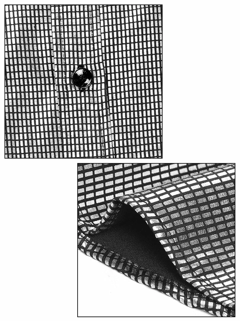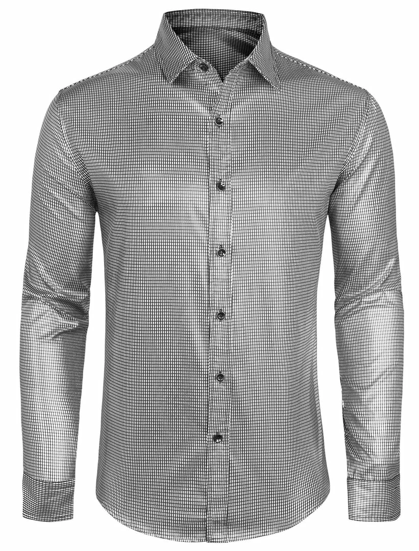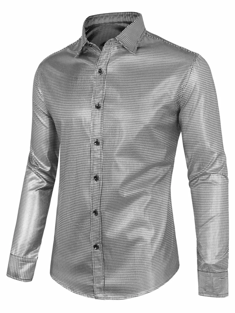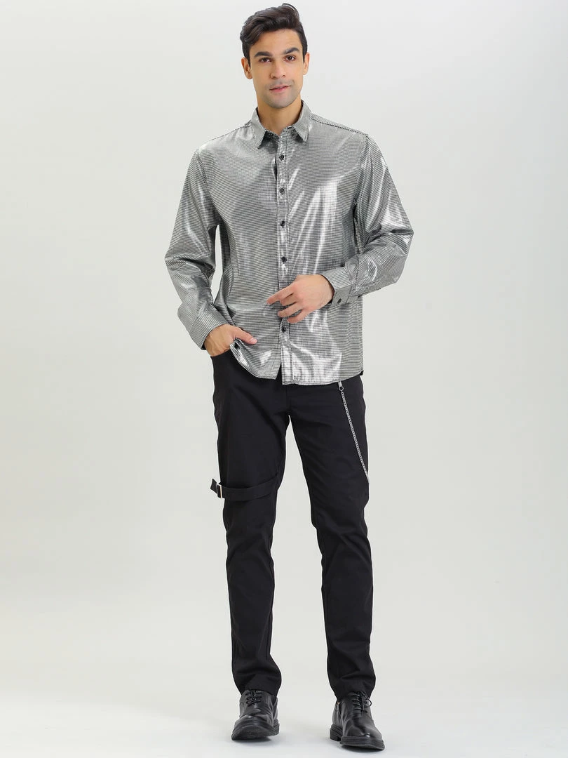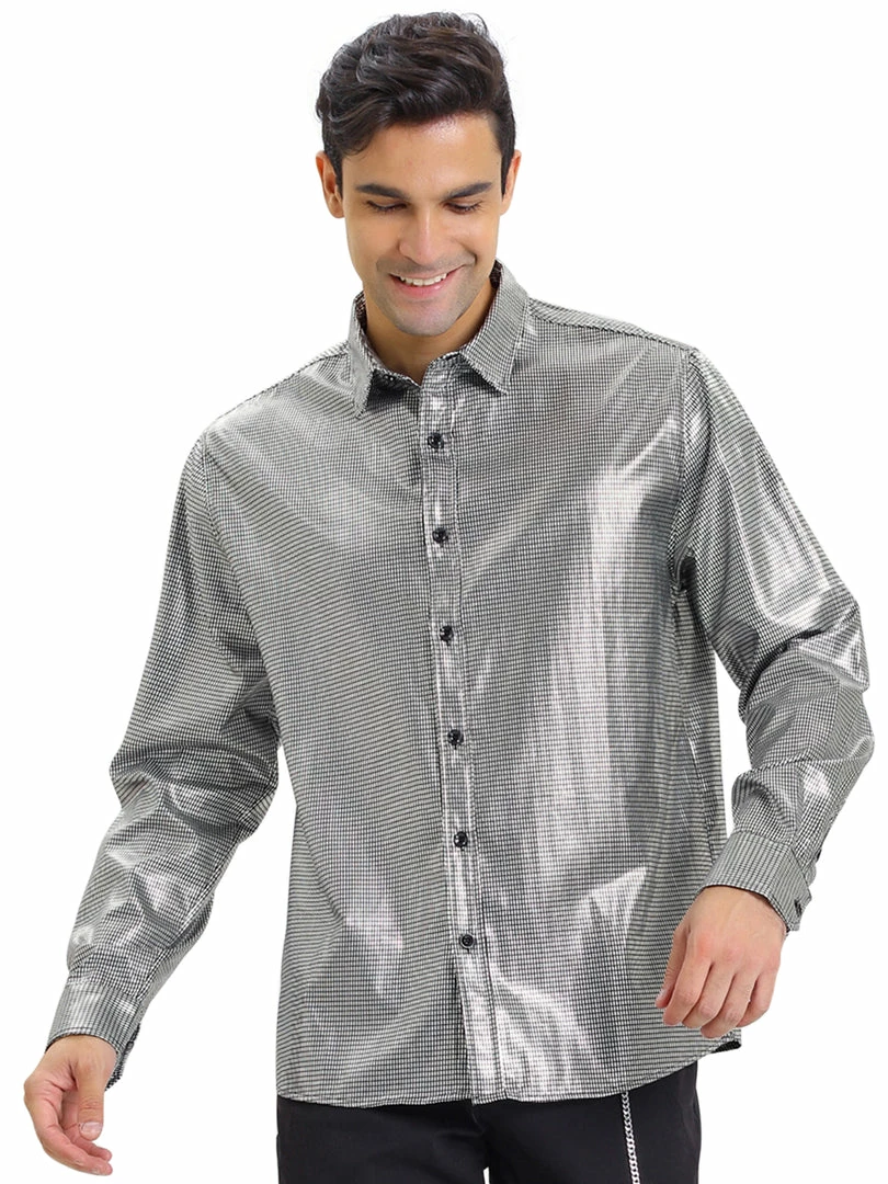 Allegra K Men’s Sequin Shiny Shirt Long Sleeves Button Down Disco Party Prom Shirt