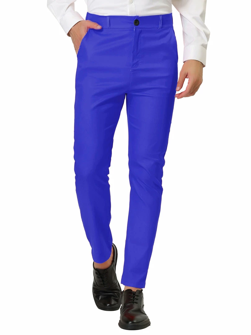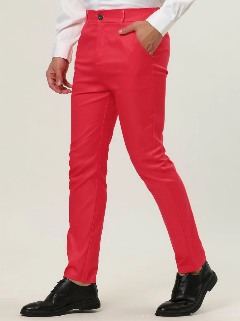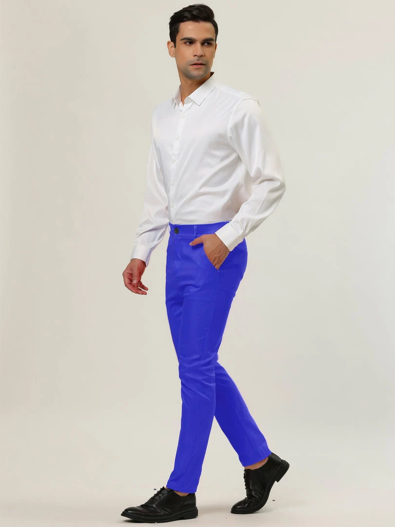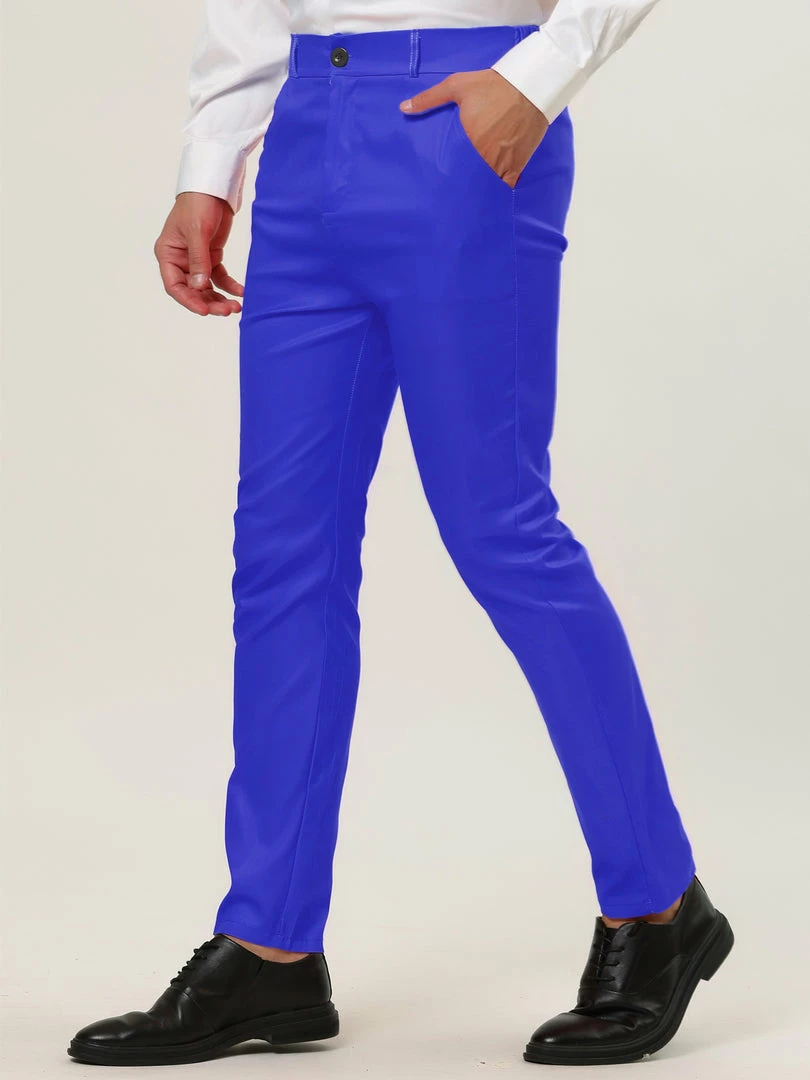 Allegra K Men’s Slim Fit Dress Trousers Flat Front Solid Color Skinny Business Pants
