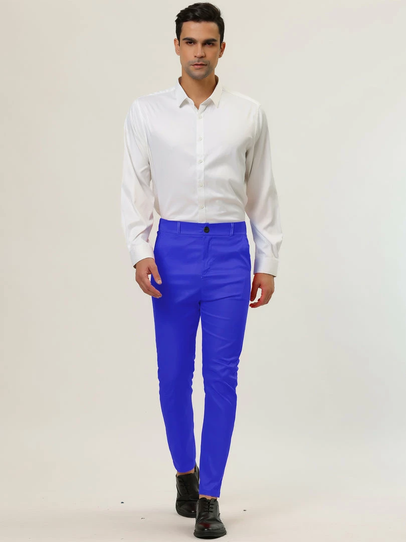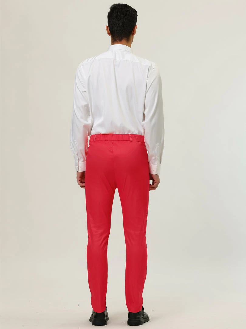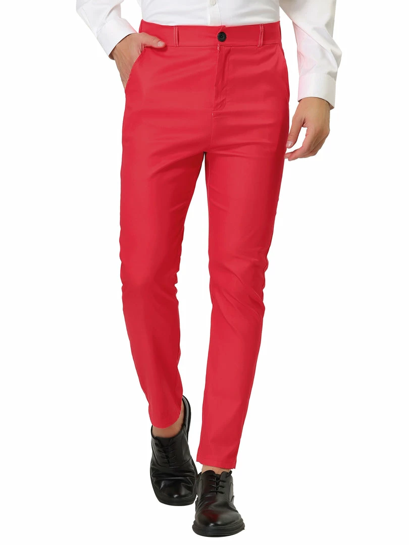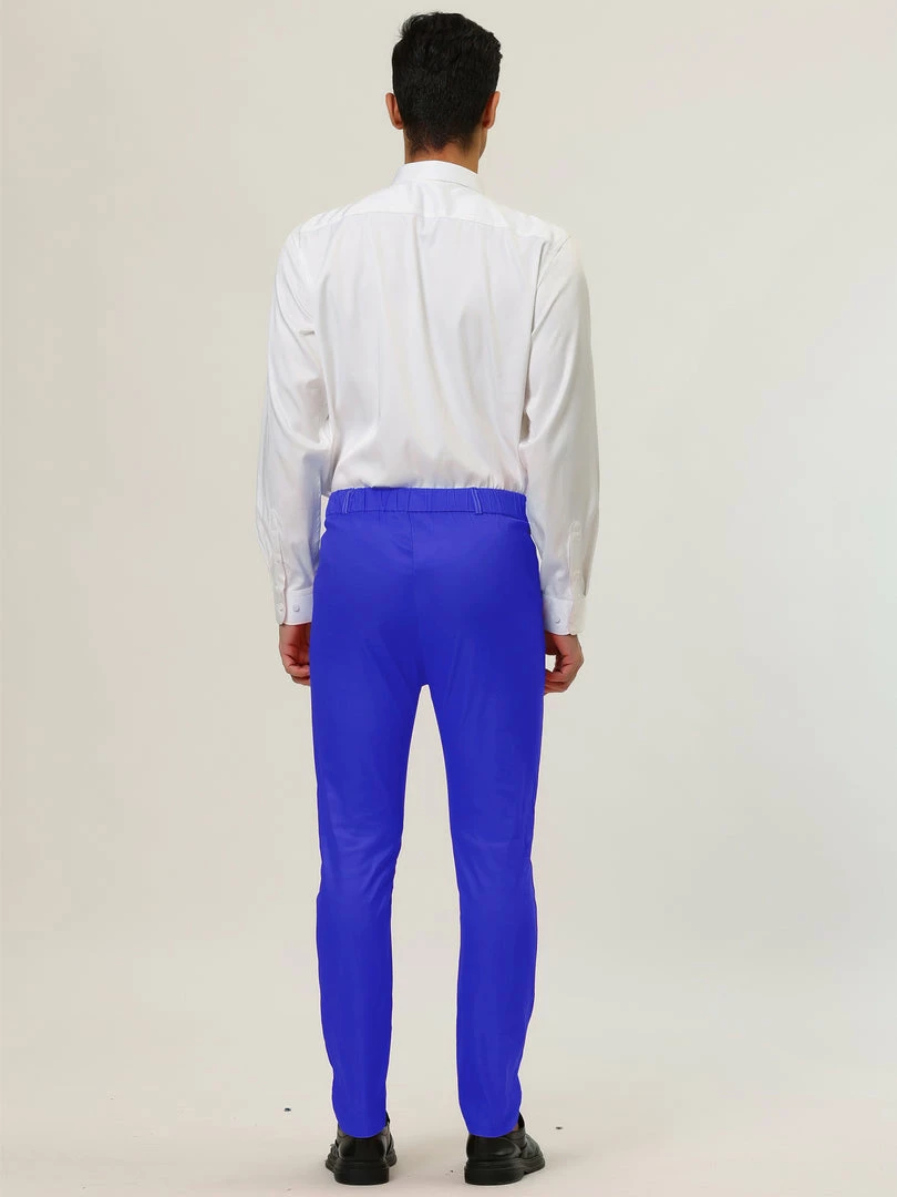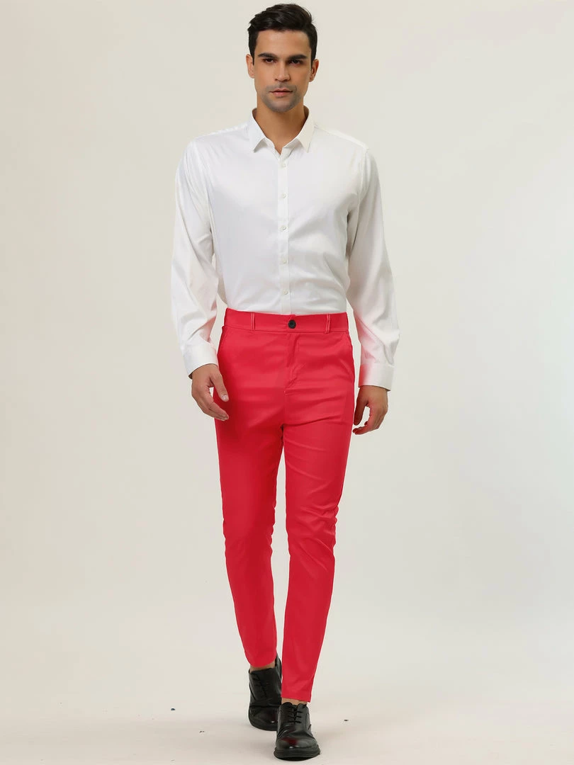 Allegra K Men’s Slim Fit Dress Trousers Flat Front Solid Color Skinny Business Pants