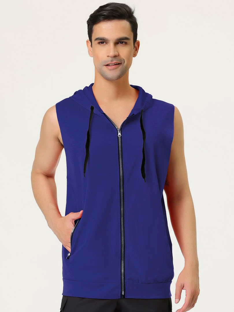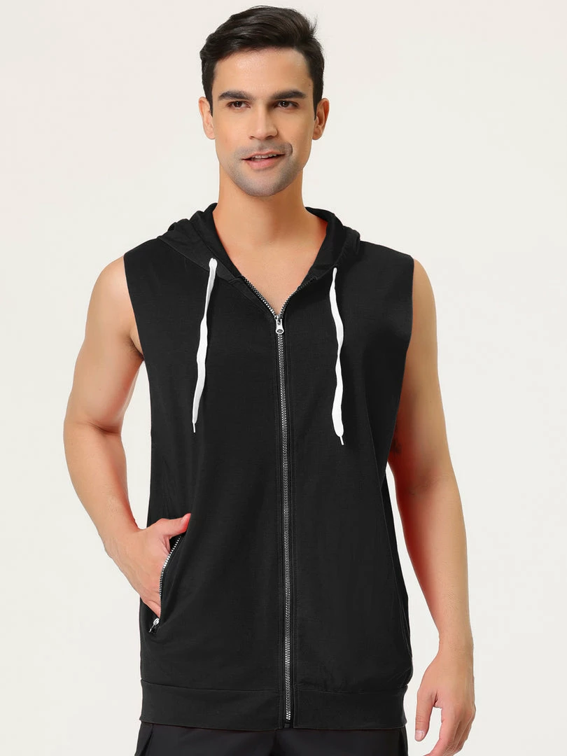 The soft, lightweight fabric of the sleeveless hooded sports vest keeps you comfortable and cool during exercise or leisure.