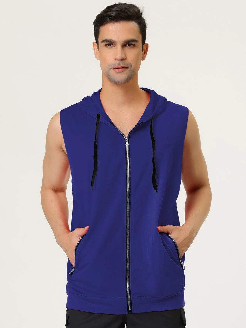 Allegra K Men’s Slim Fit Sleeveless Hoodie Vest Lightweight Zip Up Hoodies