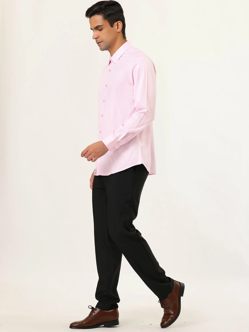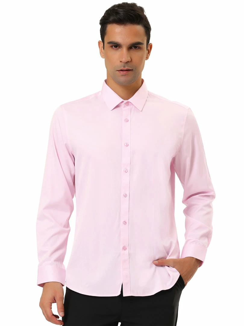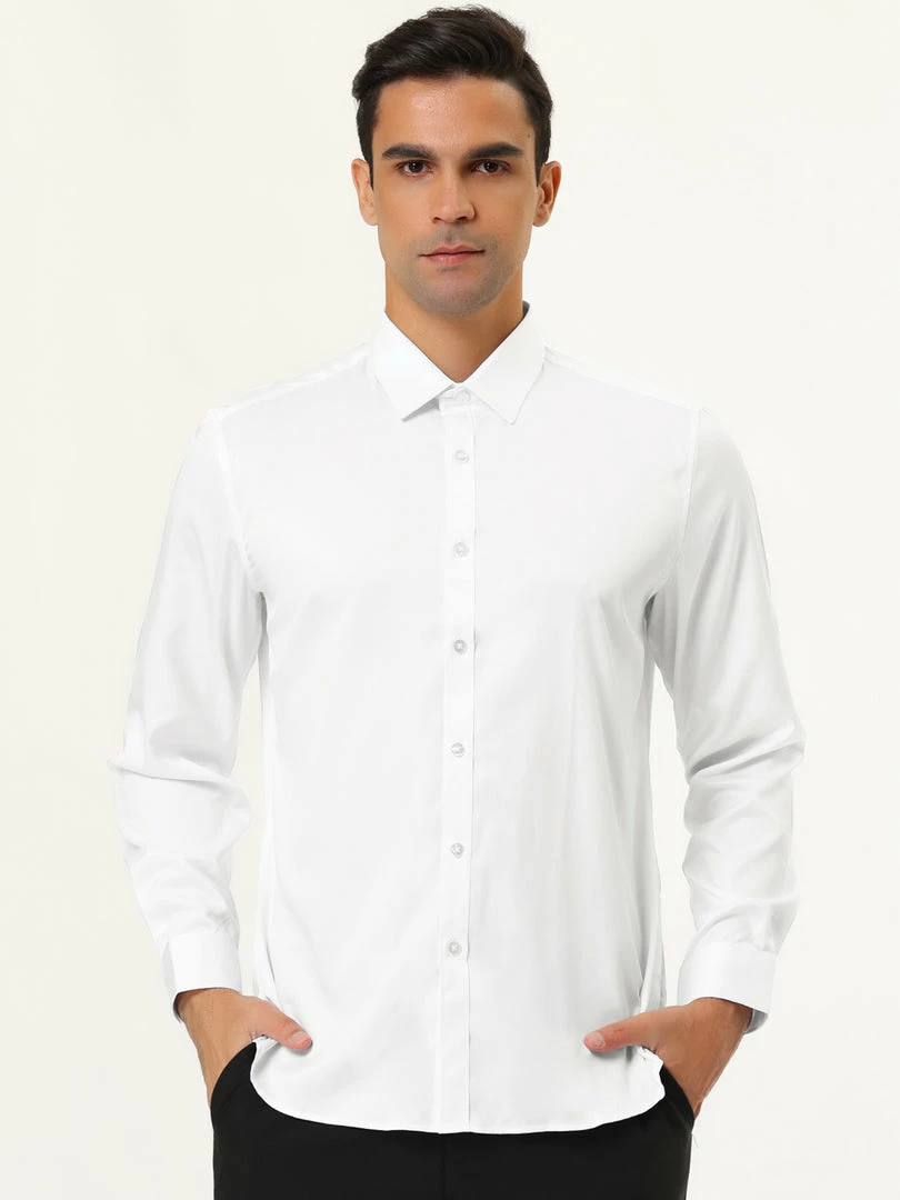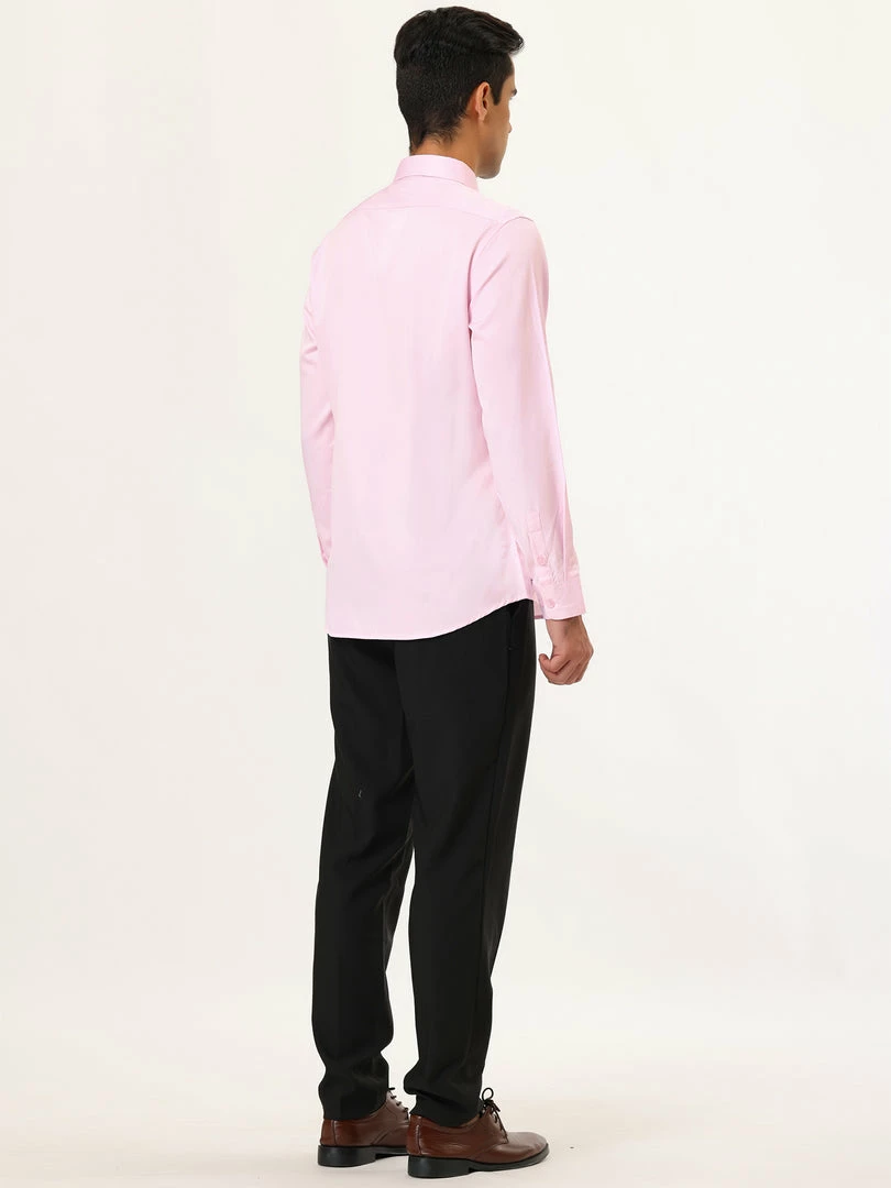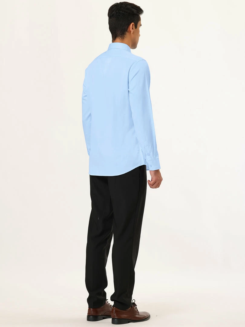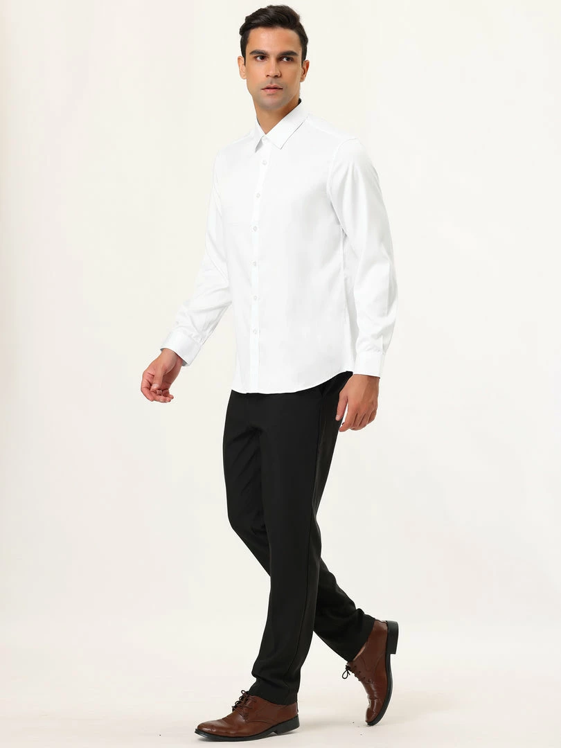 Allegra K Men’s Solid Long Sleeve Shirts Button Down Point Collar Slim Fit Dress Shirts