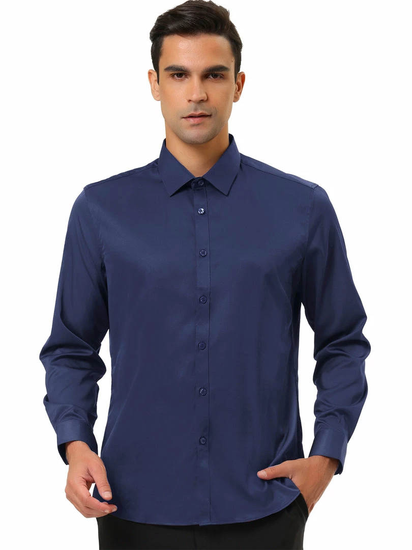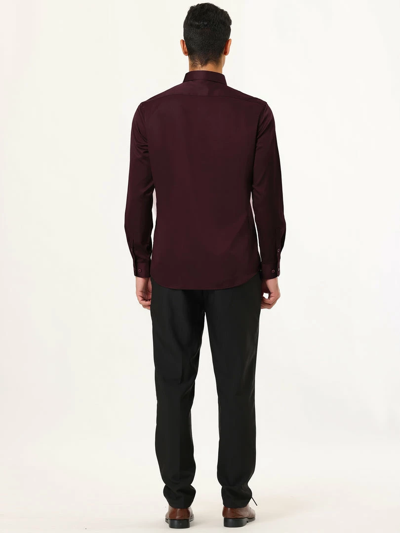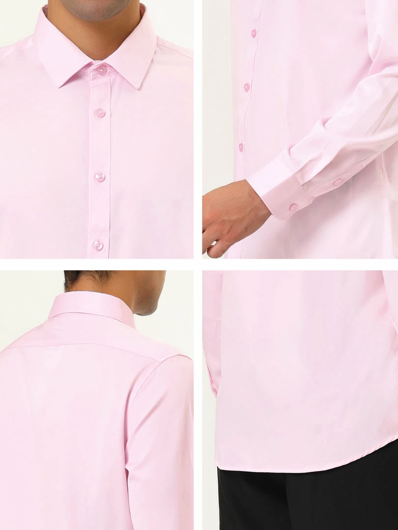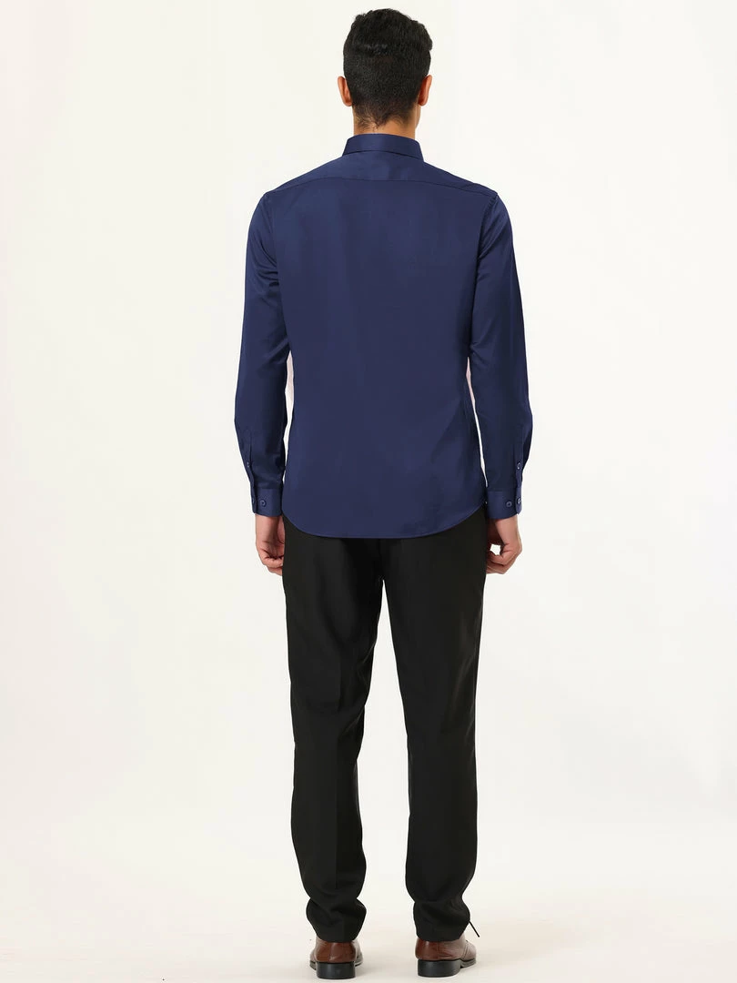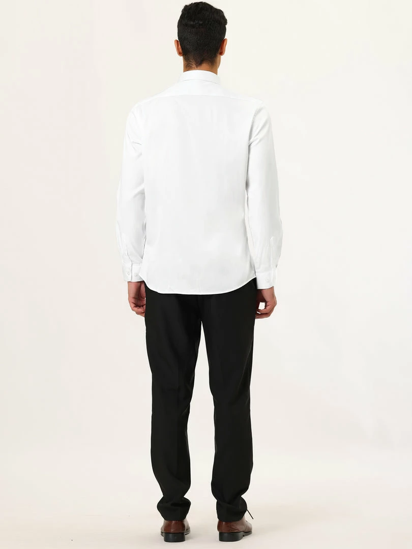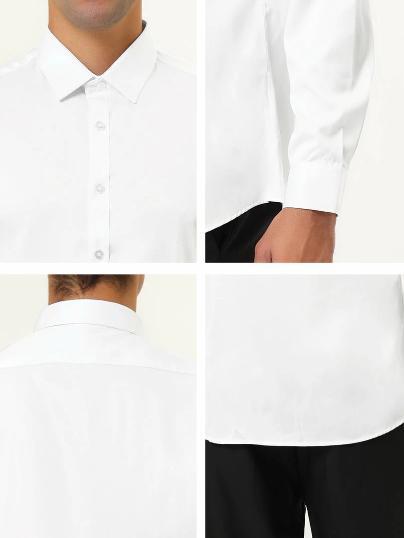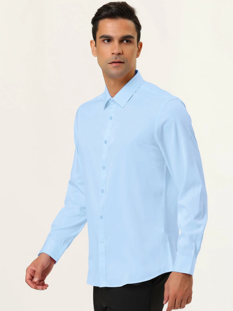 Allegra K Men’s Solid Long Sleeve Shirts Button Down Point Collar Slim Fit Dress Shirts