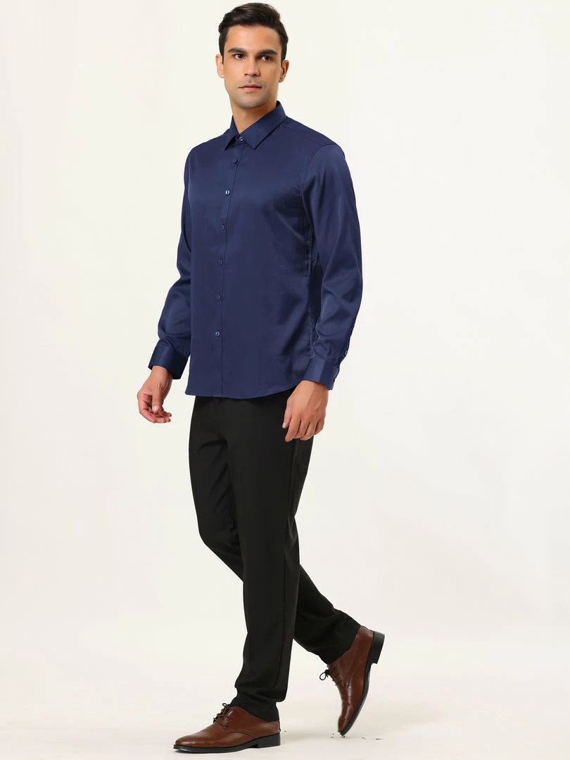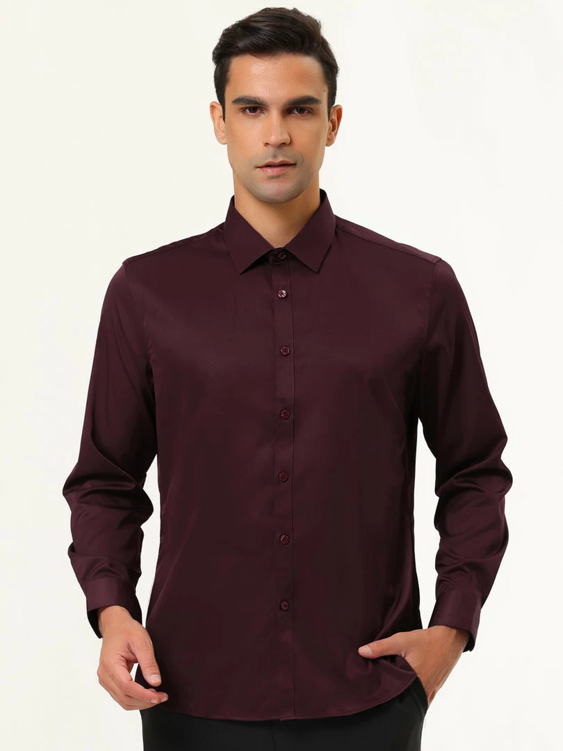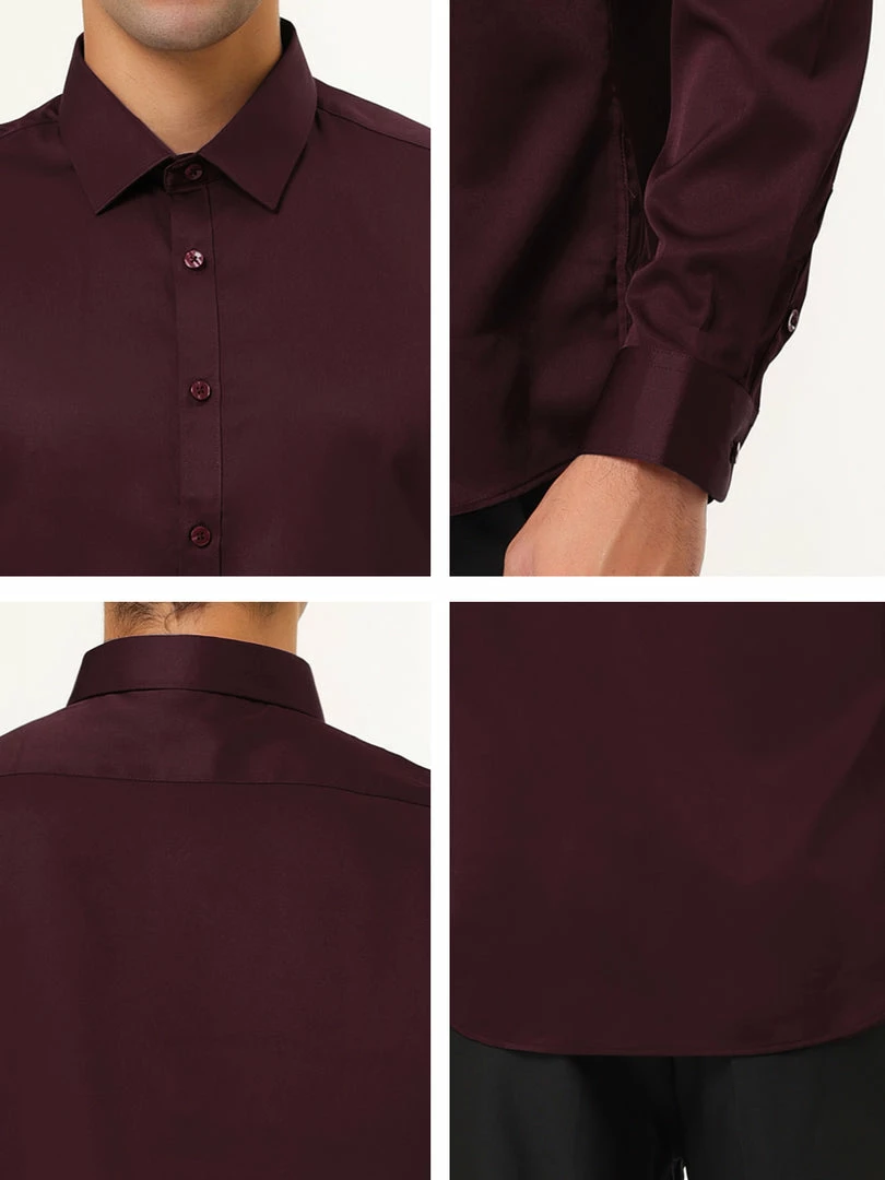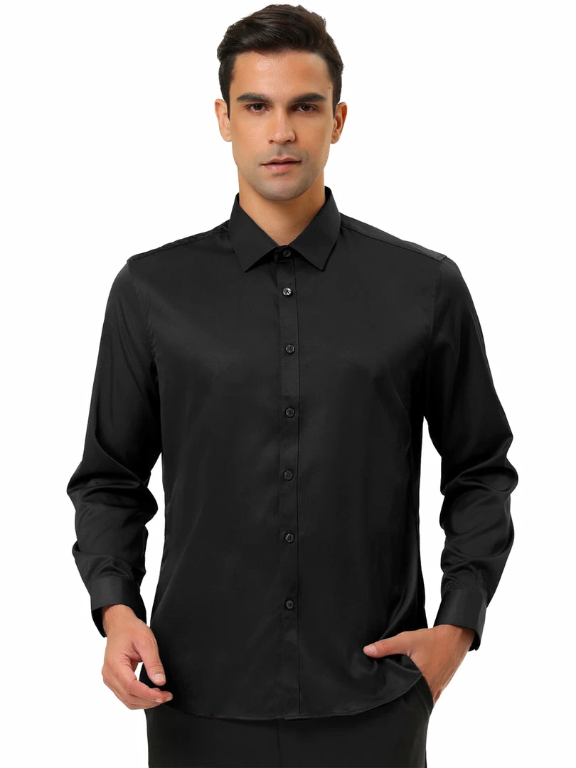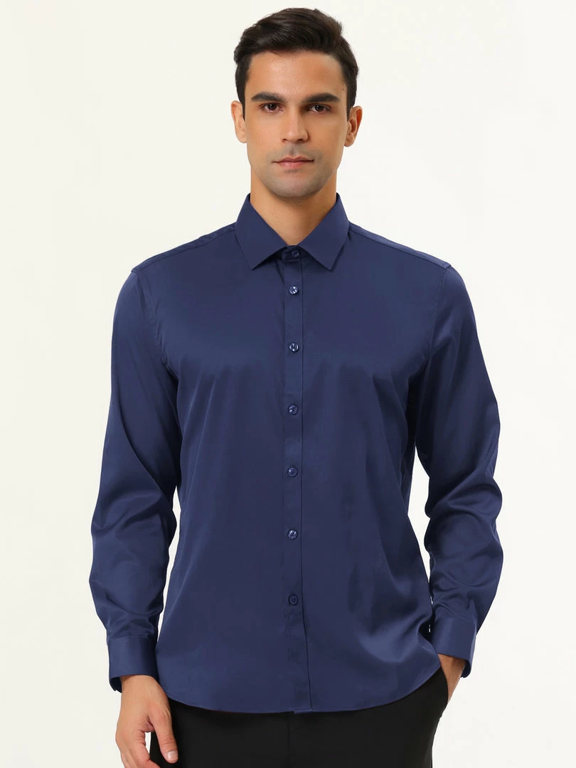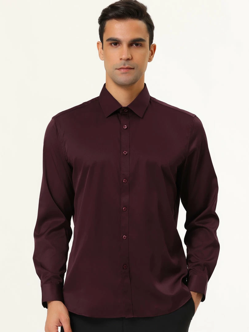 Allegra K Men’s Solid Long Sleeve Shirts Button Down Point Collar Slim Fit Dress Shirts