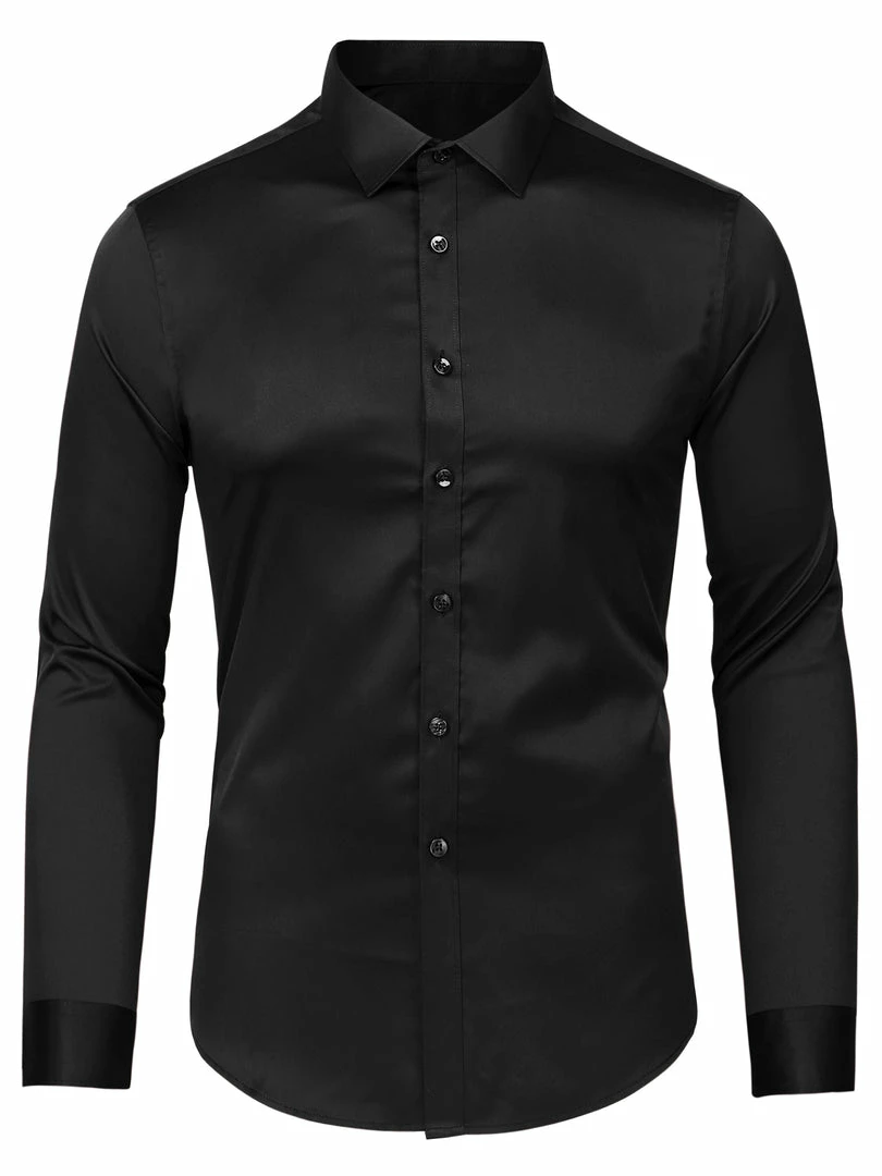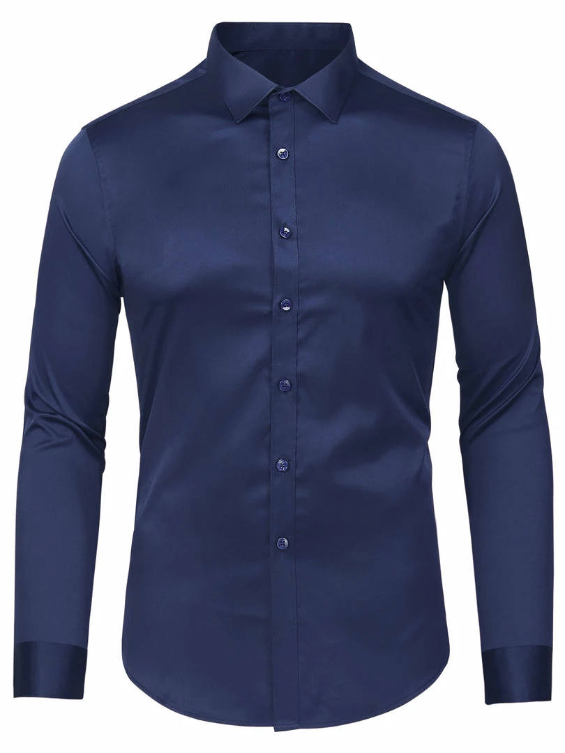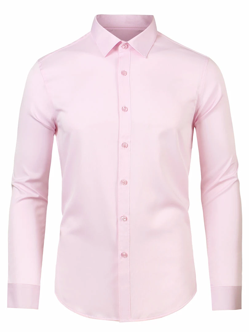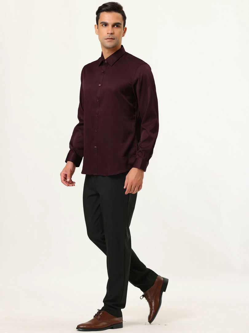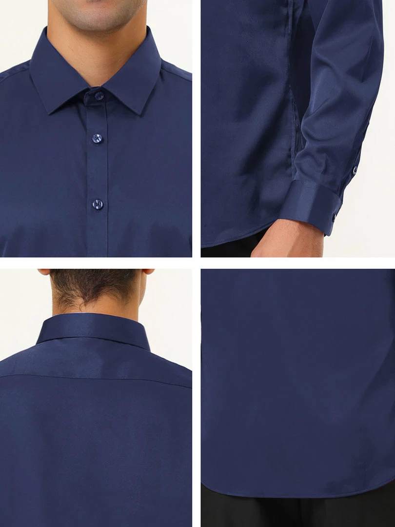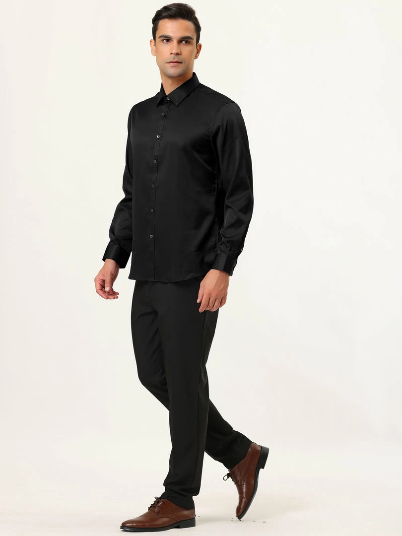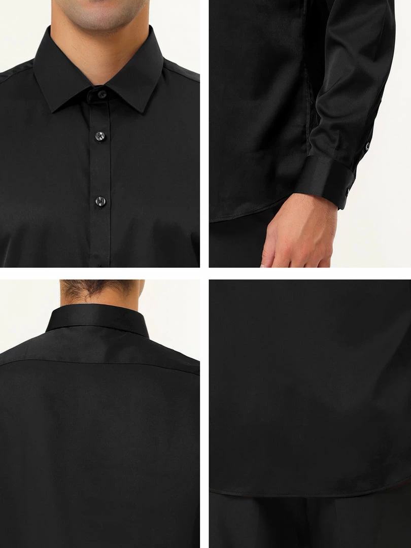 Allegra K Men’s Solid Long Sleeve Shirts Button Down Point Collar Slim Fit Dress Shirts