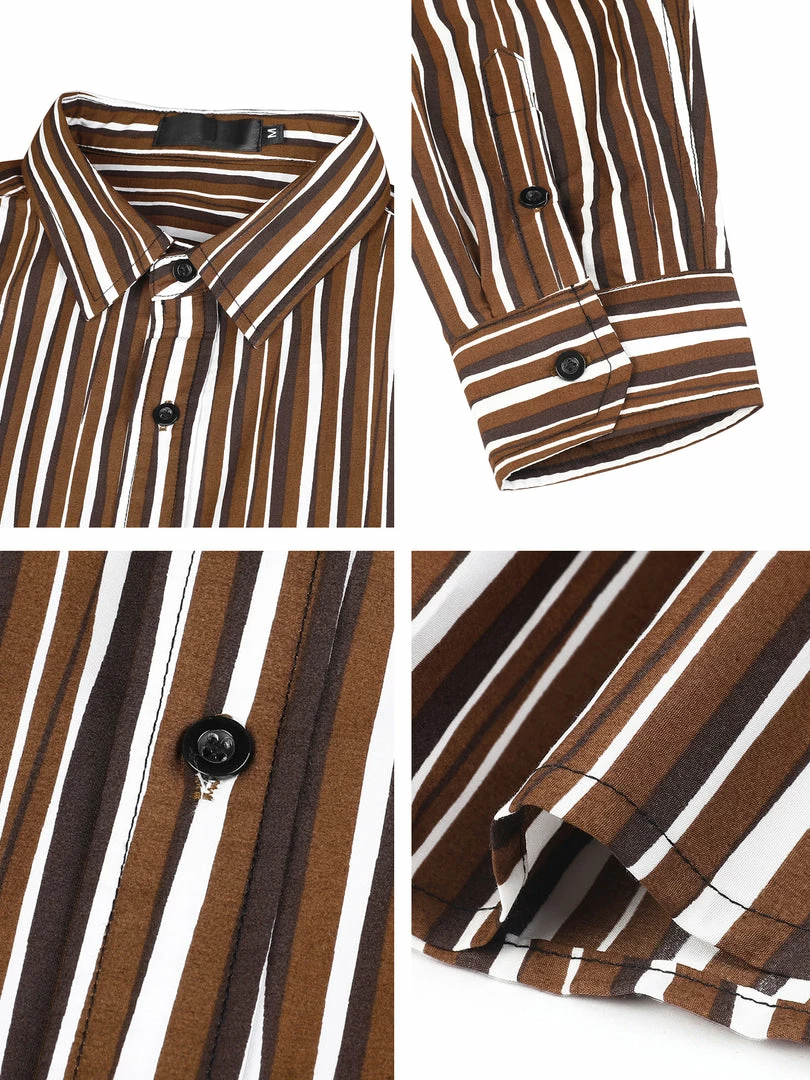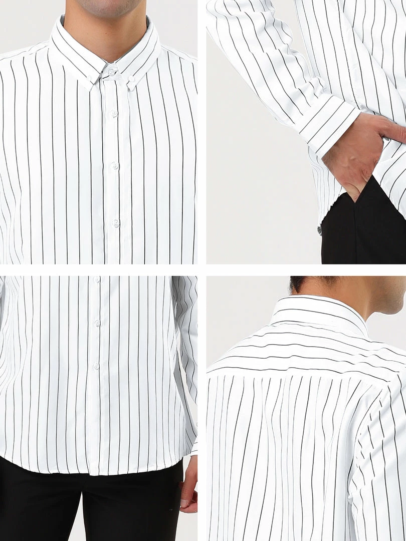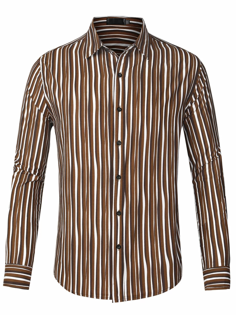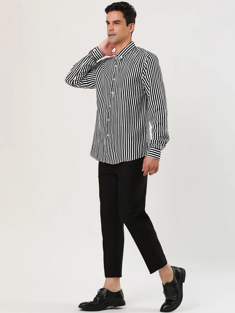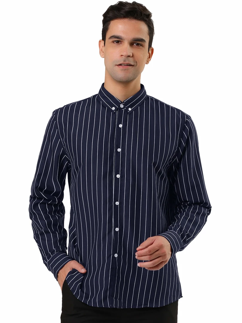 Allegra K Men’s Striped Shirt Long Sleeves Casual Button Down Color Block Shirts