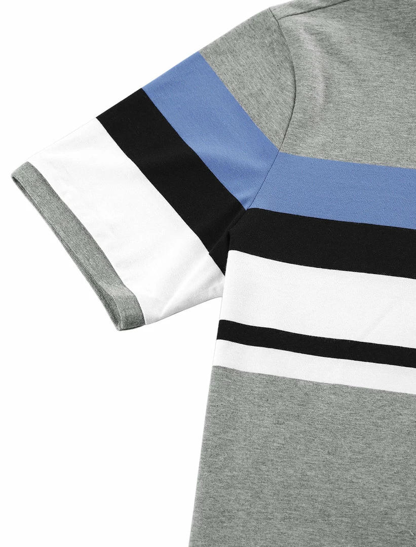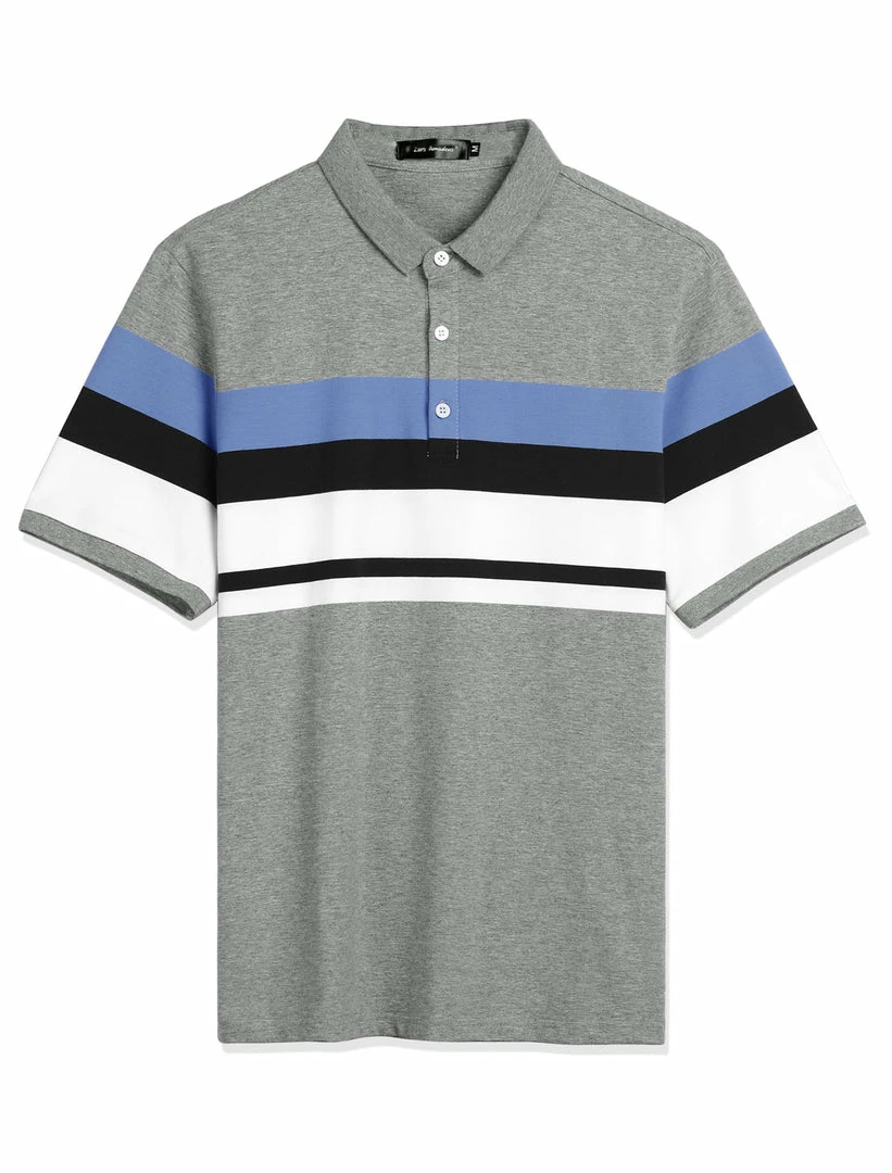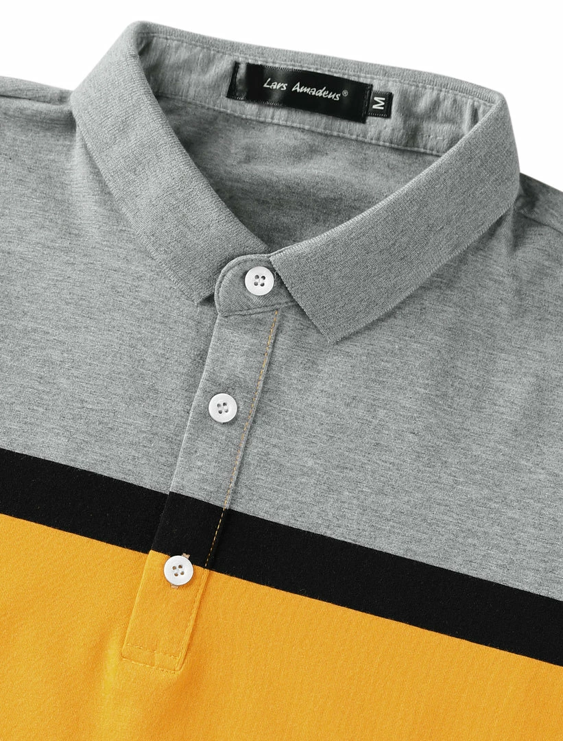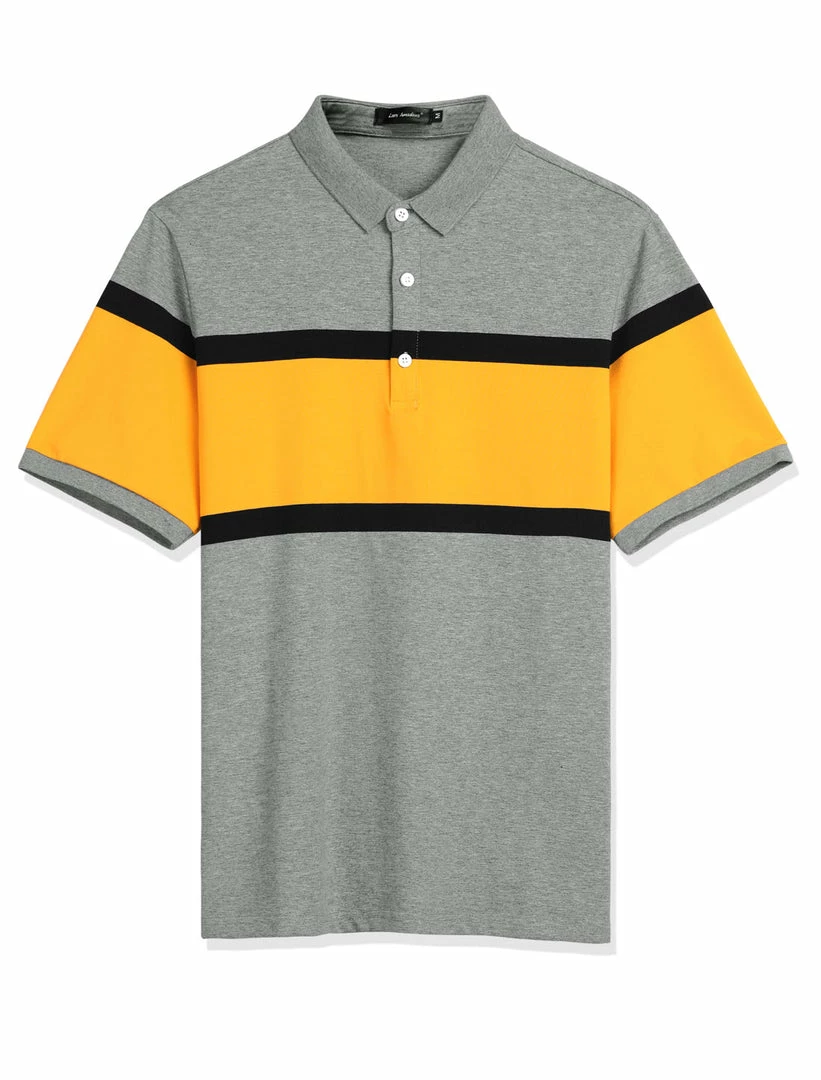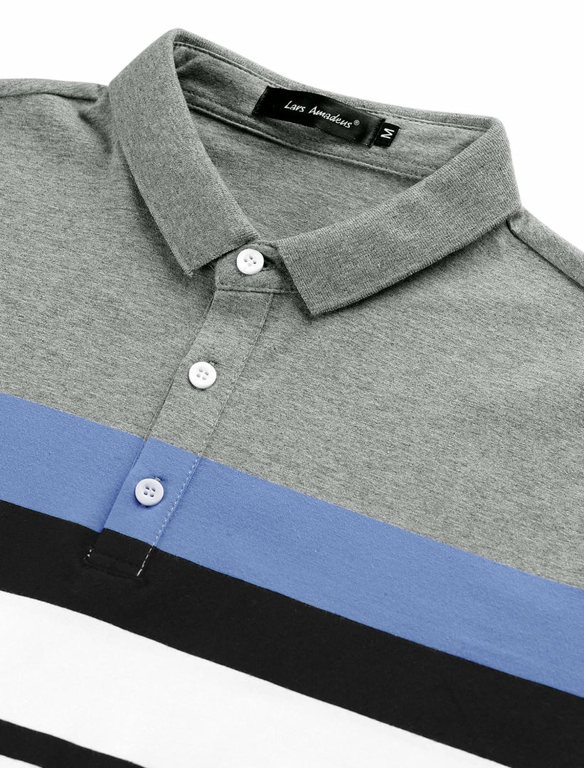 Allegra K Men’s Summer Color Block Polo Golf Short Sleeves Regular Fit Striped T Shirt