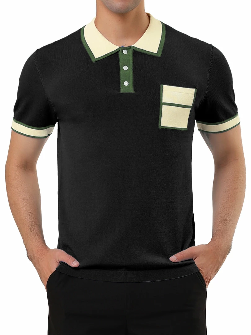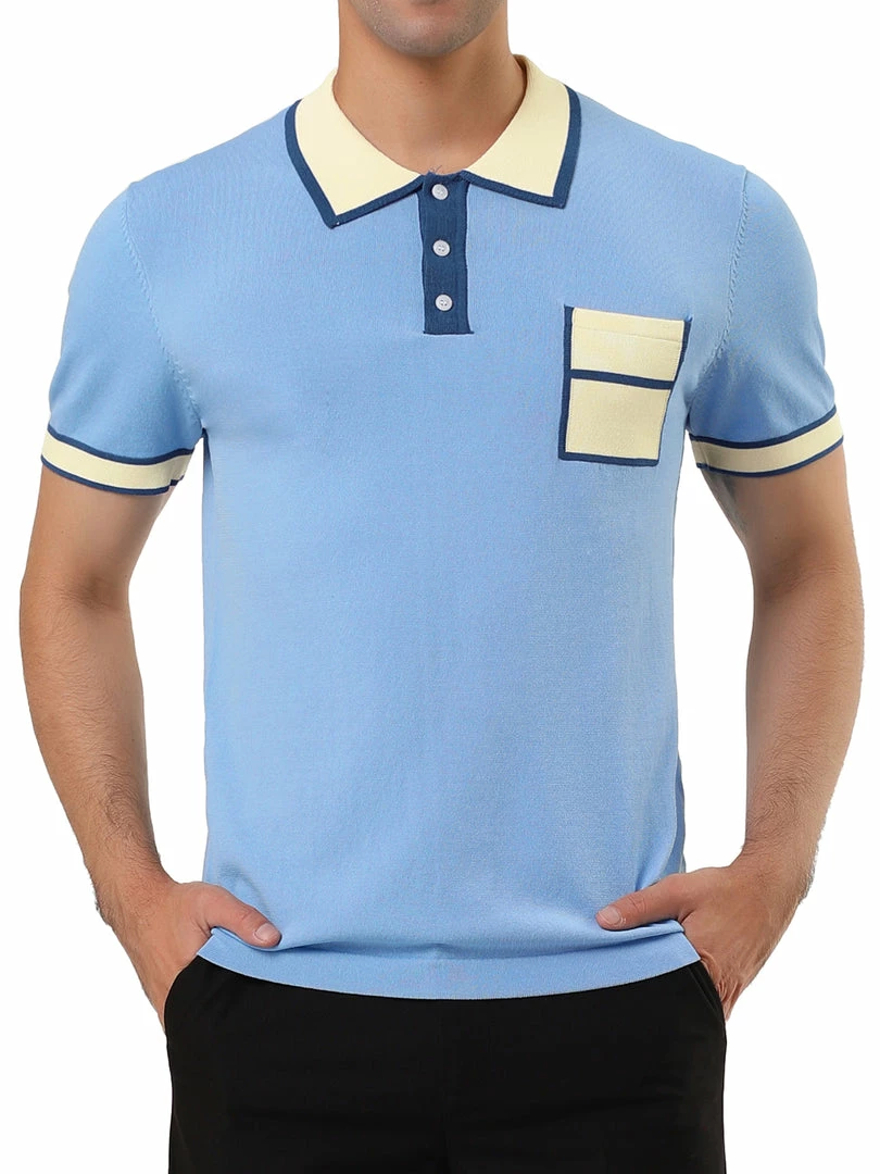 Allegra K Men’s Summer Polo Shirts Short Sleeve Point Collar Pocket Golf Sports Contrast Knit Polo Shirt