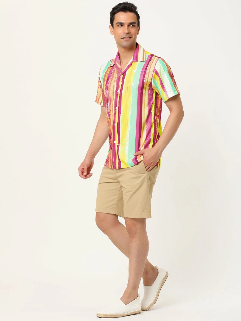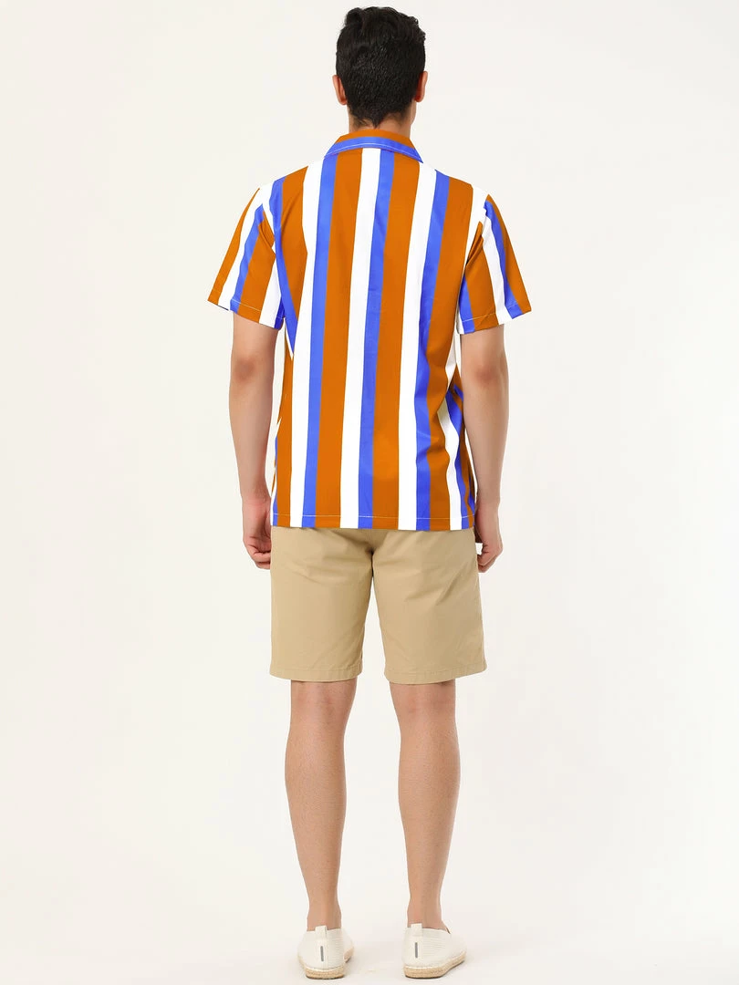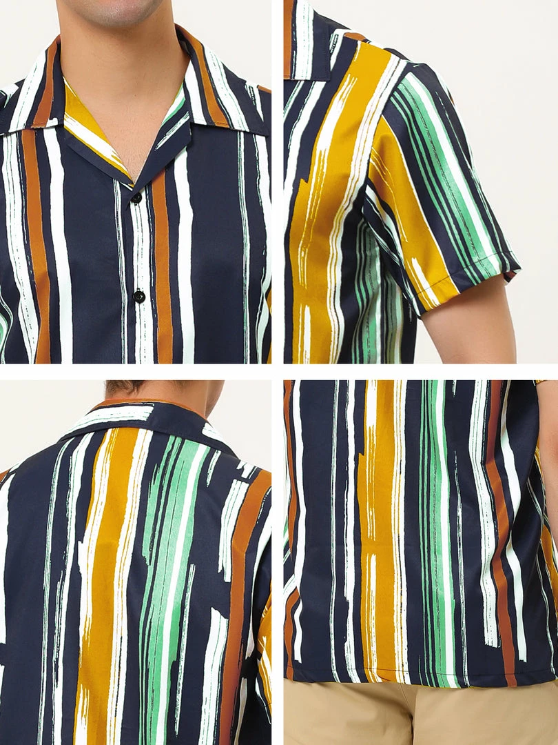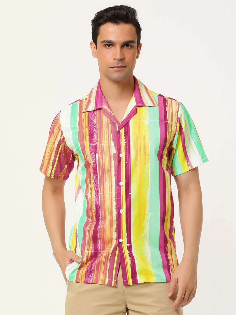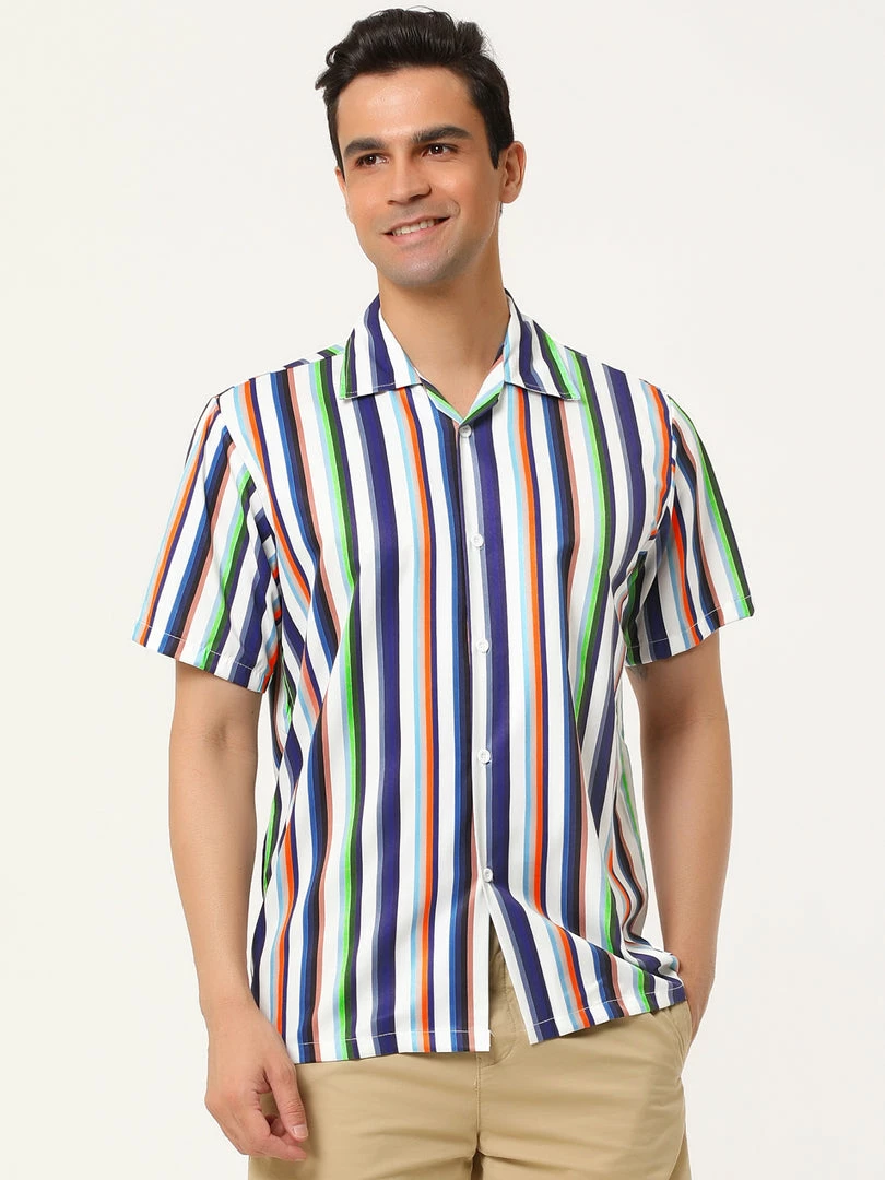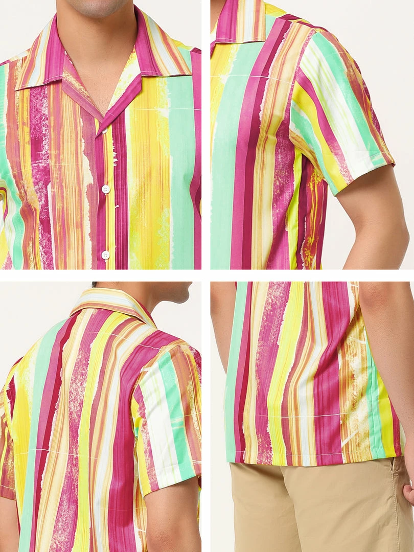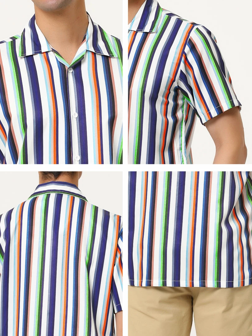 Allegra K Men’s Summer Stripe Printed Regular Fit Short Sleeves Button Closure Color Block Shirts Tops
