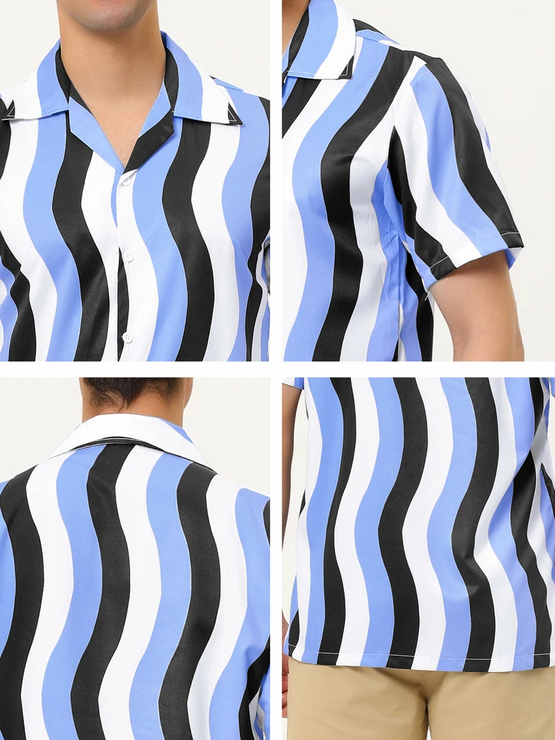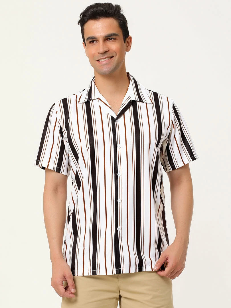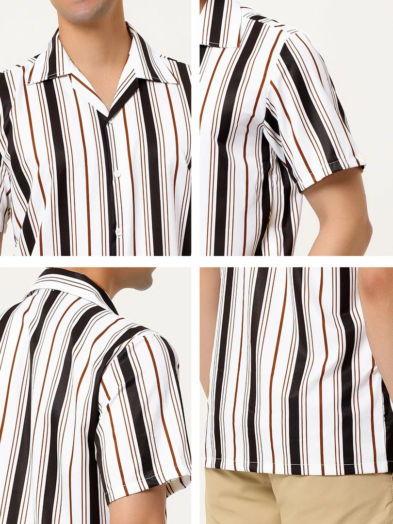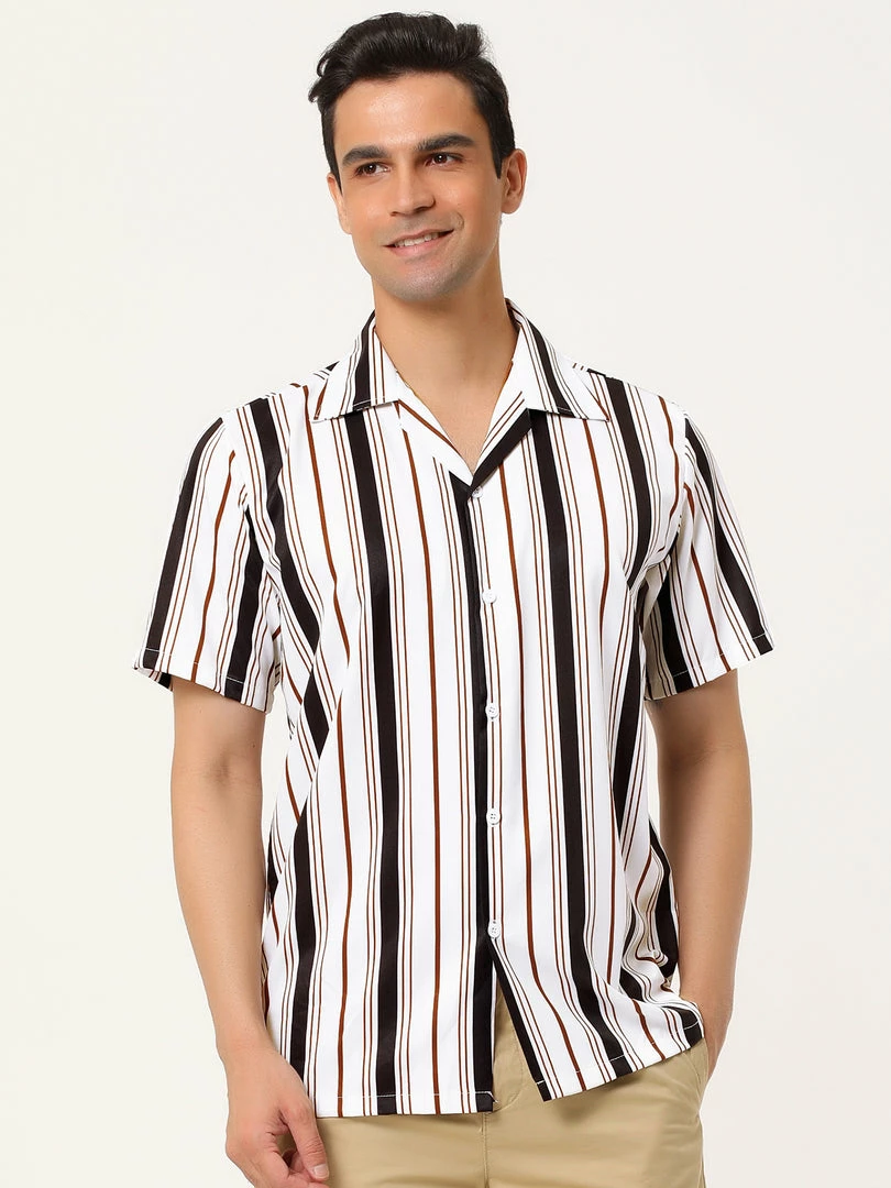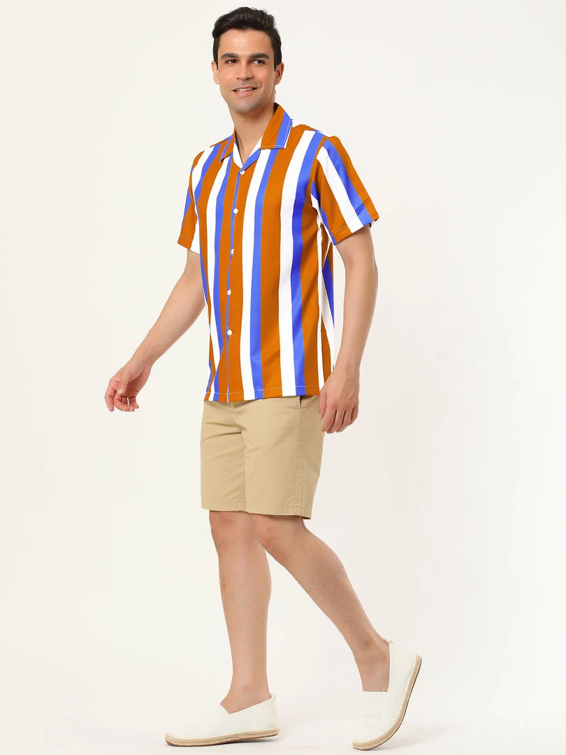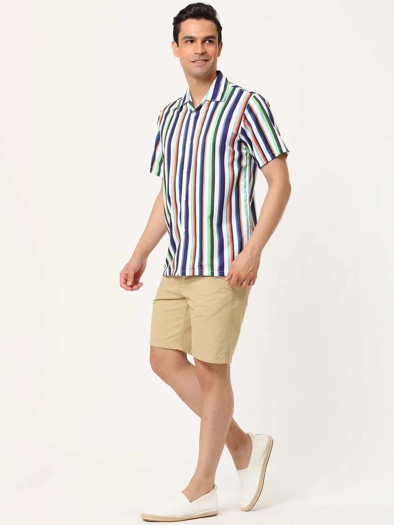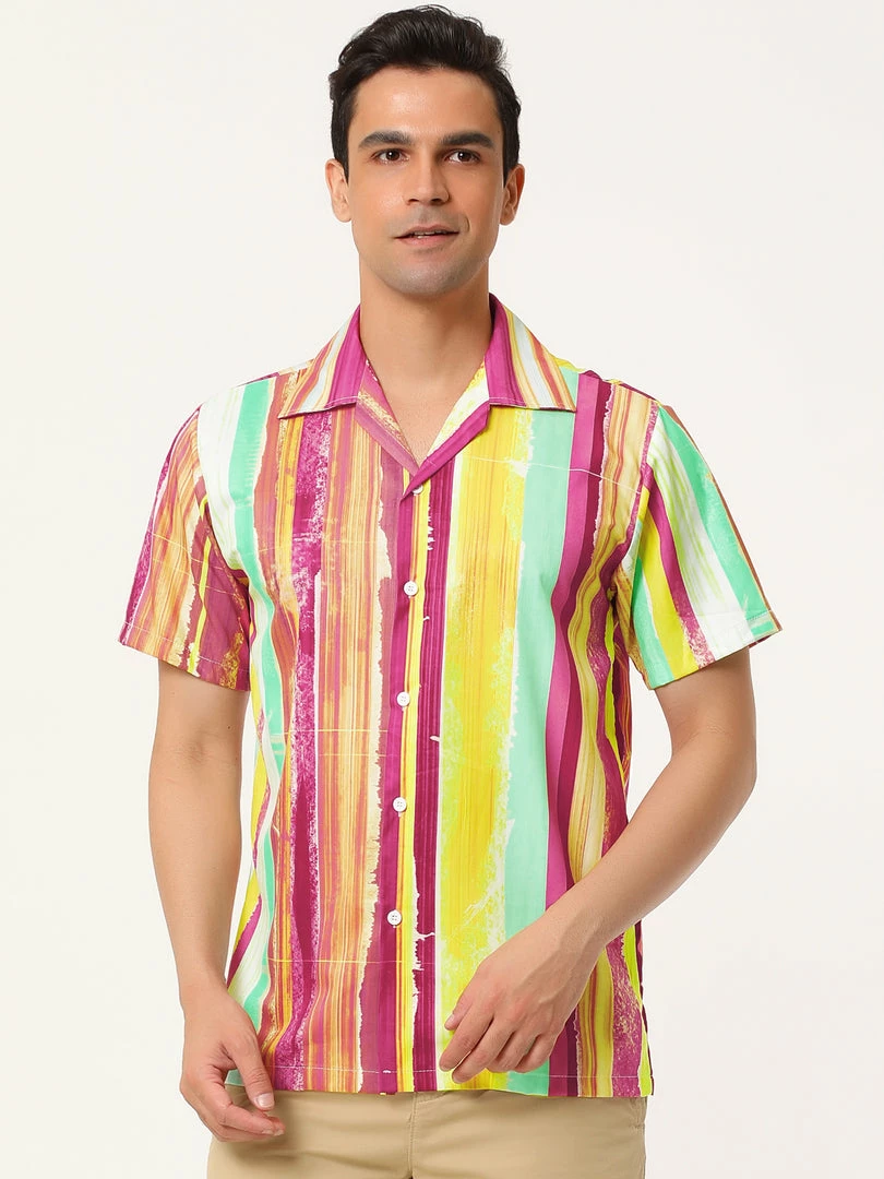 Allegra K Men’s Summer Stripe Printed Regular Fit Short Sleeves Button Closure Color Block Shirts Tops