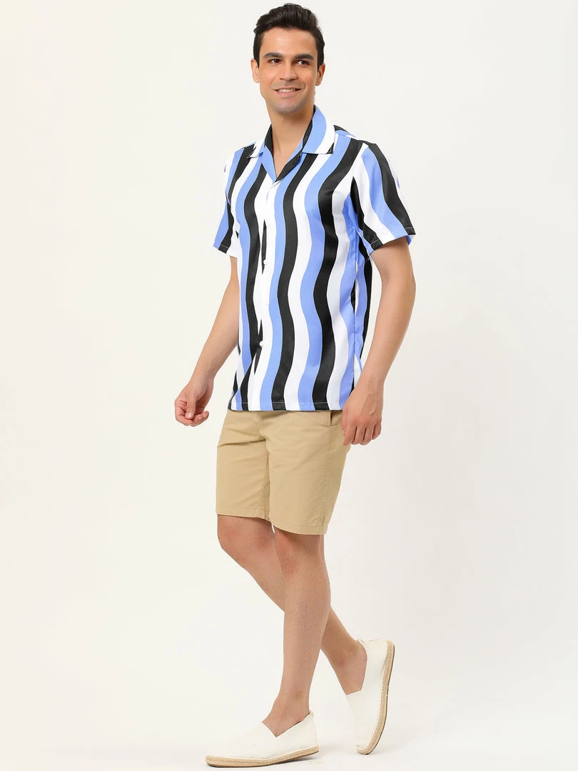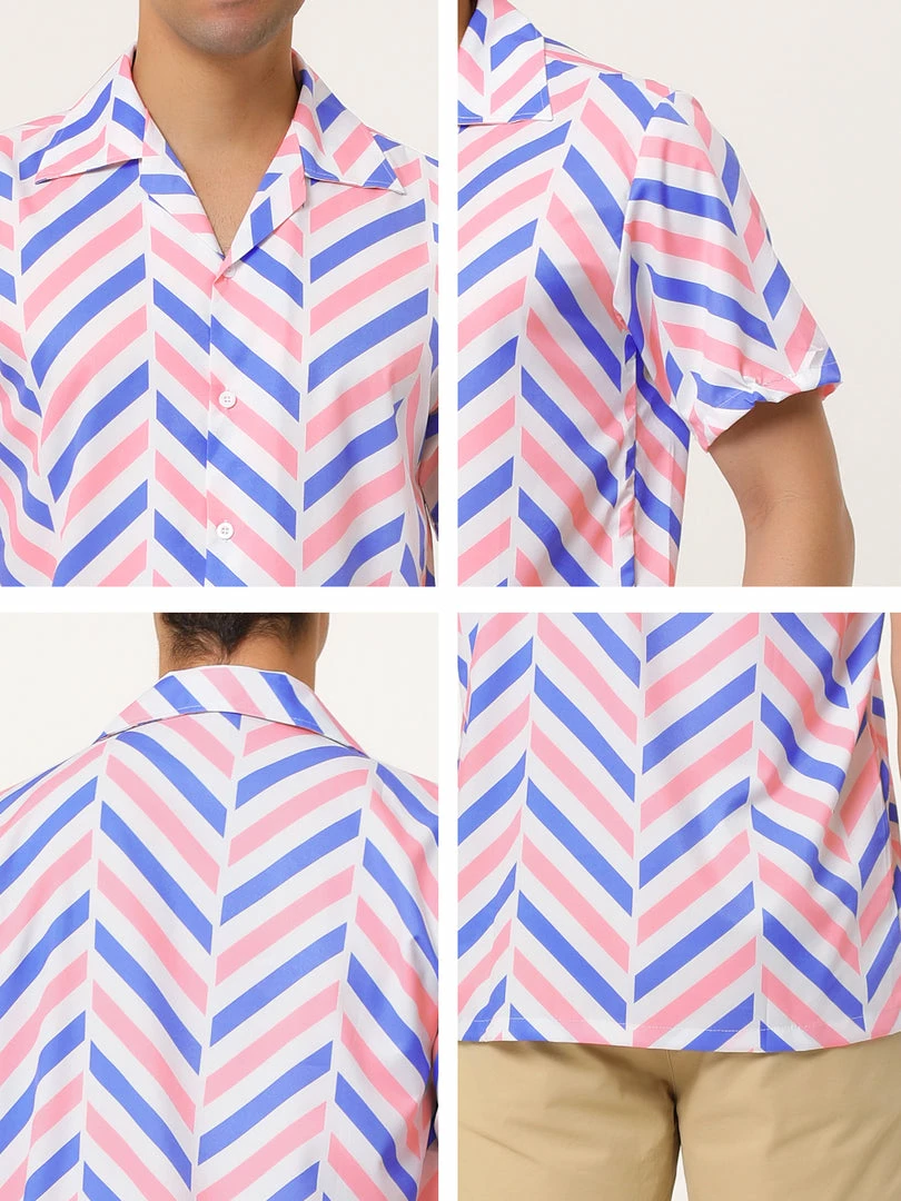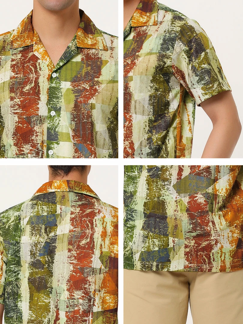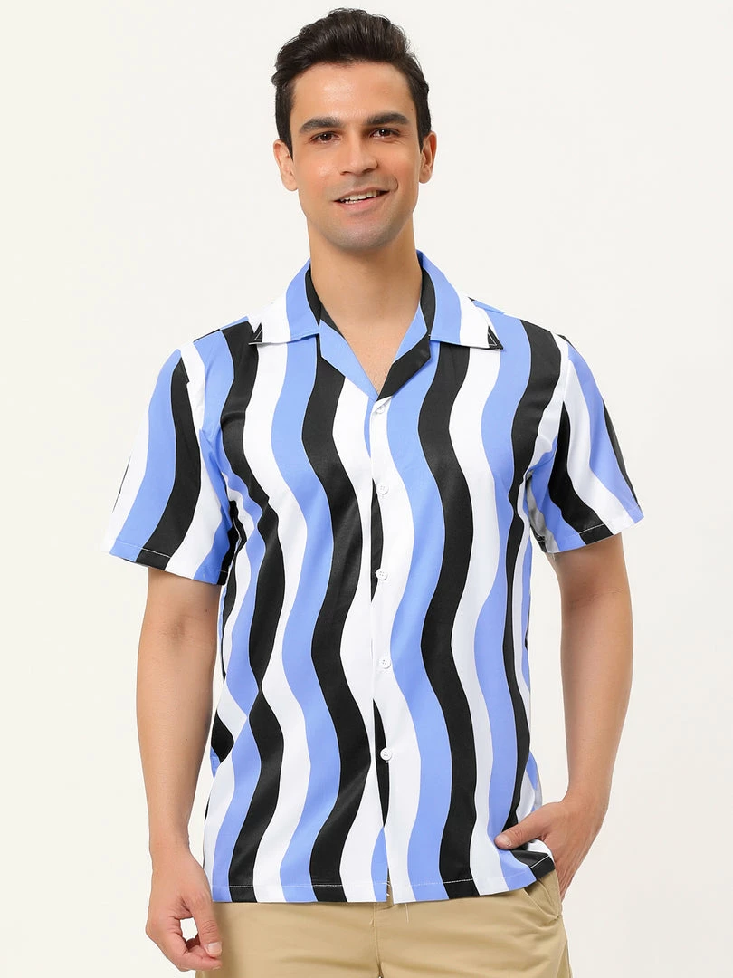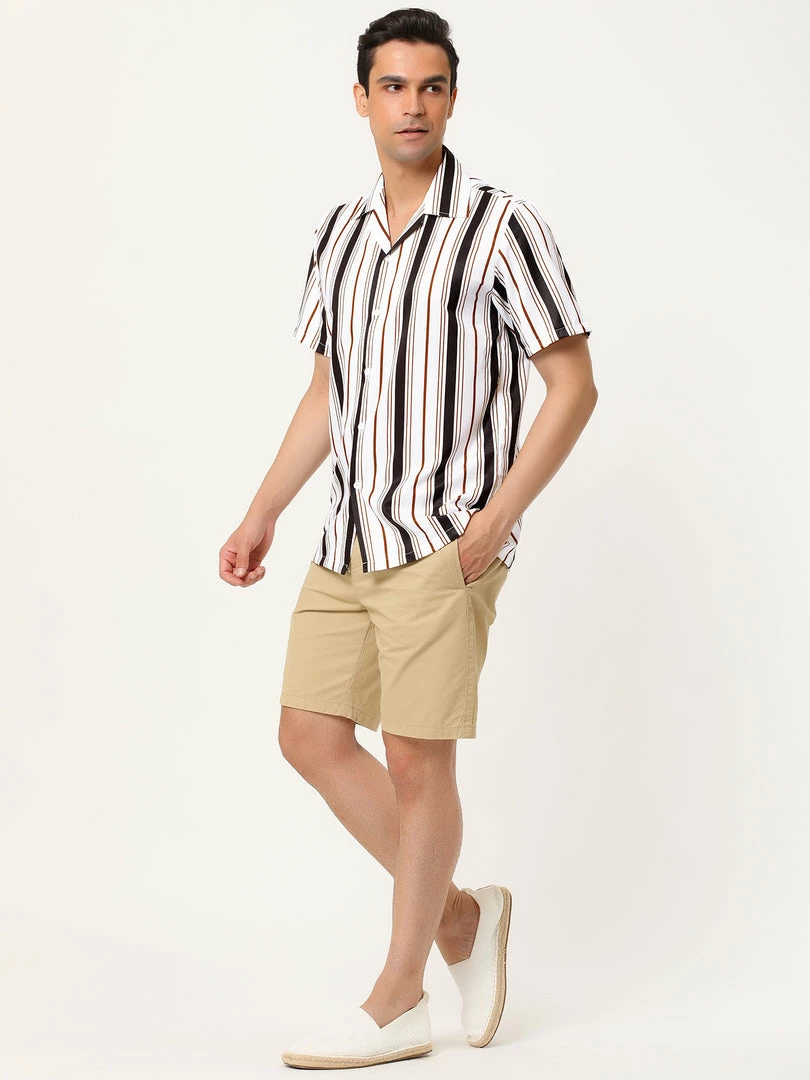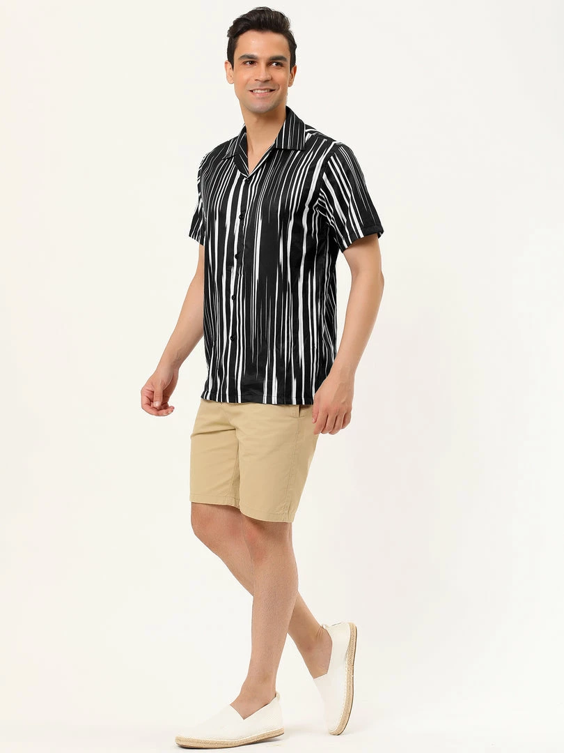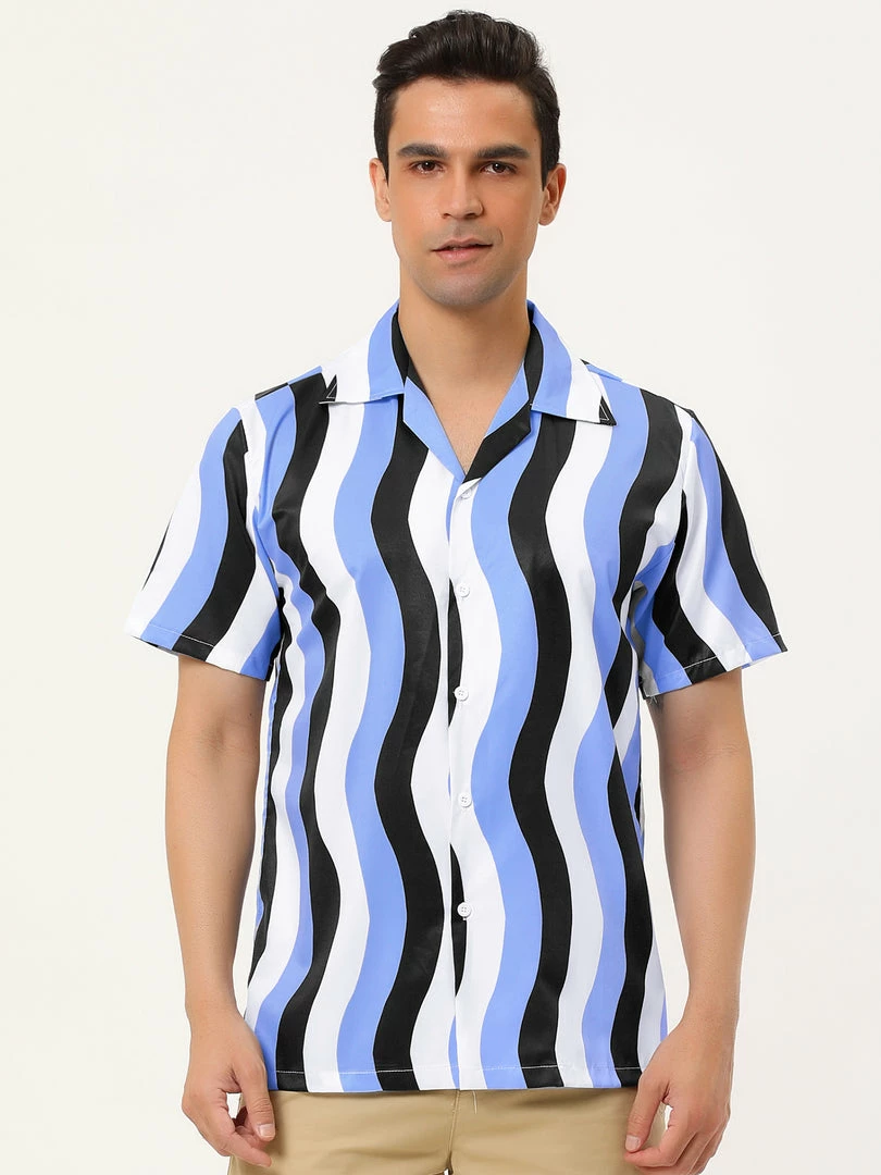 Allegra K Men’s Summer Stripe Printed Regular Fit Short Sleeves Button Closure Color Block Shirts Tops