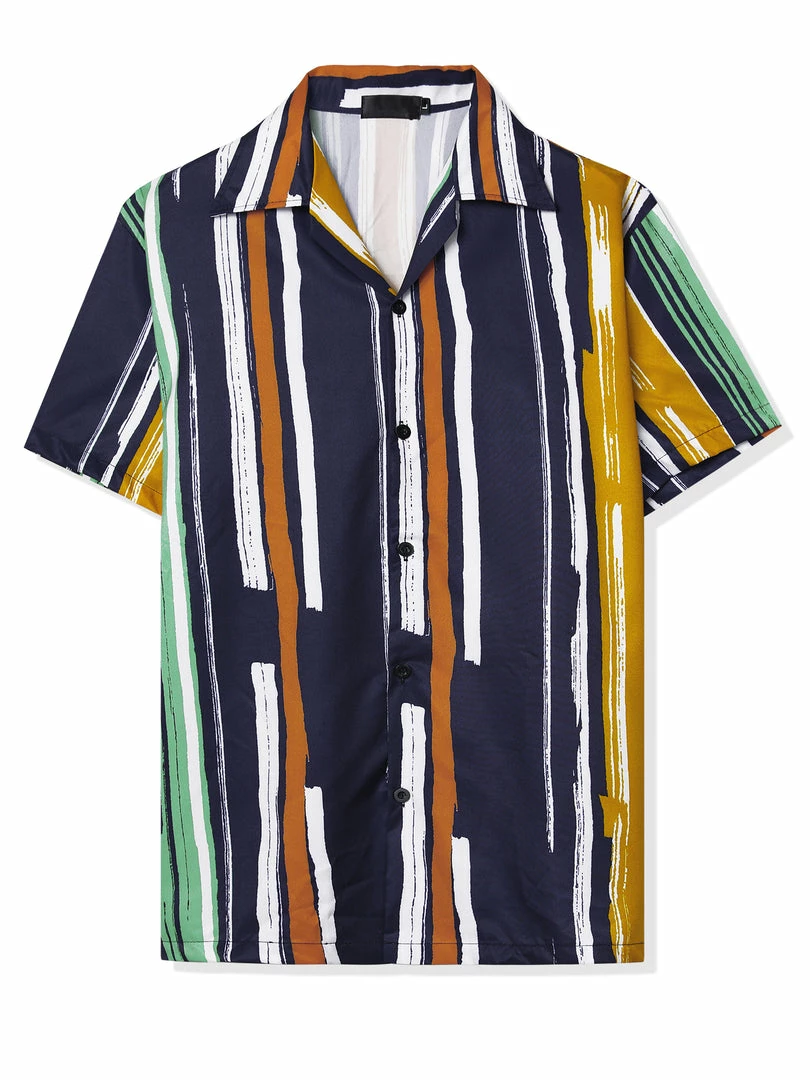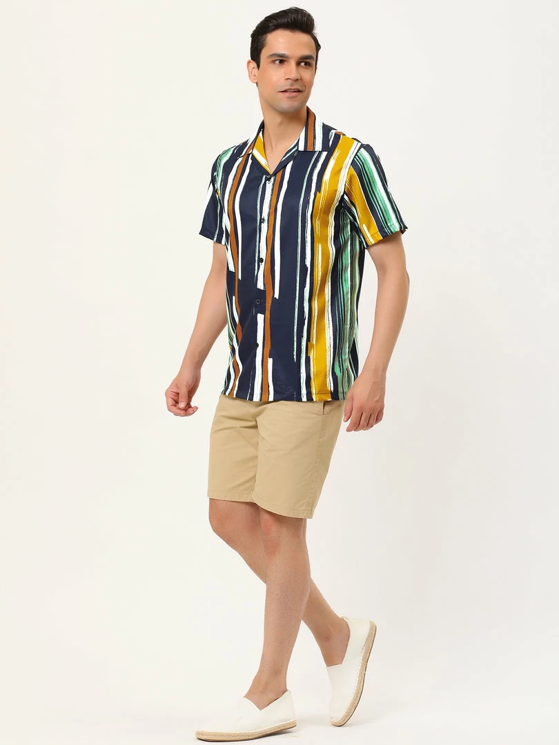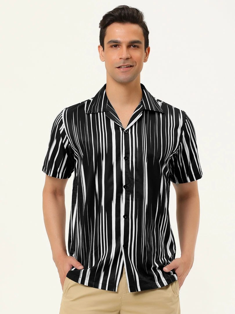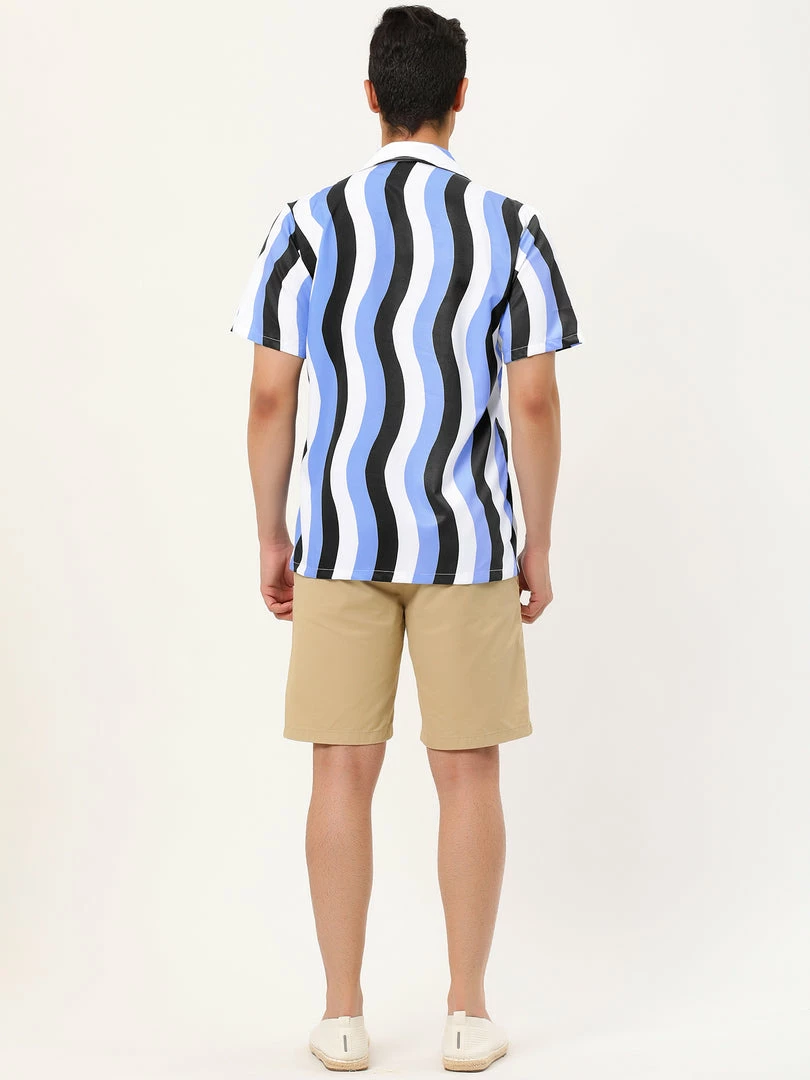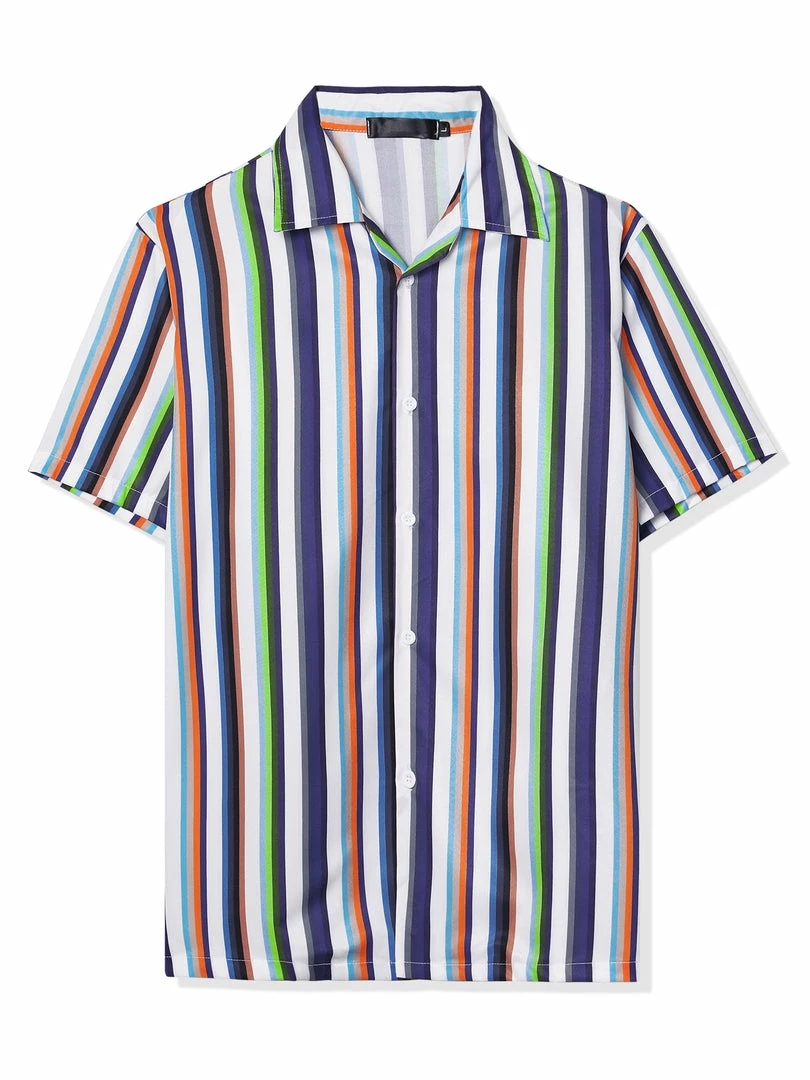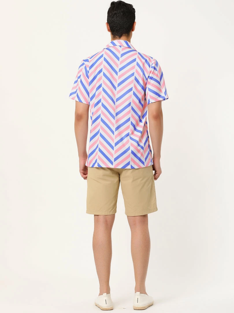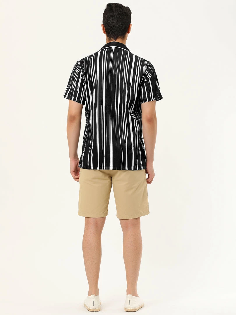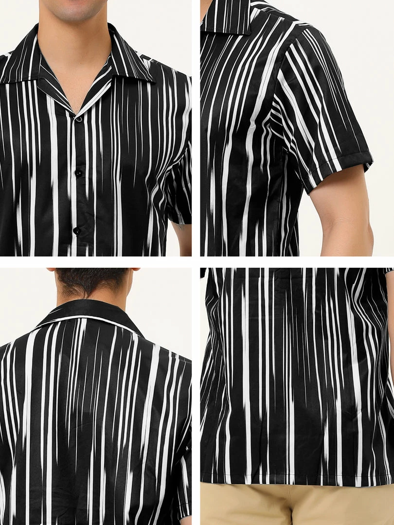Allegra K Men’s Summer Stripe Printed Regular Fit Short Sleeves Button Closure Color Block Shirts Tops