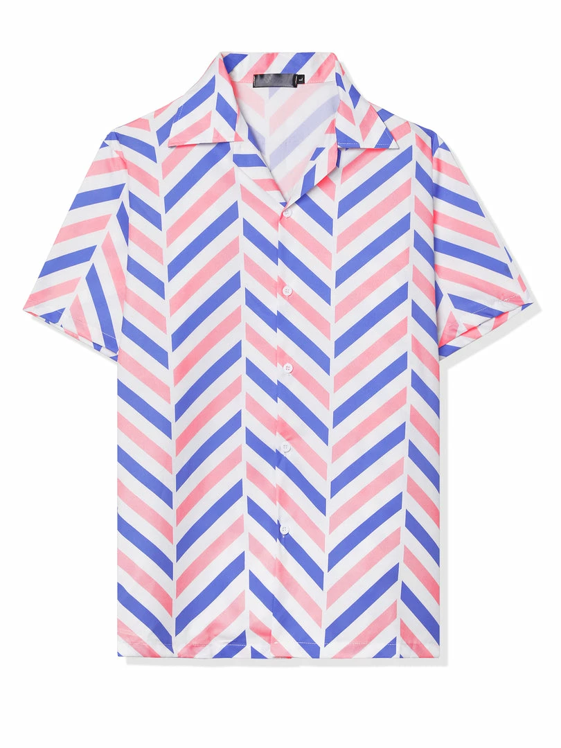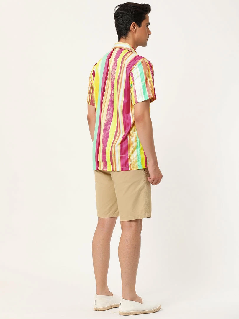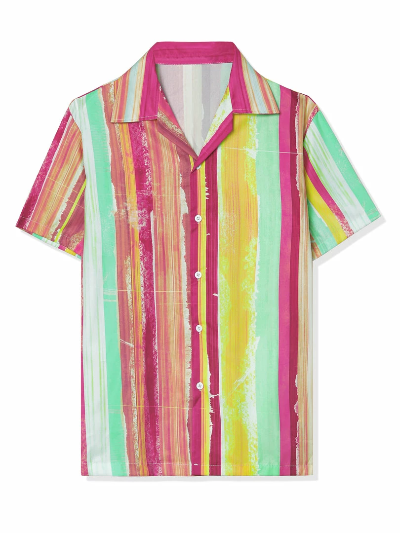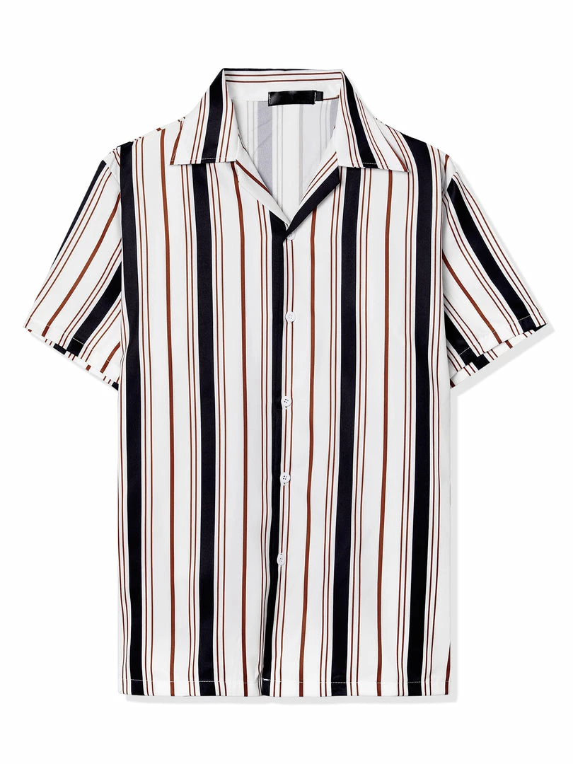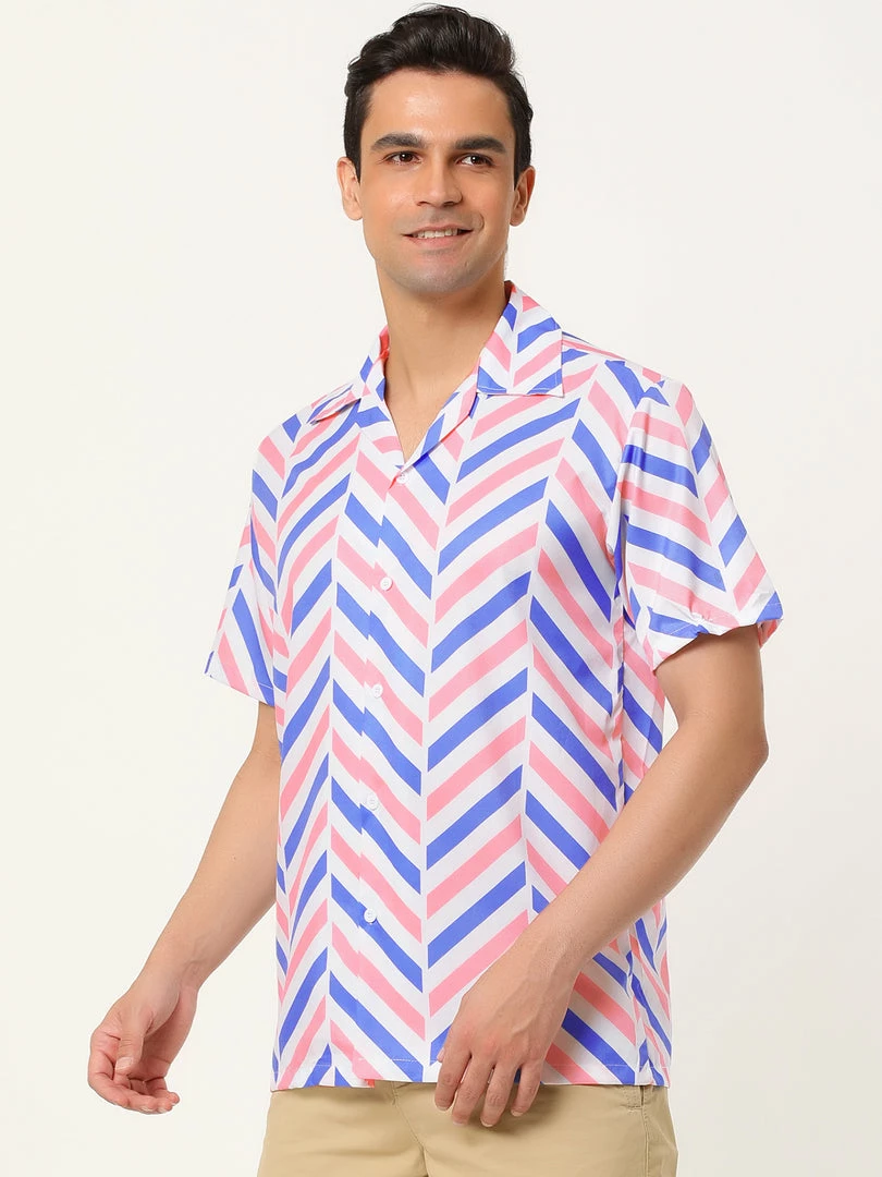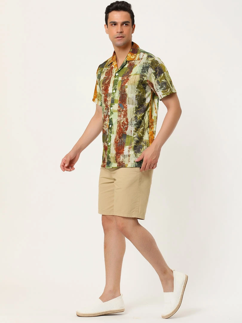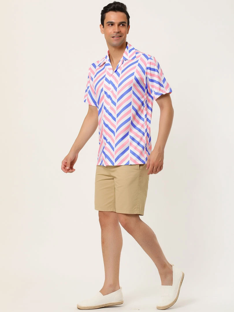 Allegra K Men’s Summer Stripe Printed Regular Fit Short Sleeves Button Closure Color Block Shirts Tops