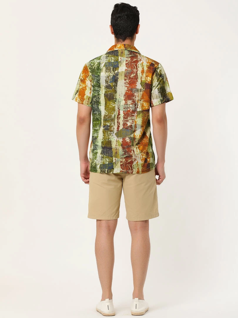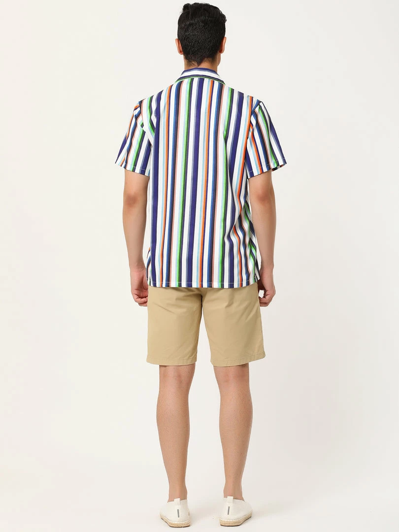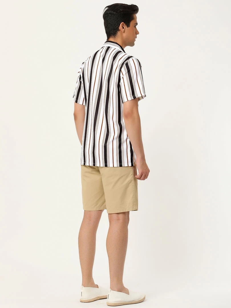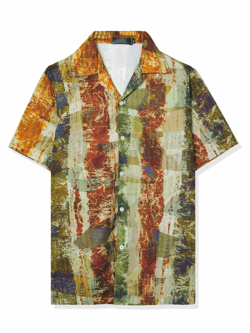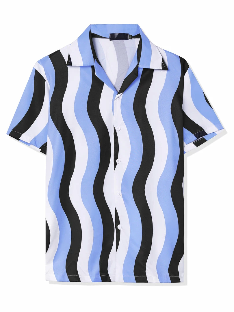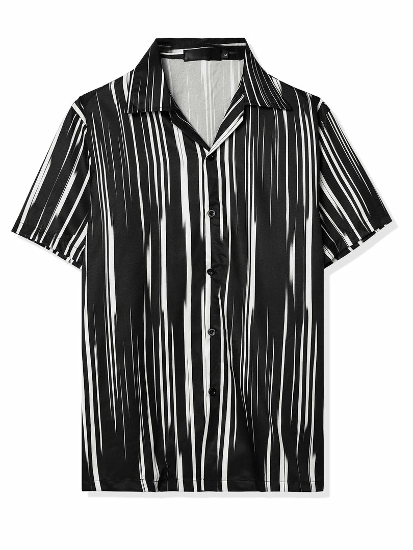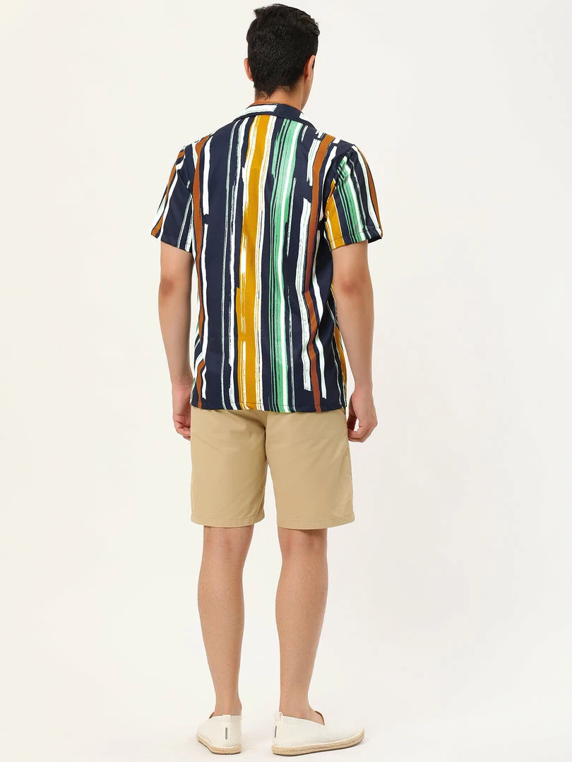 Allegra K Men’s Summer Stripe Printed Regular Fit Short Sleeves Button Closure Color Block Shirts Tops
