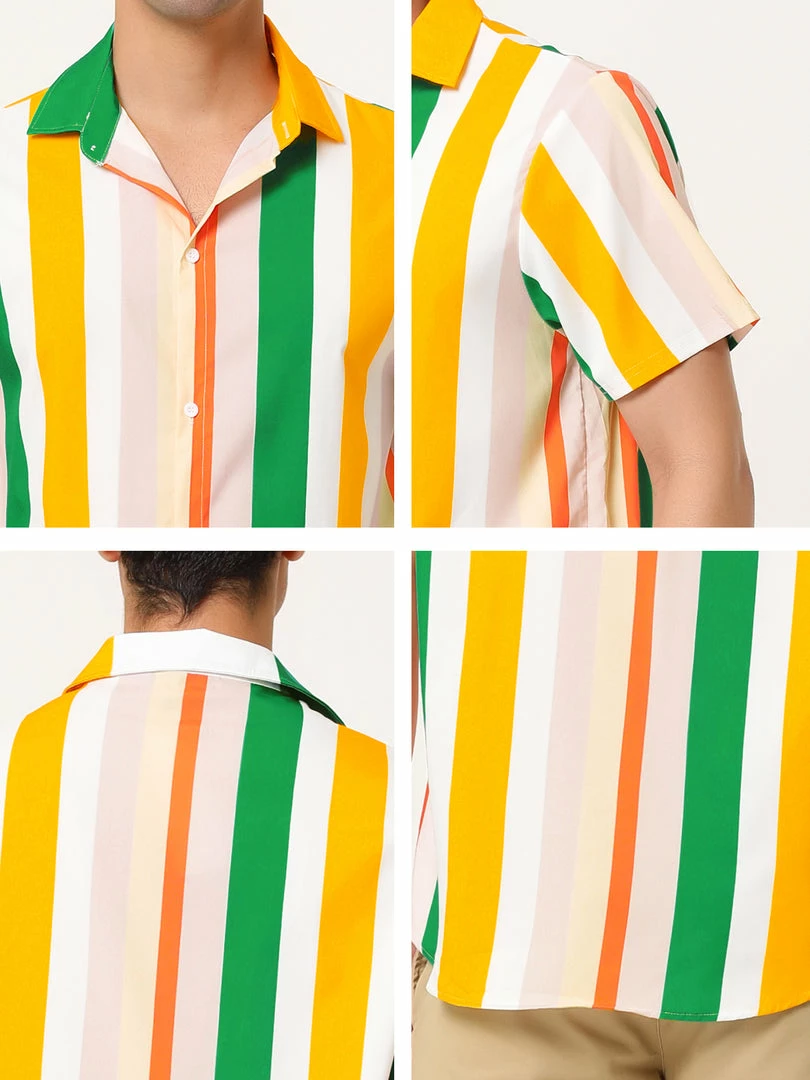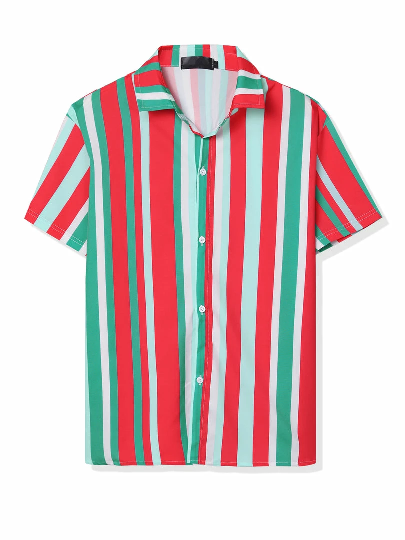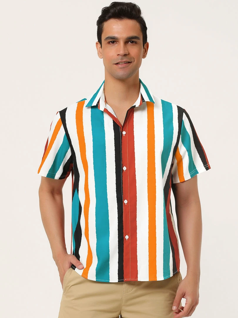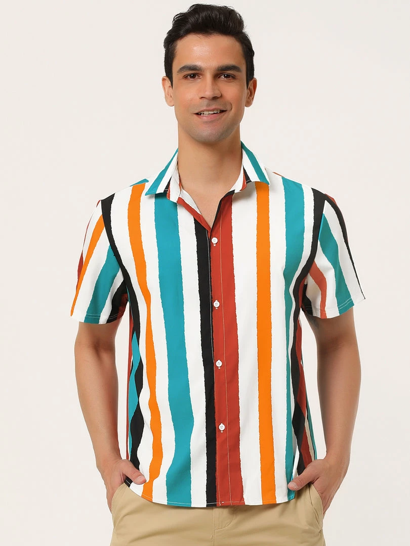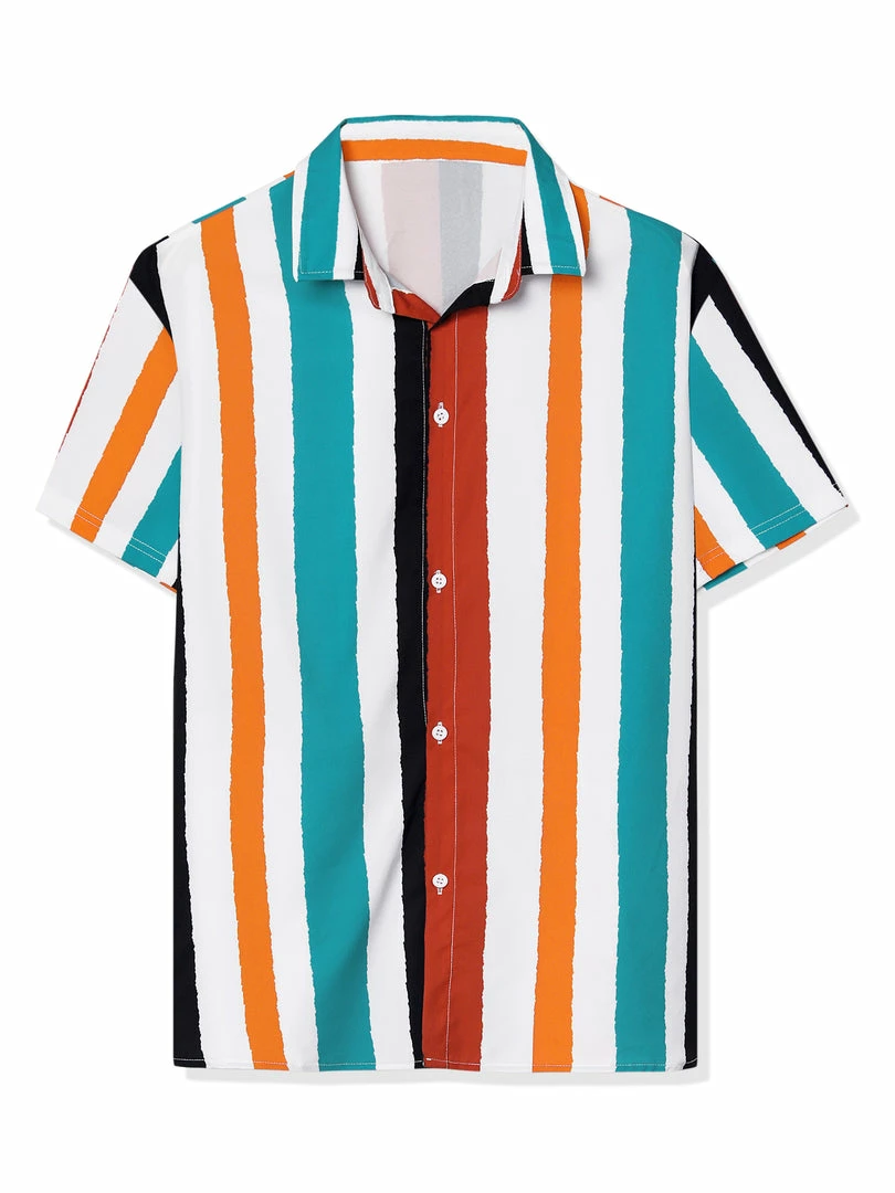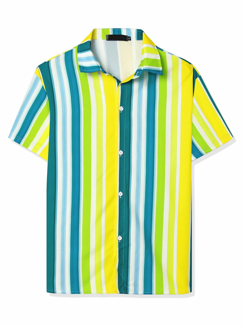 Button short-sleeved shirt with contrast stripe design, showing the charm of men in summer.
