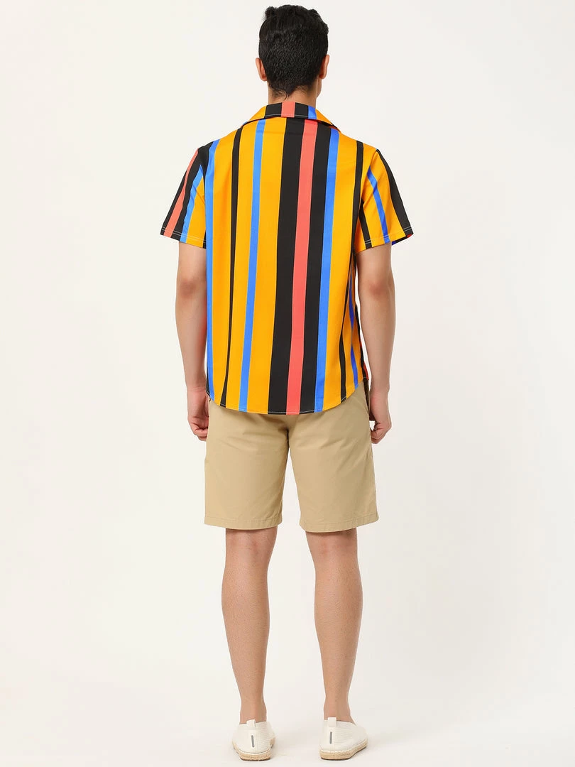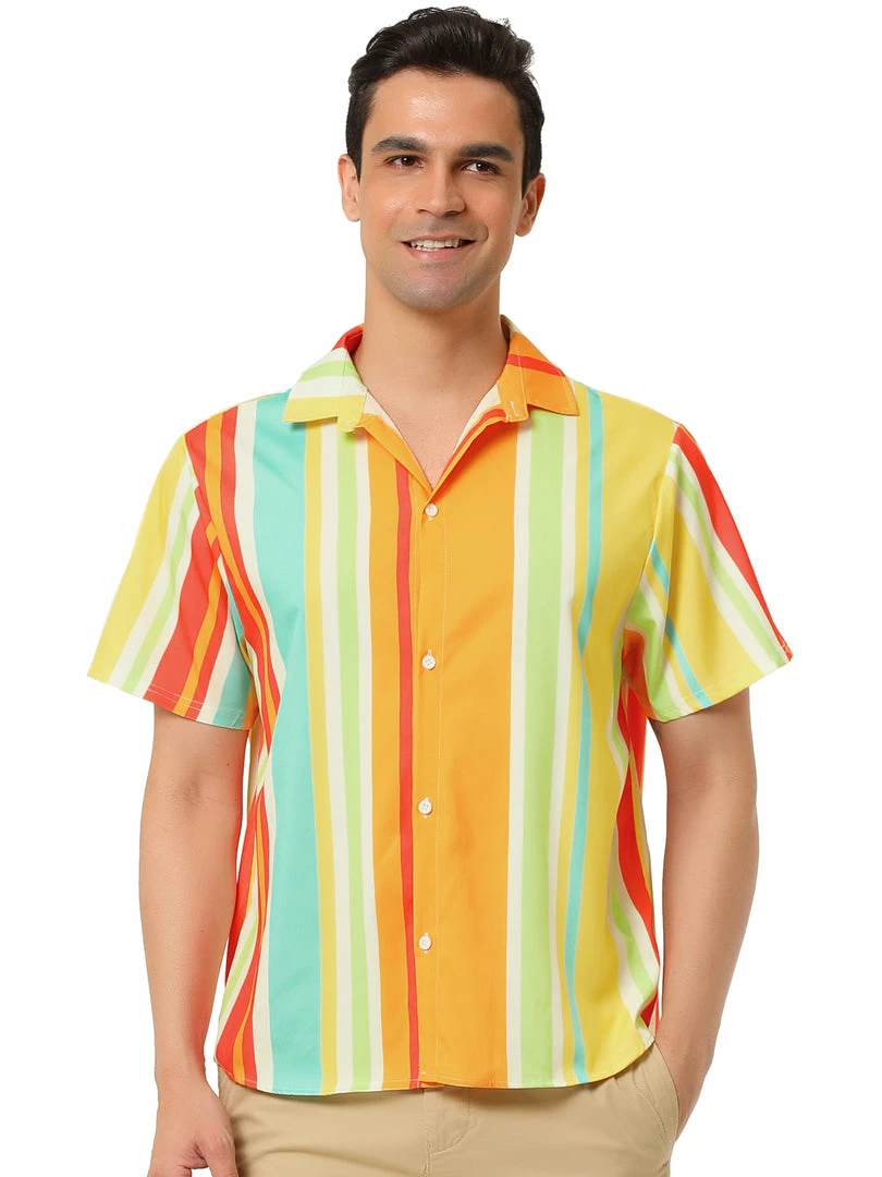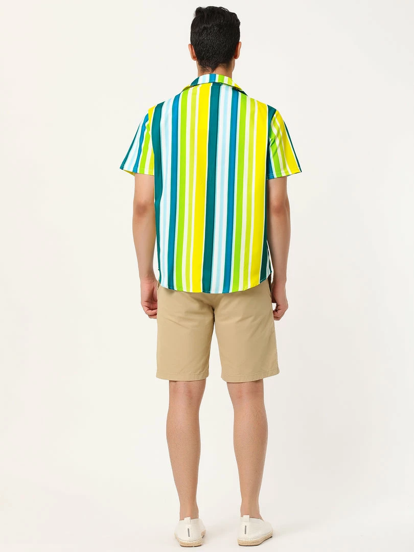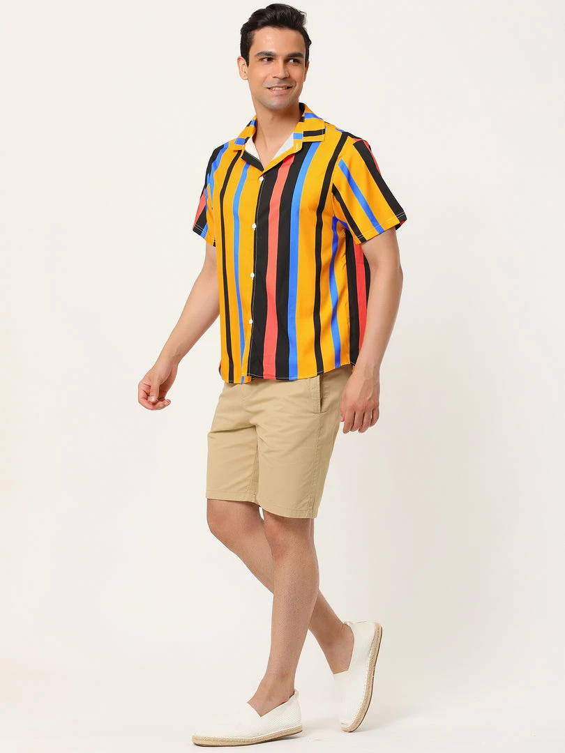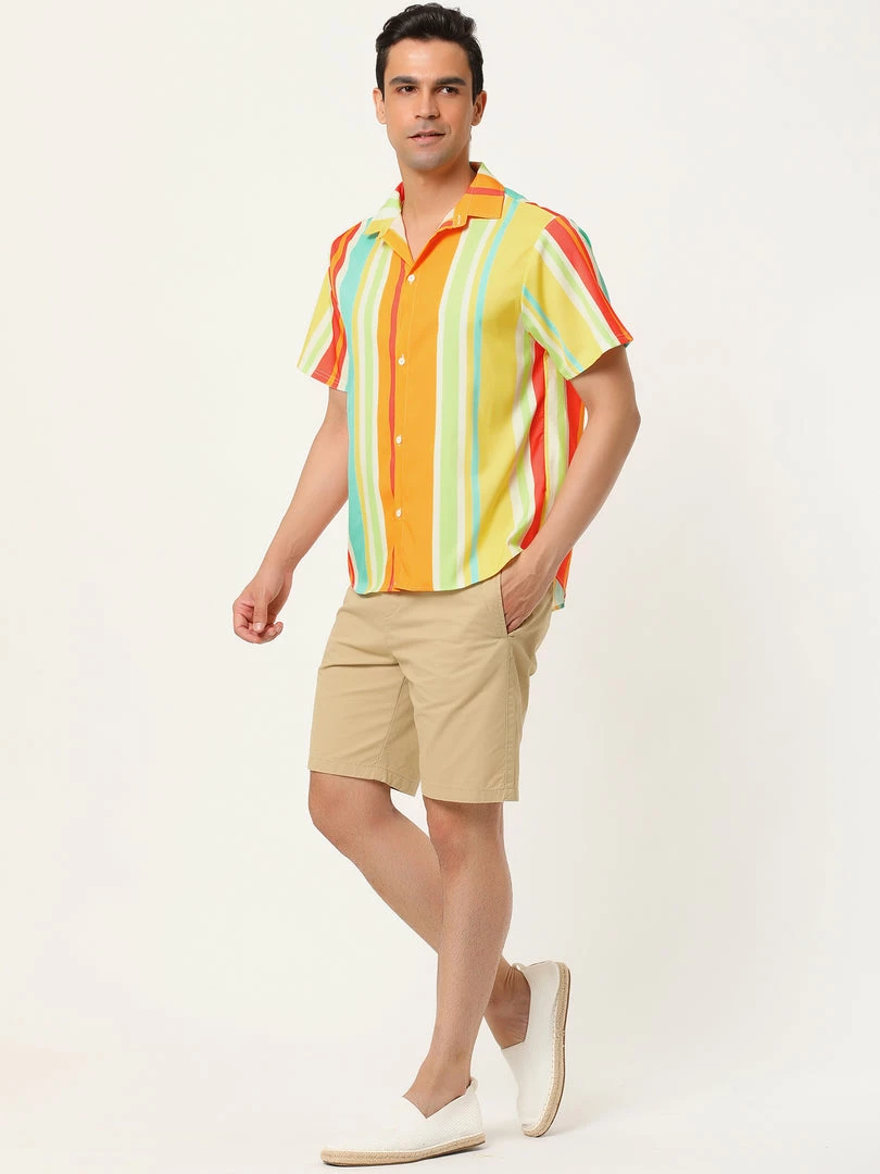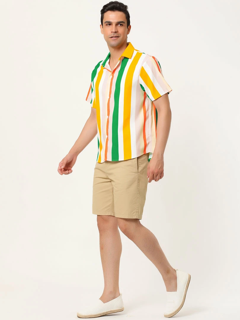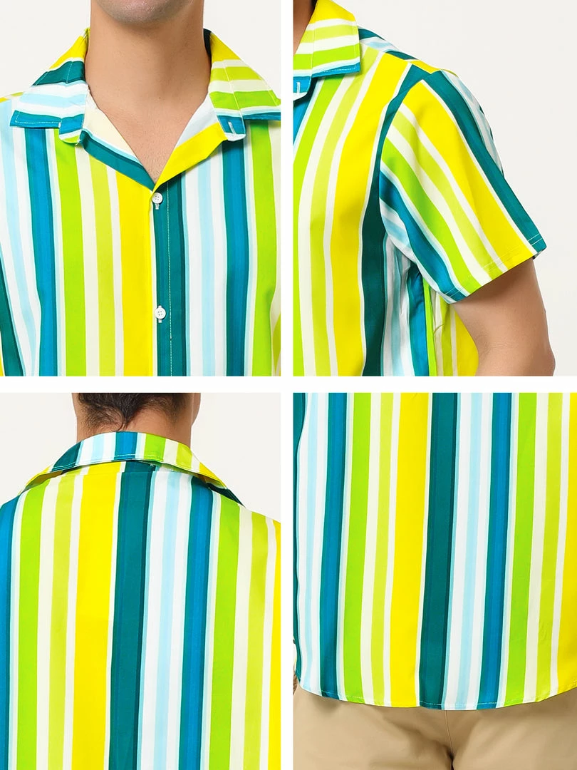 Button short-sleeved shirt with contrast stripe design, showing the charm of men in summer.