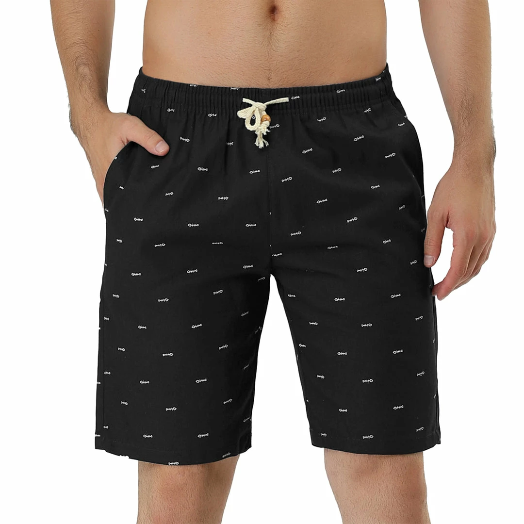Allegra K Men’s Summer Swim Elastic Waistband Drawstring Pockets Patterned Beach Board Shorts