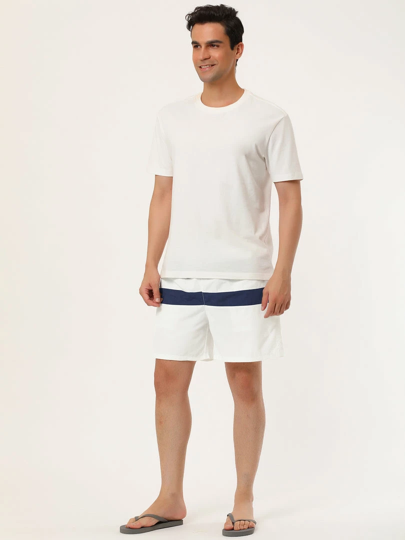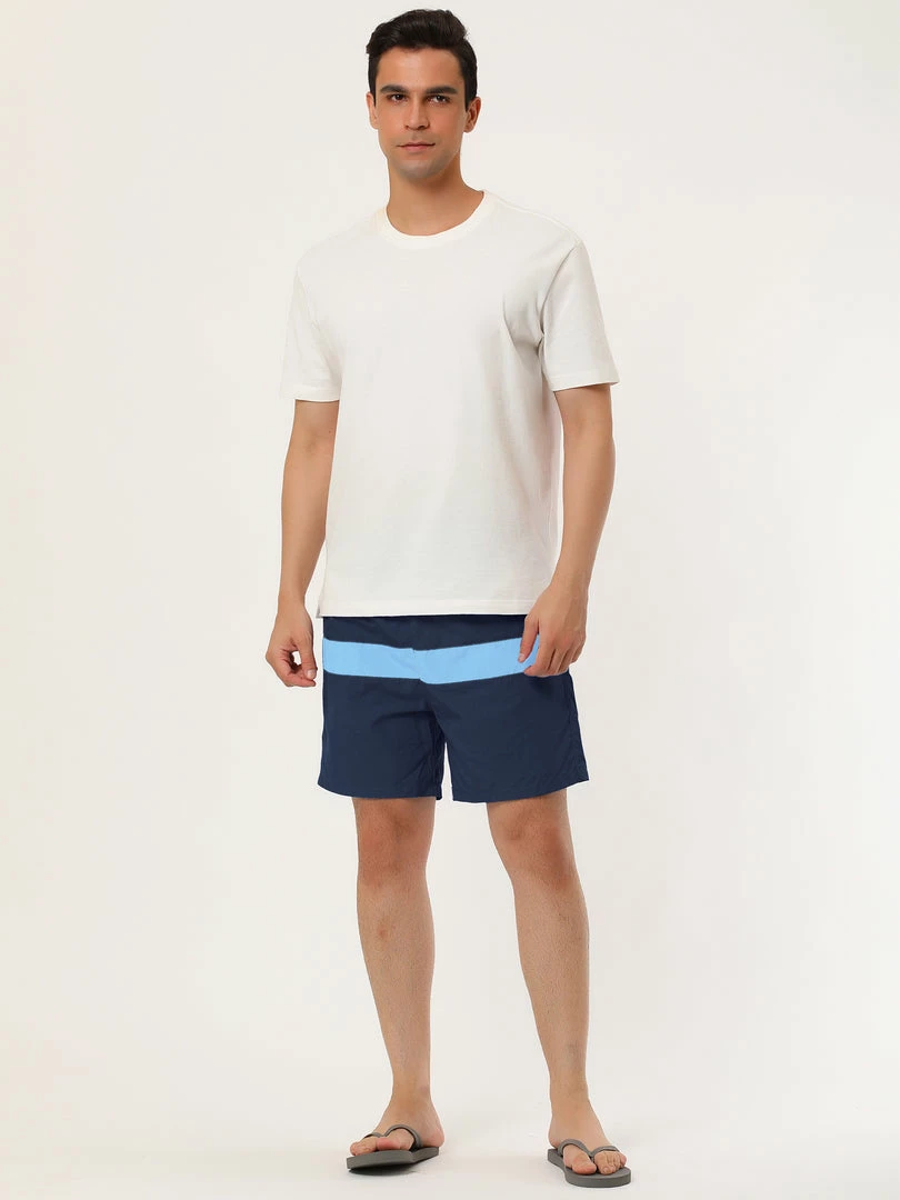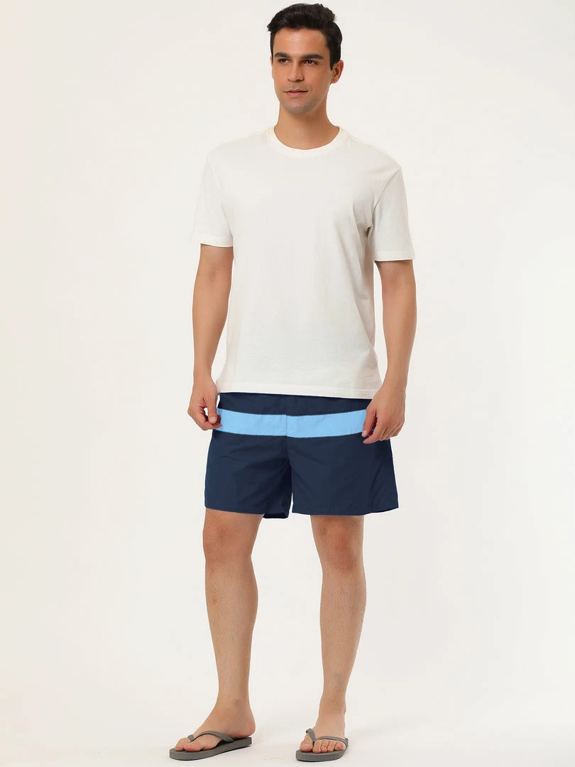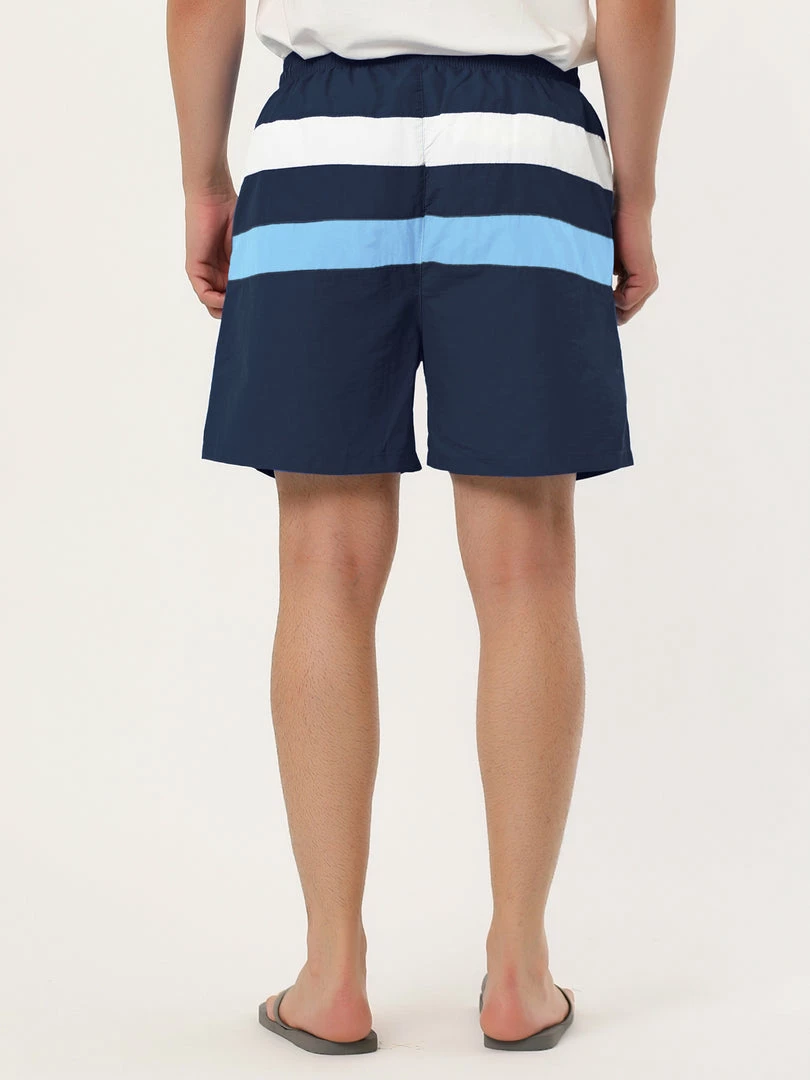 Allegra K Men’s Swim Shorts Summer Striped Color Block Drawstring Waist Beach Board Shorts