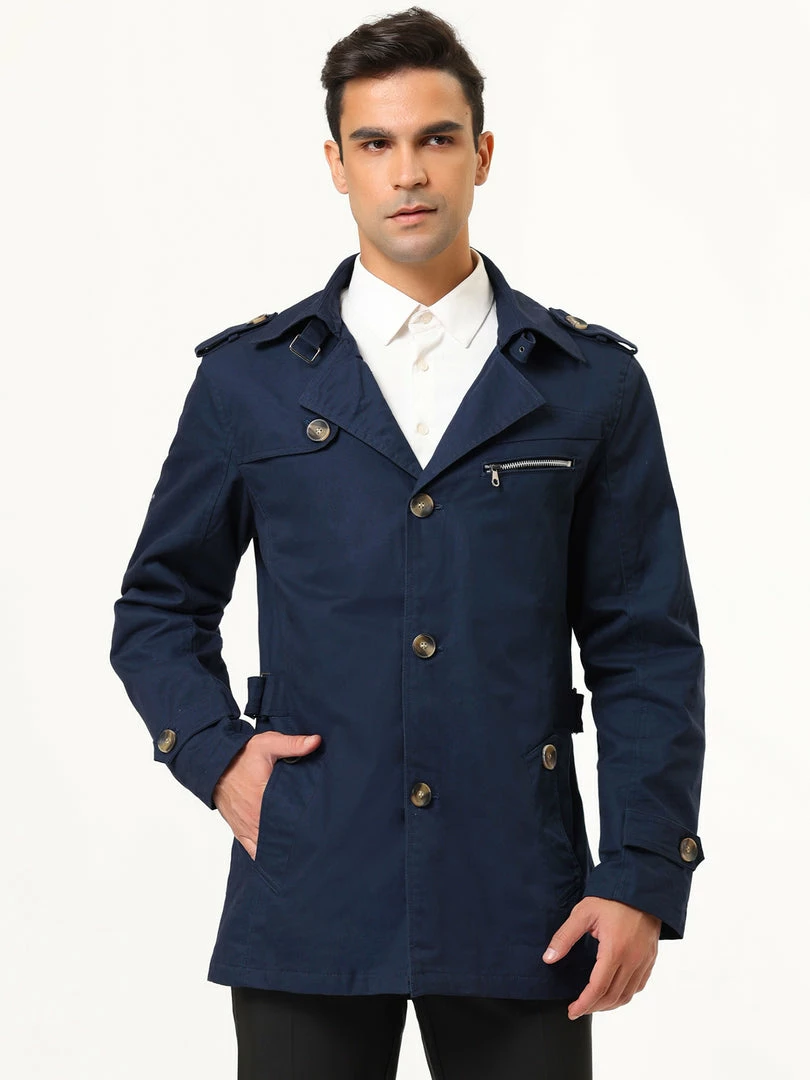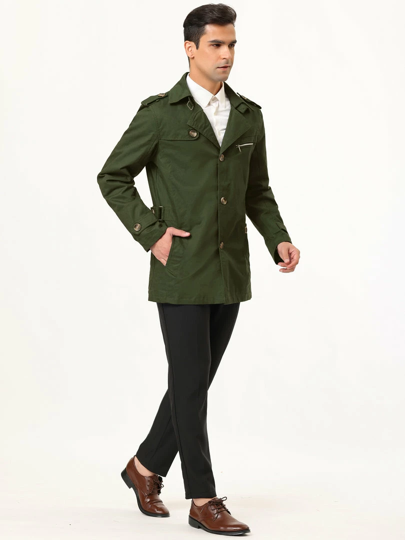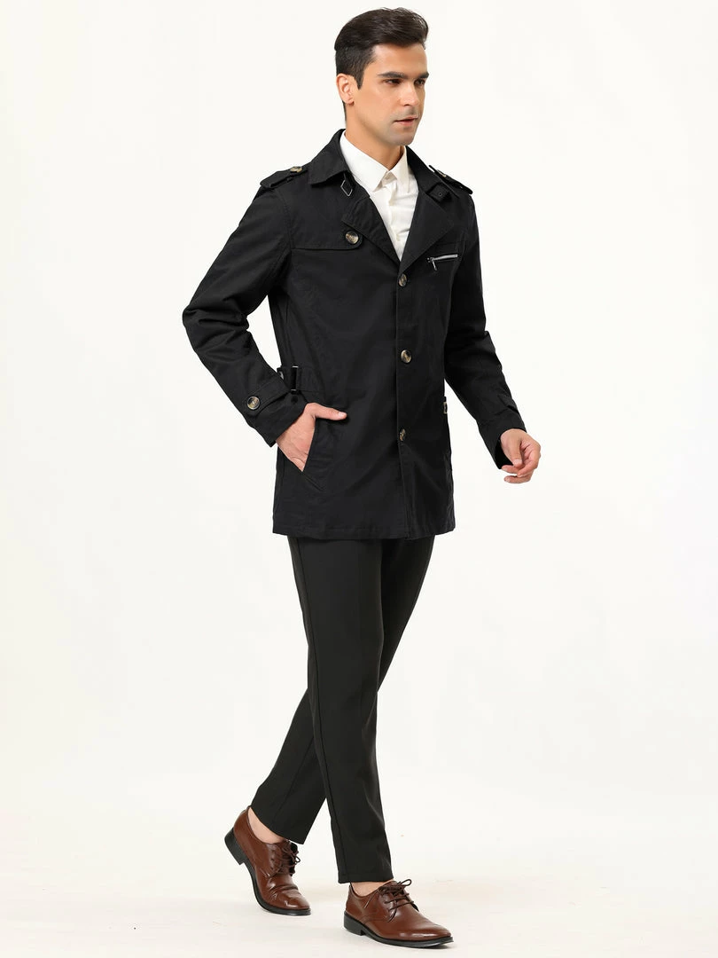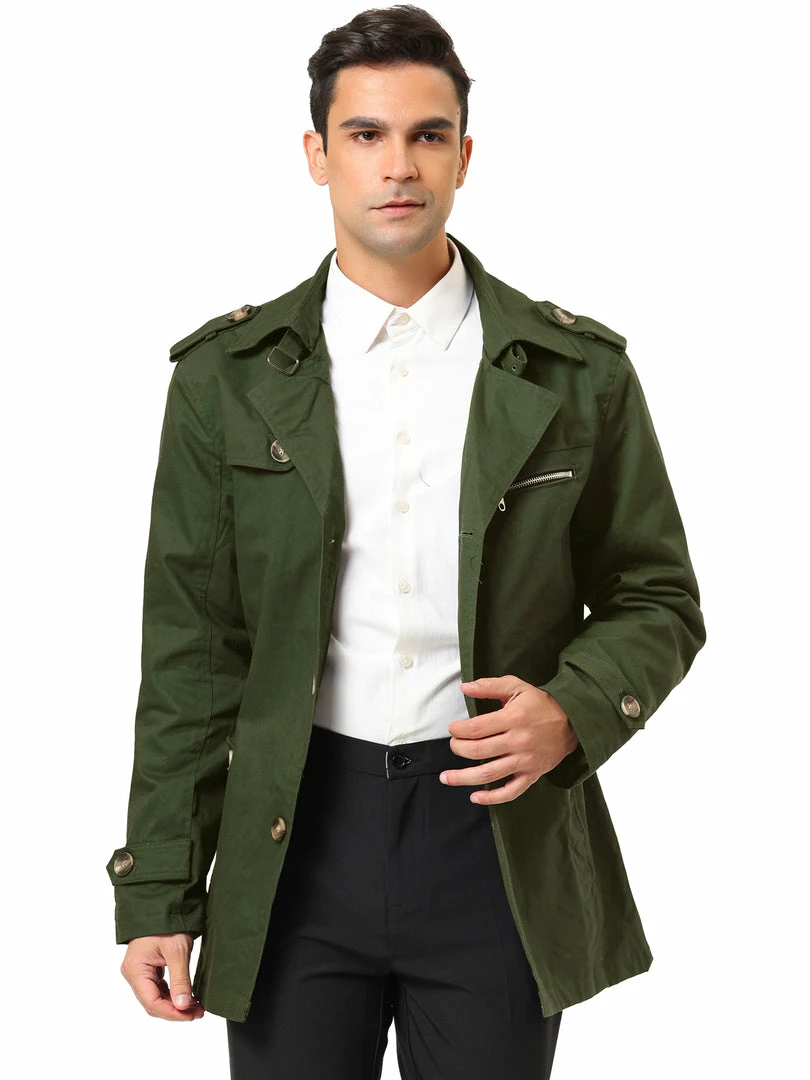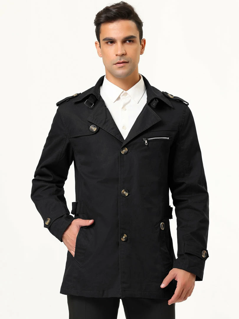 Allegra K Men’s Trench Coat Notched Collar Single Breasted Windbreaker Overcoat