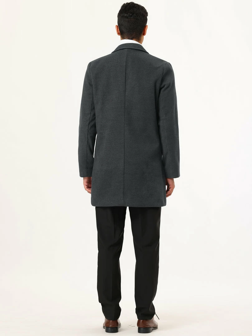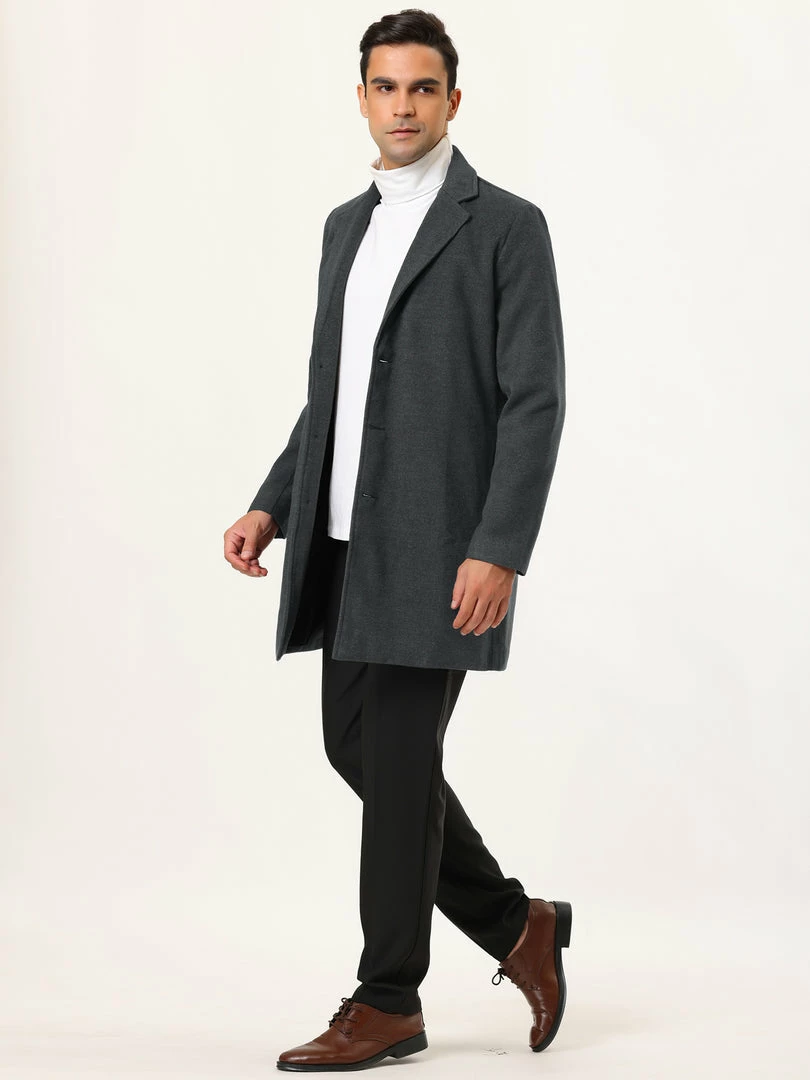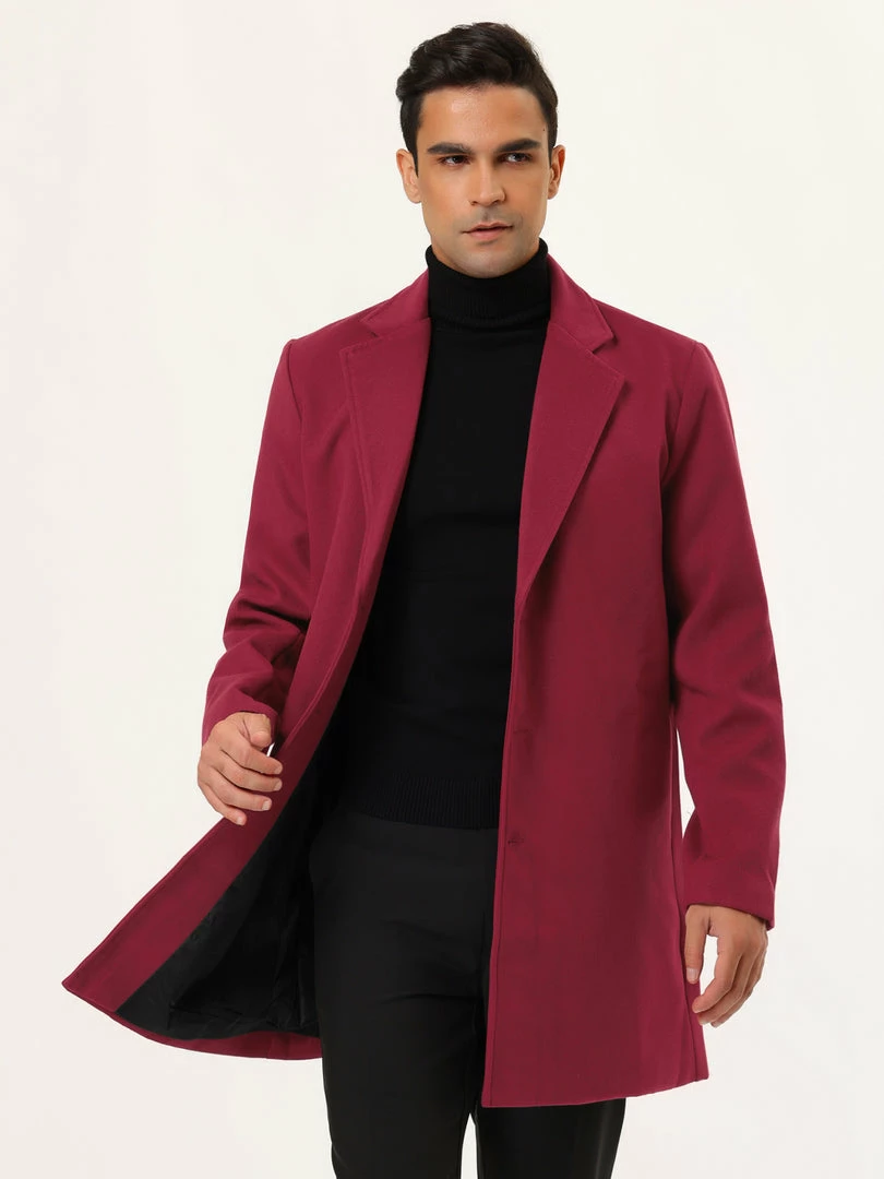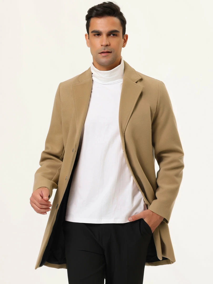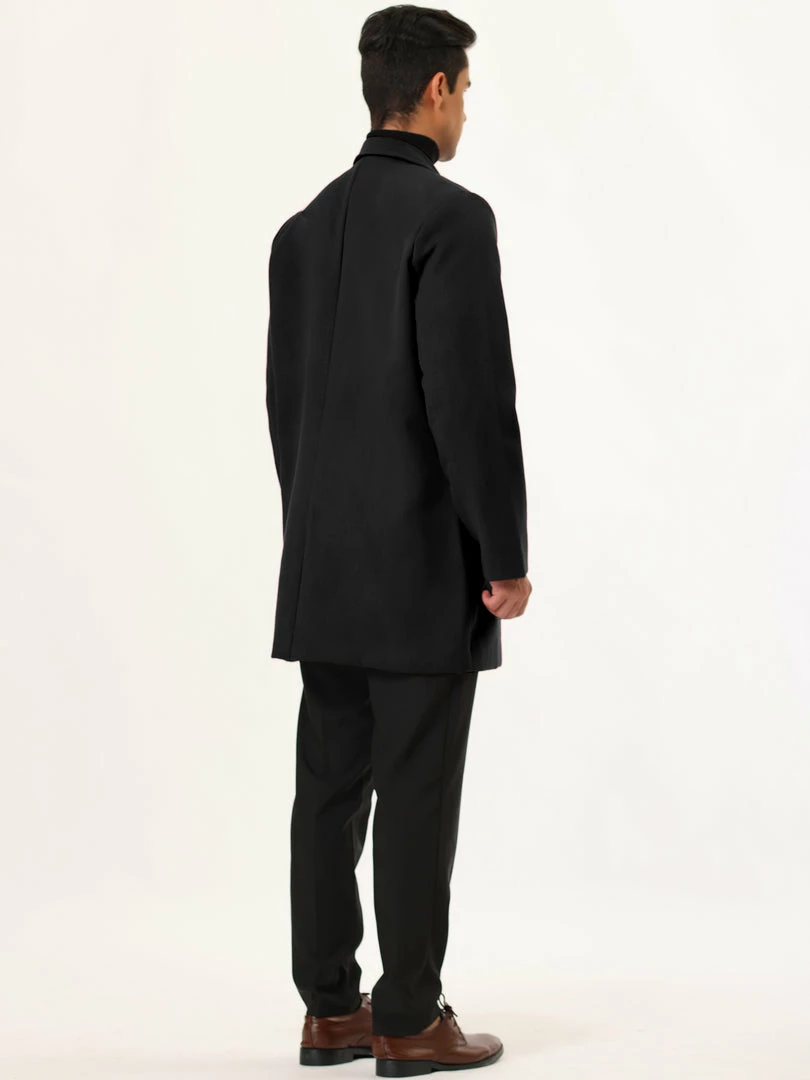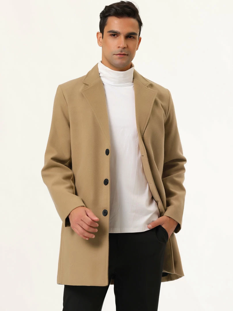 Allegra K Men’s Trench Coat Slim Fit Winter Notched Lapel Single Breasted Long Jacket Overcoat