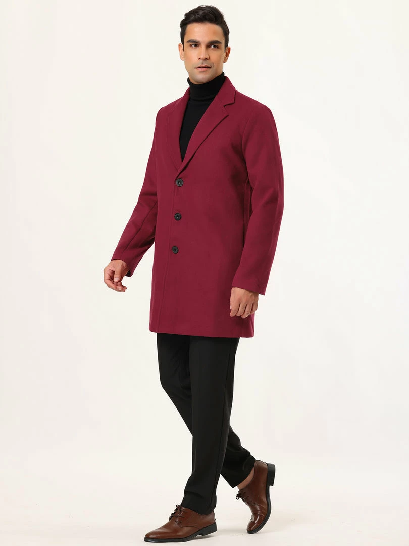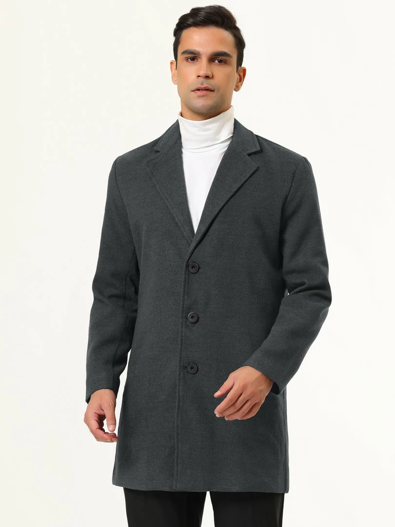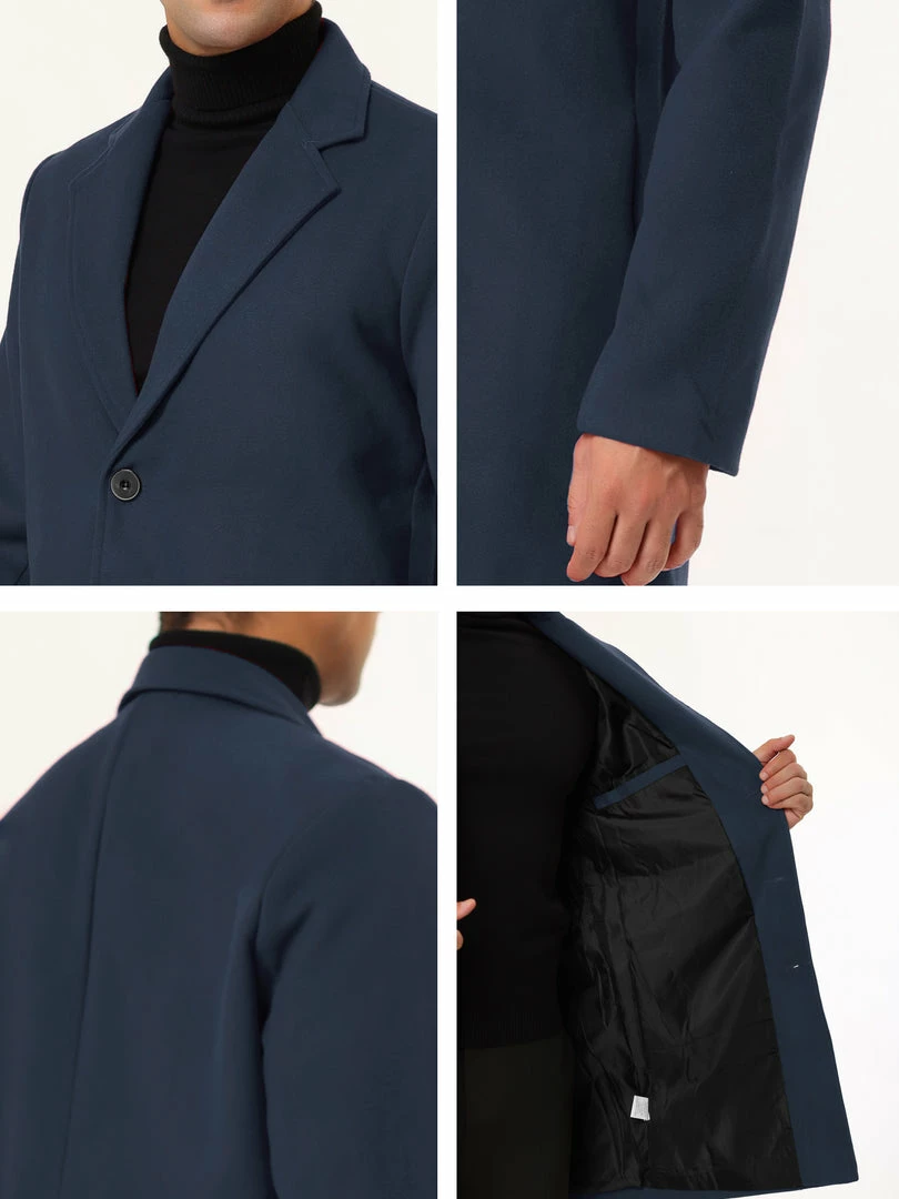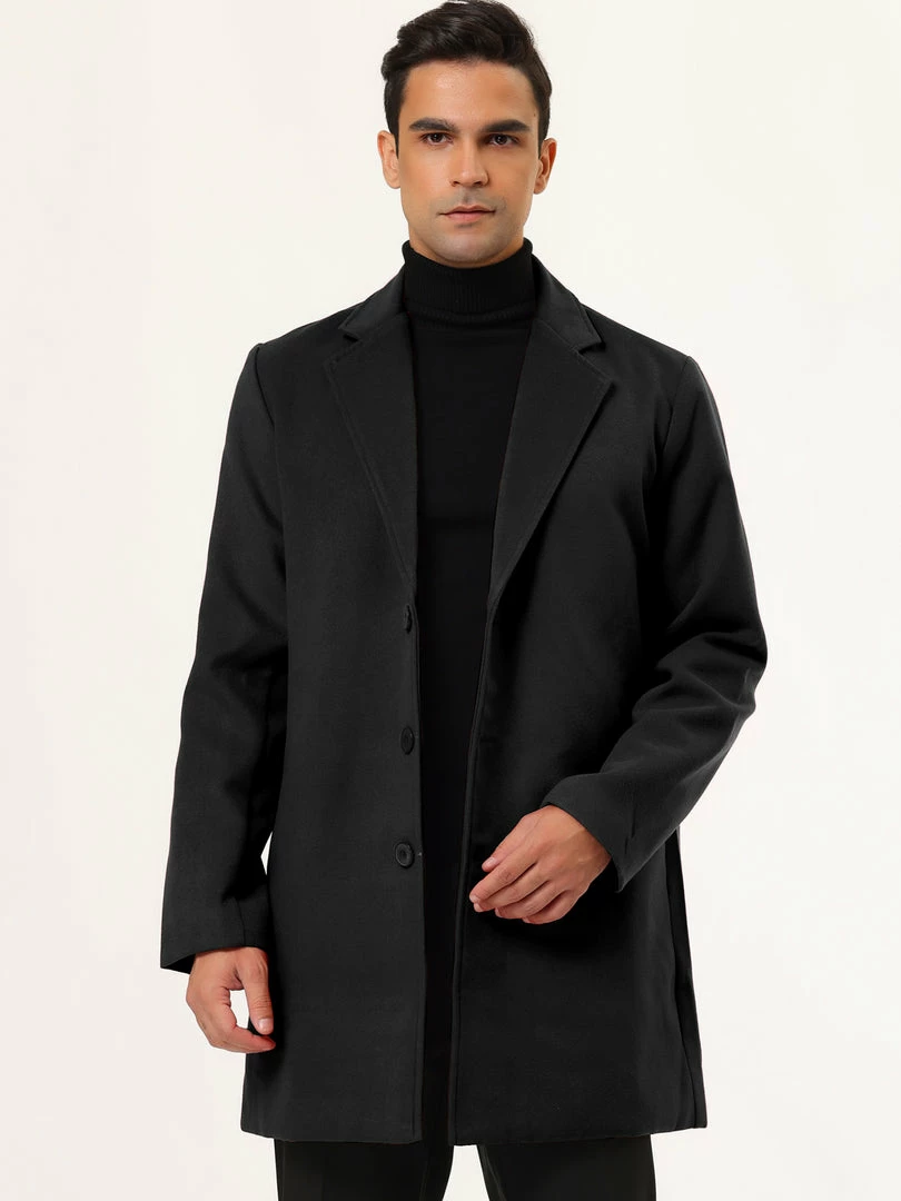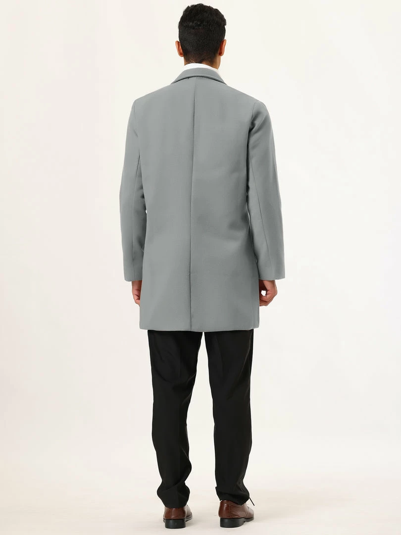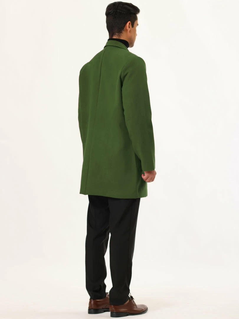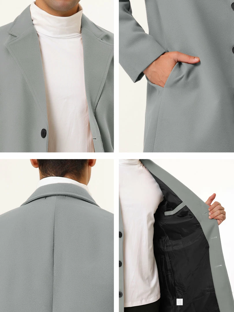 Allegra K Men’s Trench Coat Slim Fit Winter Notched Lapel Single Breasted Long Jacket Overcoat