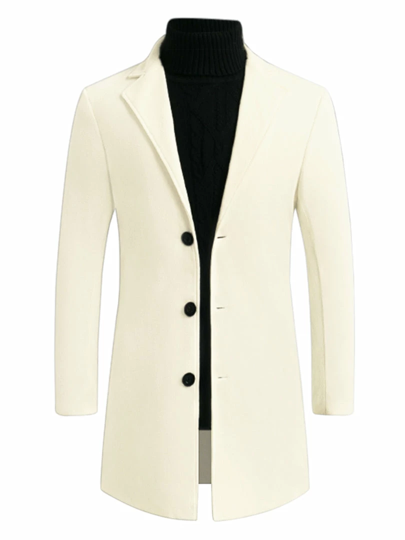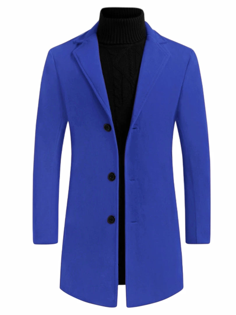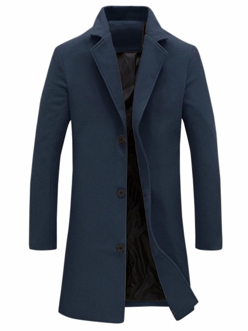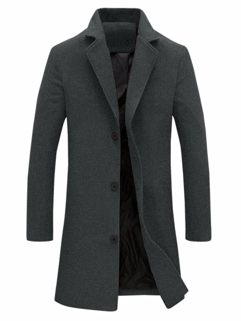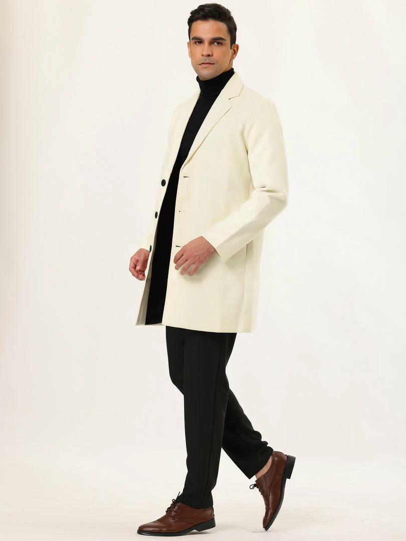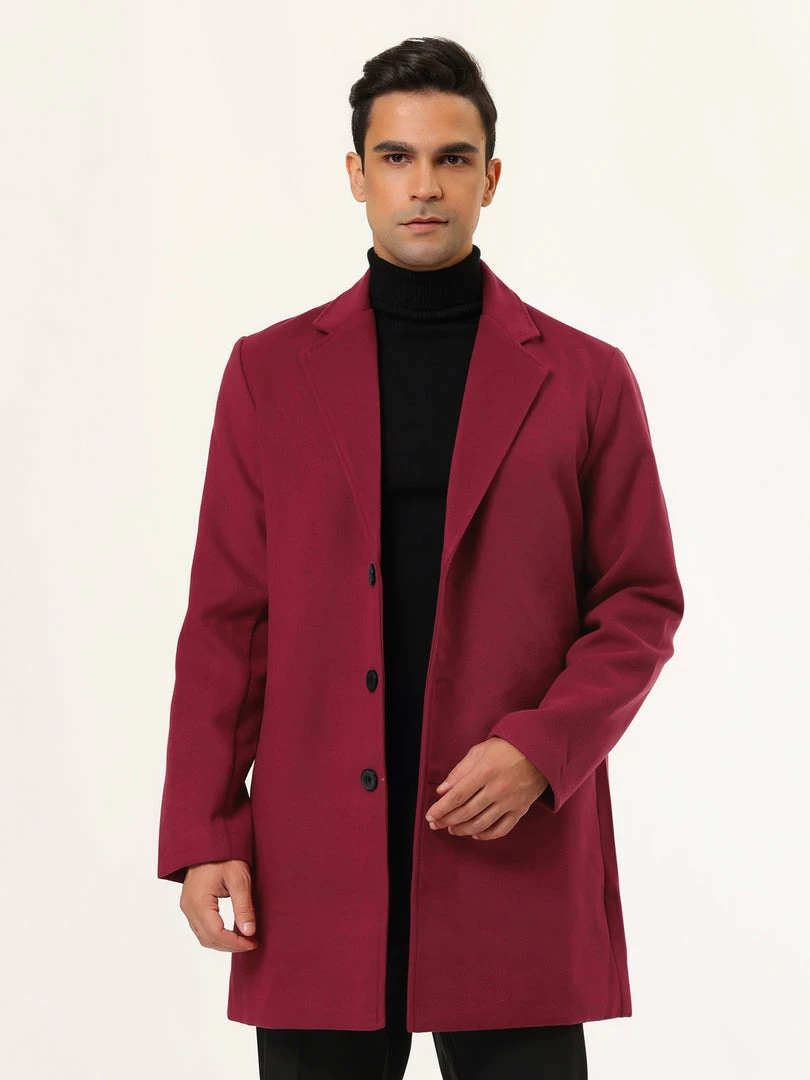 Allegra K Men’s Trench Coat Slim Fit Winter Notched Lapel Single Breasted Long Jacket Overcoat