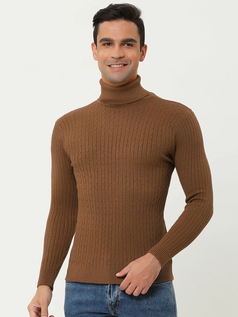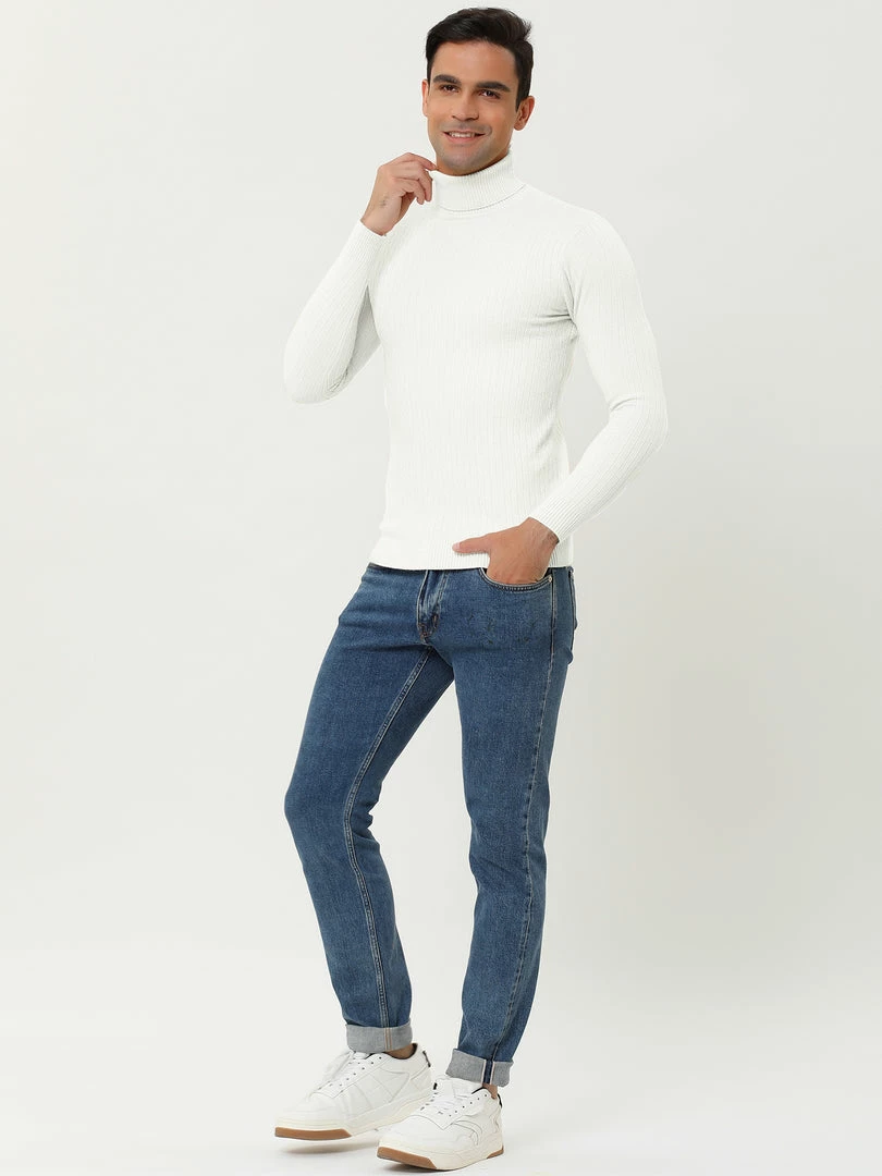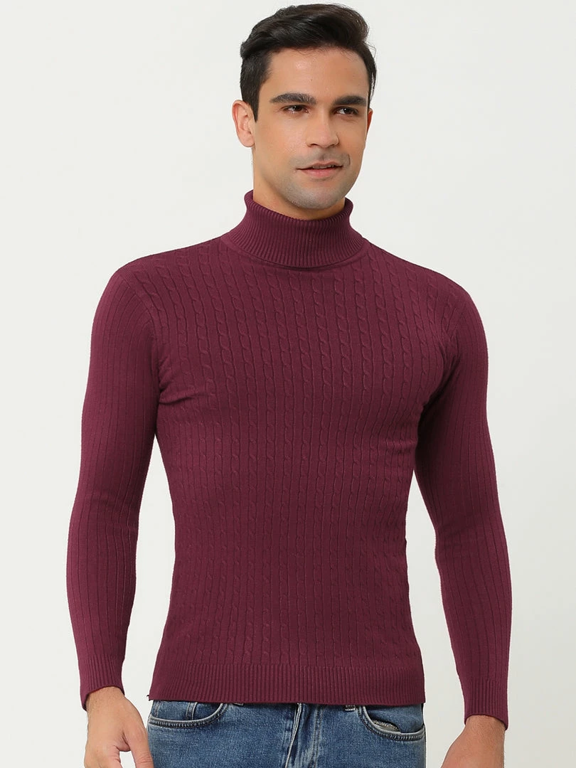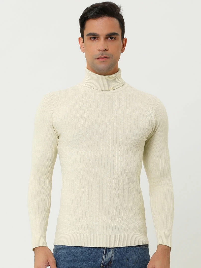 Allegra K Men’s Turtleneck Sweaters Winter Ribbed Cable Knit Pullover Sweater