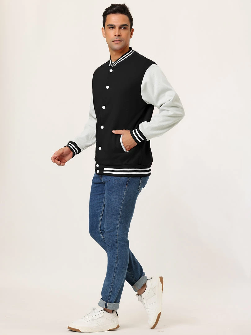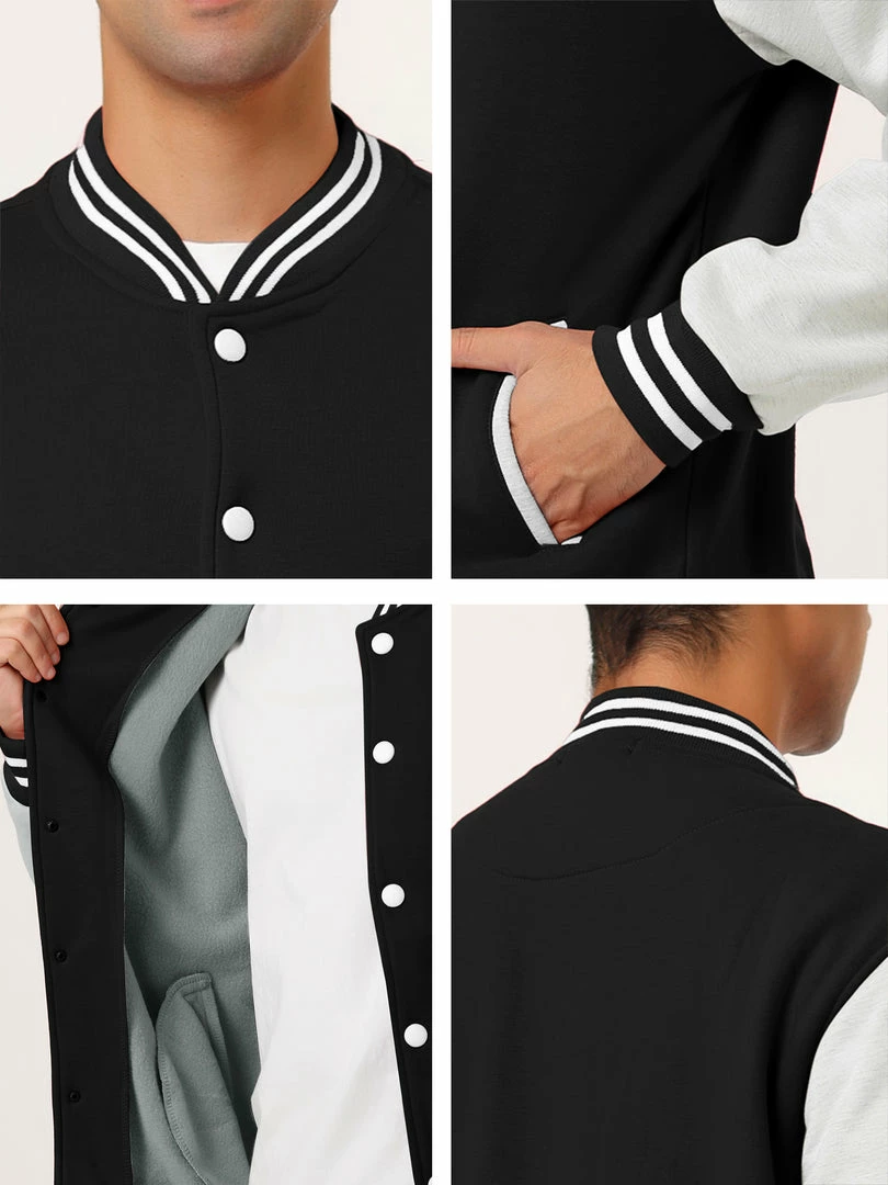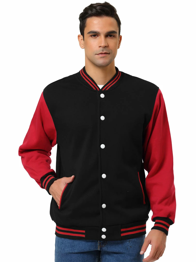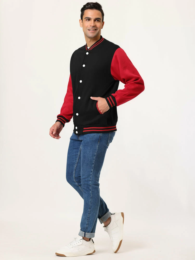 Allegra K Men’s Varsity Baseball Jacket Button Down Color Block School Uniform Bomber Jackets Coats & Outerwear