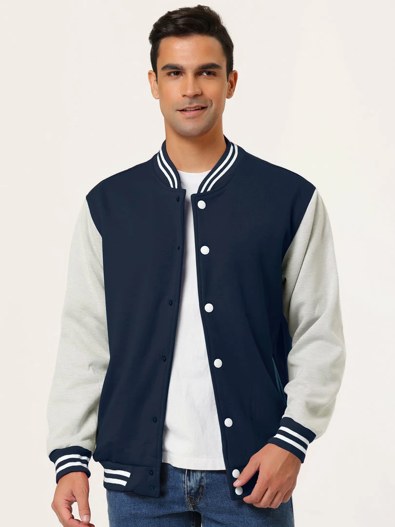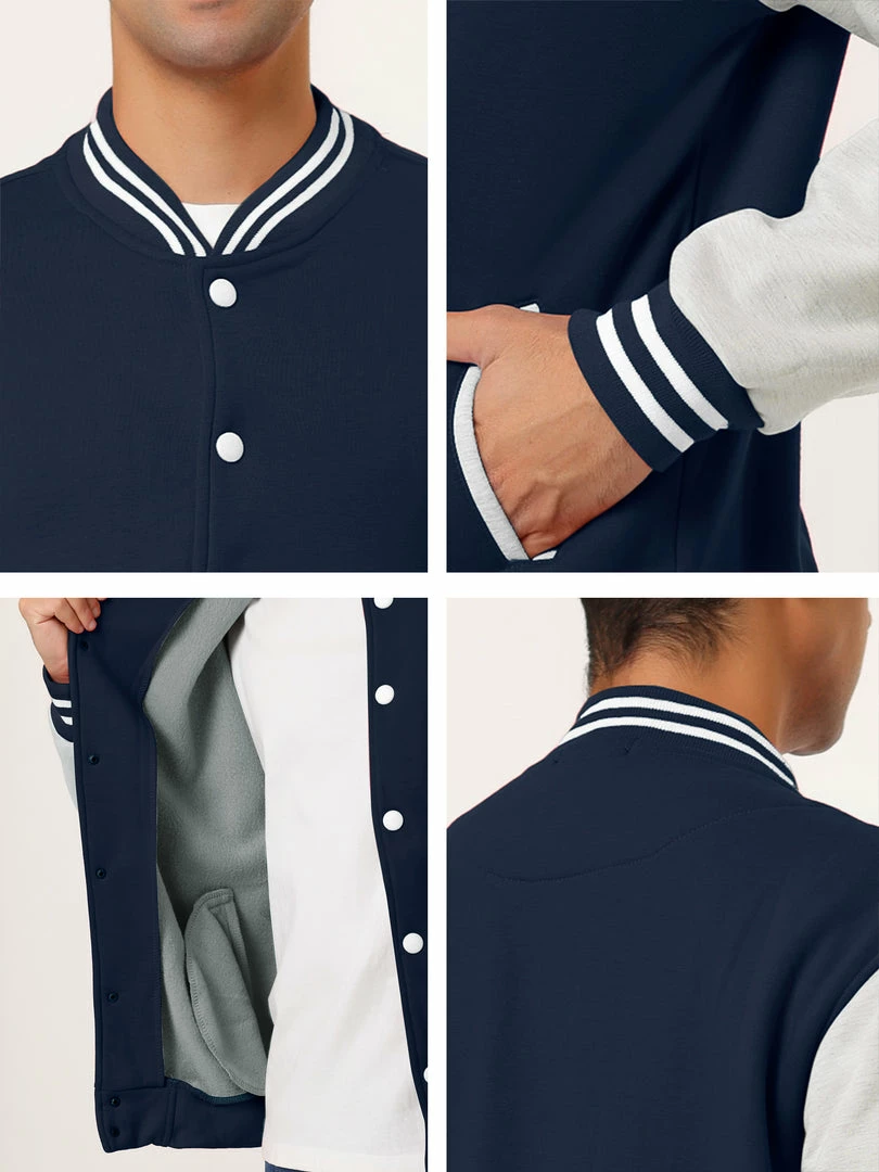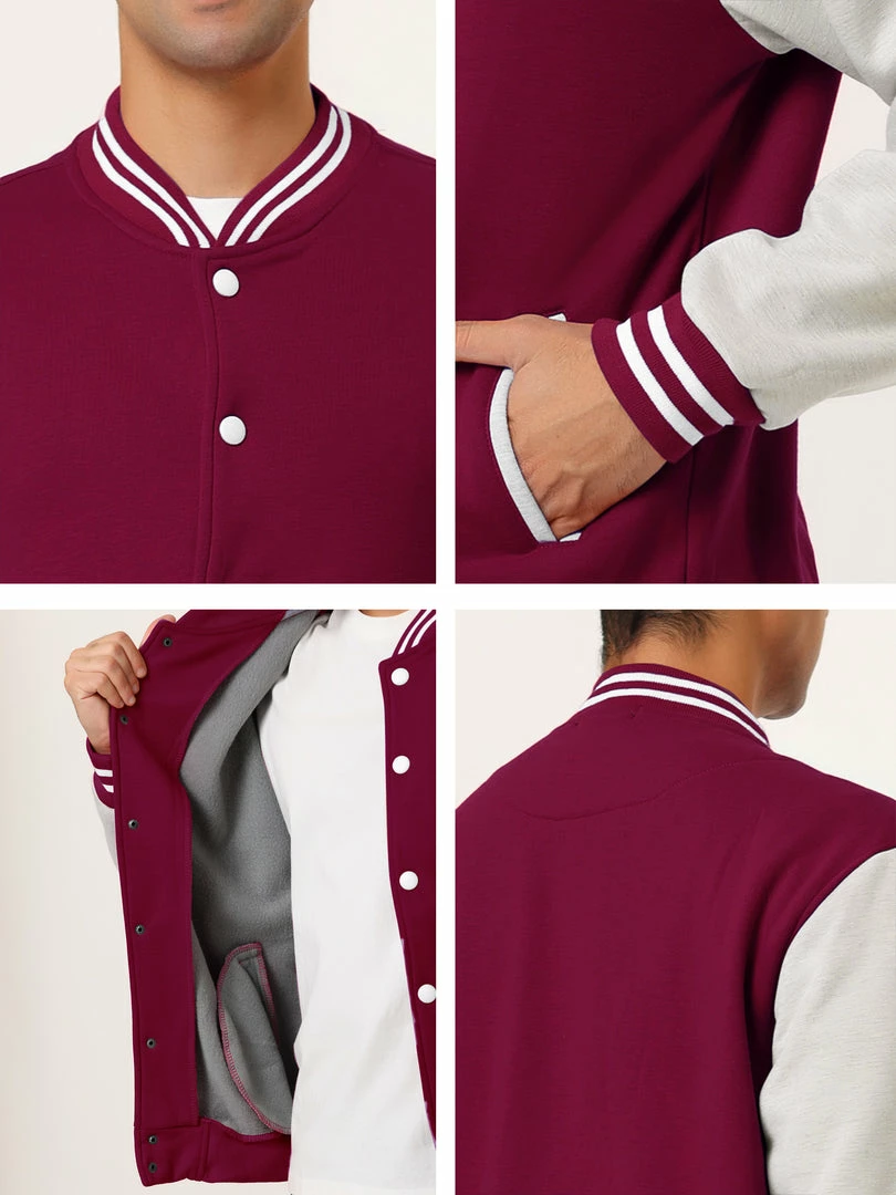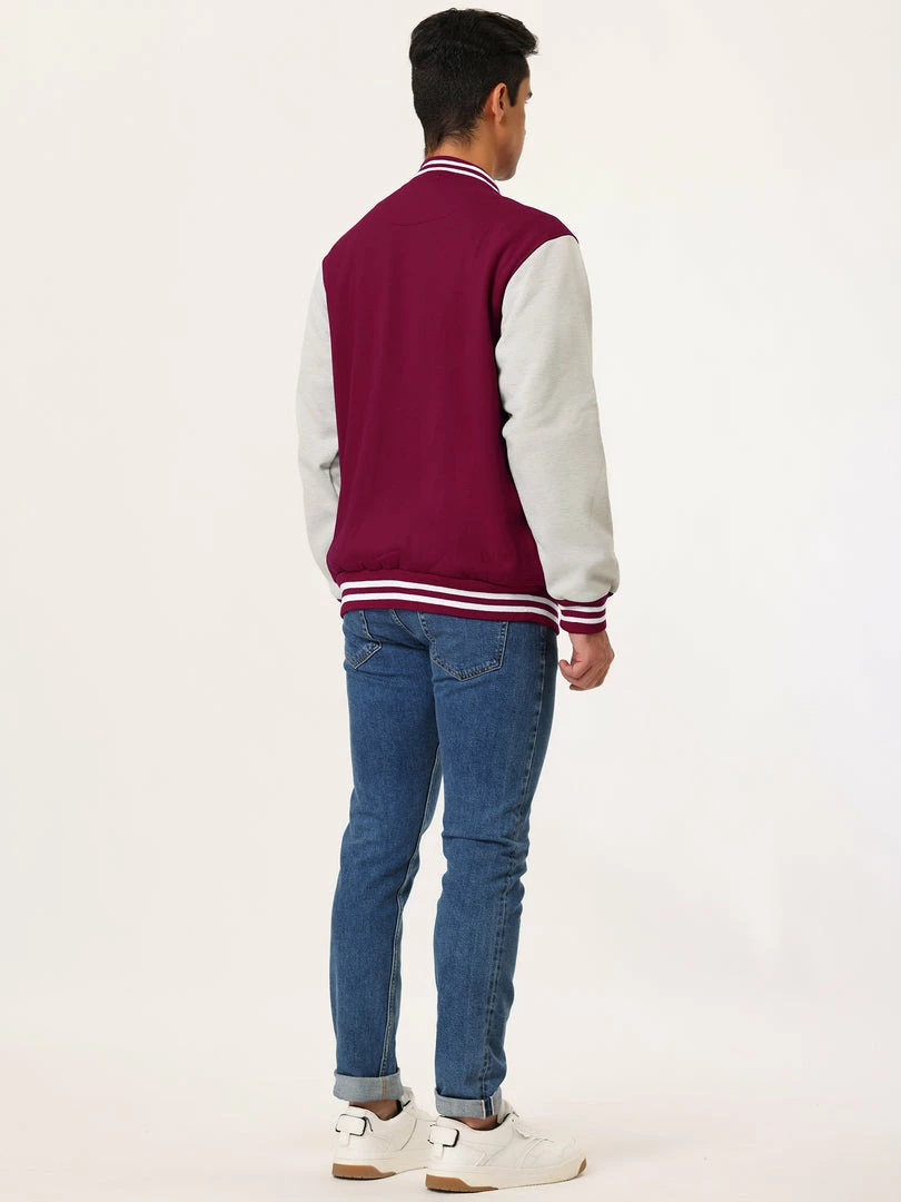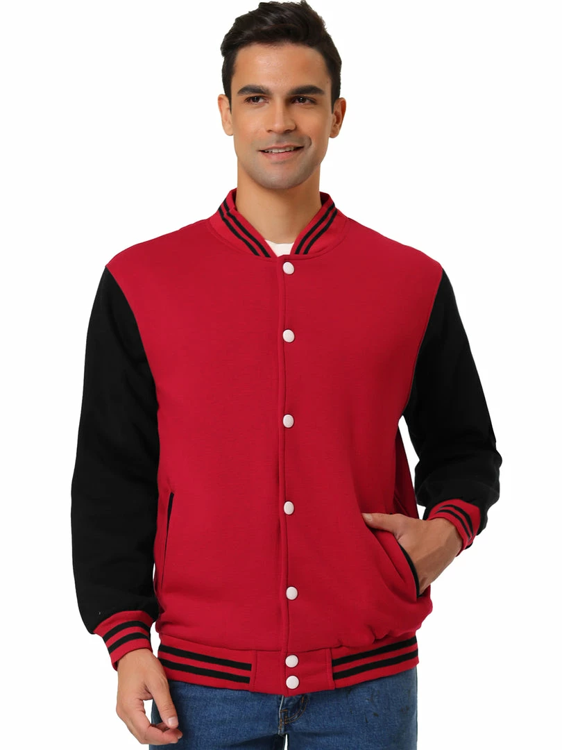 Allegra K Men’s Varsity Baseball Jacket Button Down Color Block School Uniform Bomber Jackets Coats & Outerwear