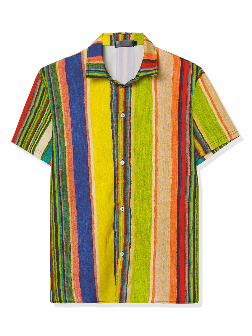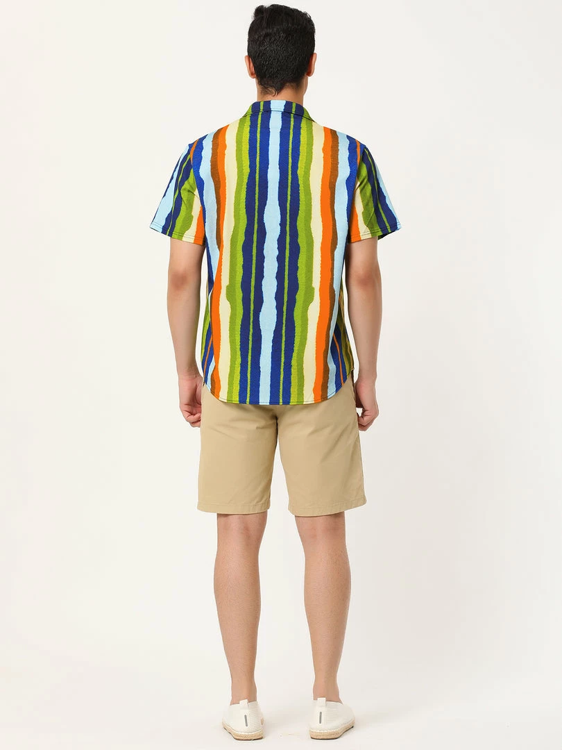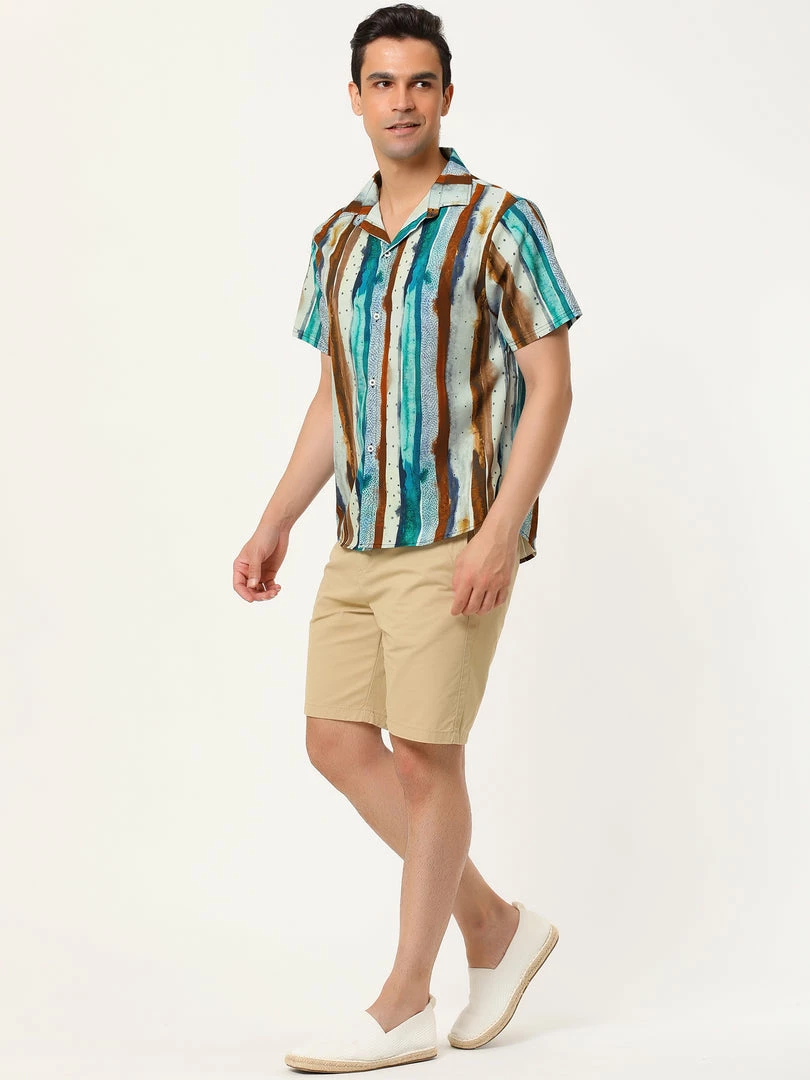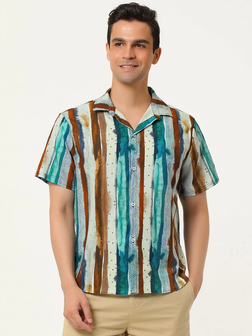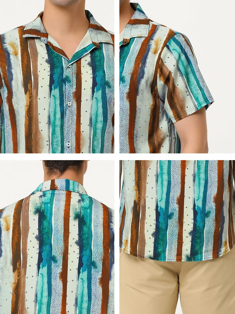Allegra K Men’s Vertical Striped Shirt Short Sleeve Button Down Hawaiian Color Block Stripes Shirts
