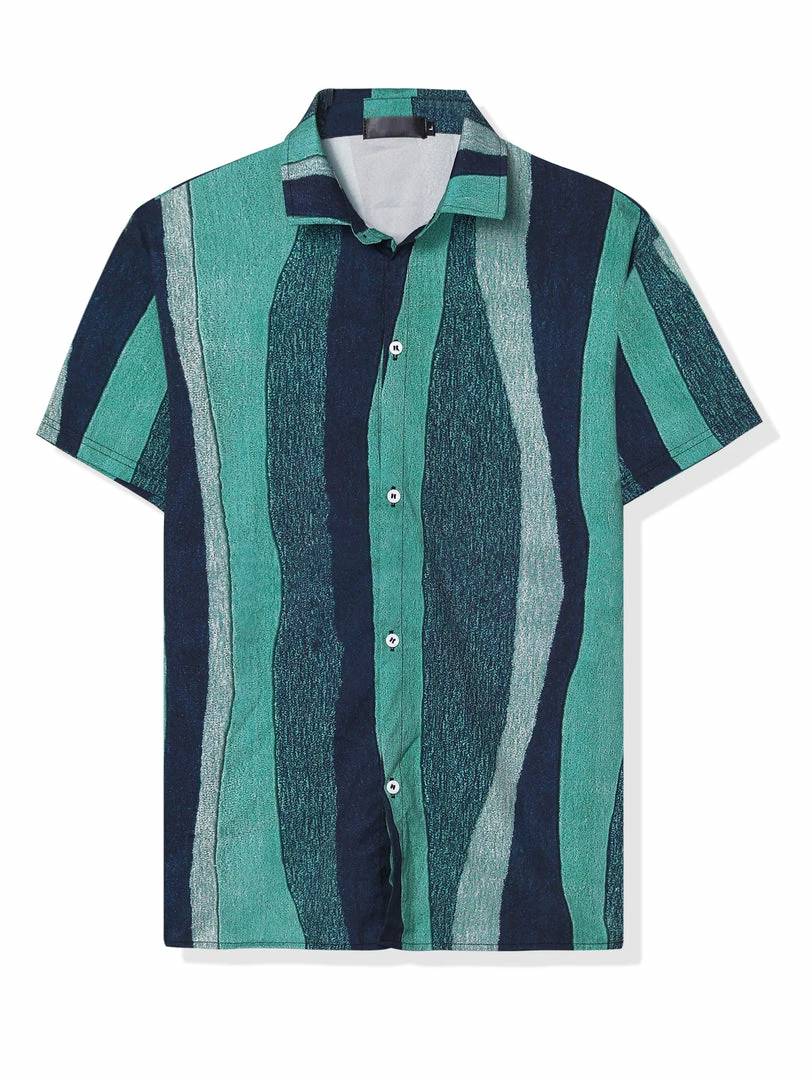 - Top designed with pointed collar, button down closure and short sleeve printed, suitable for boys or men with personalities.