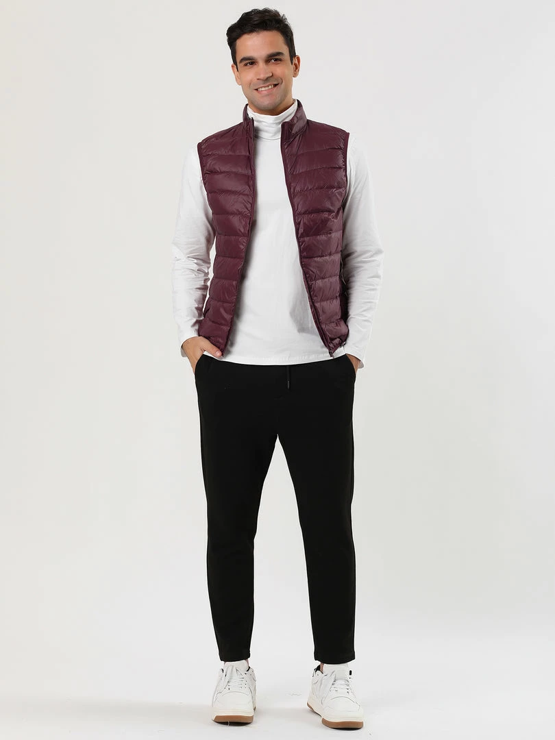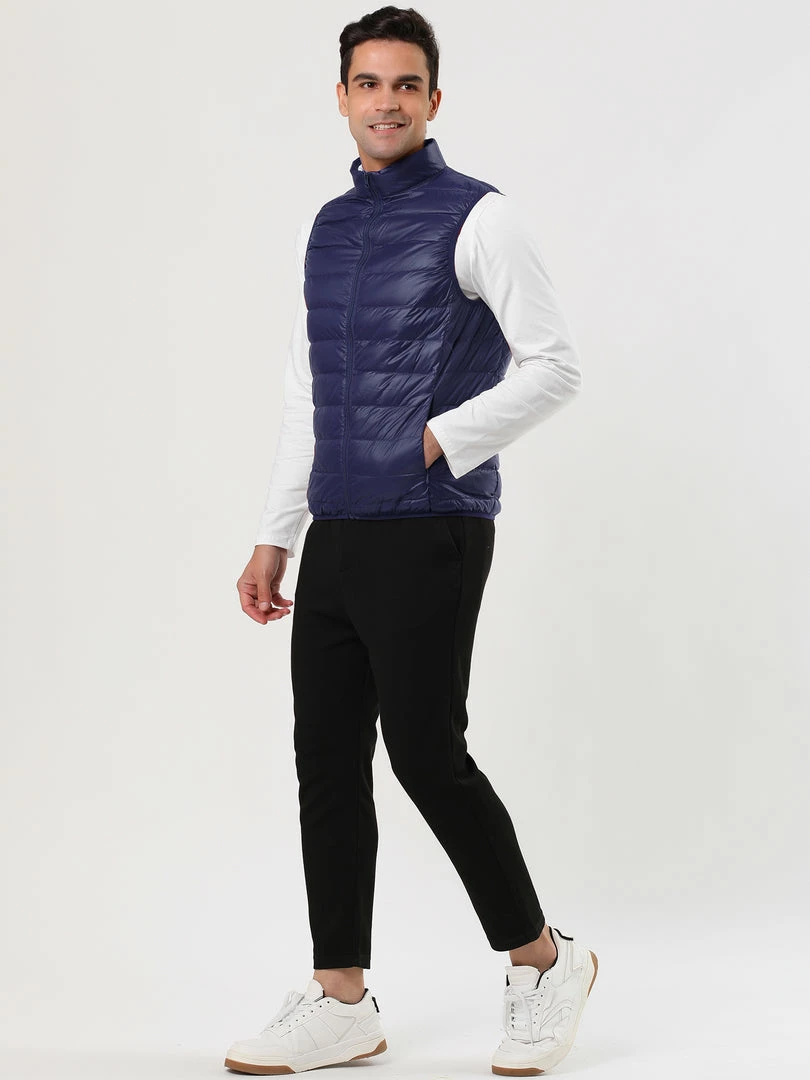 Allegra K Men’s Winter Lightweight Packable Zip Up Sleeveless Padded Puffer Vest