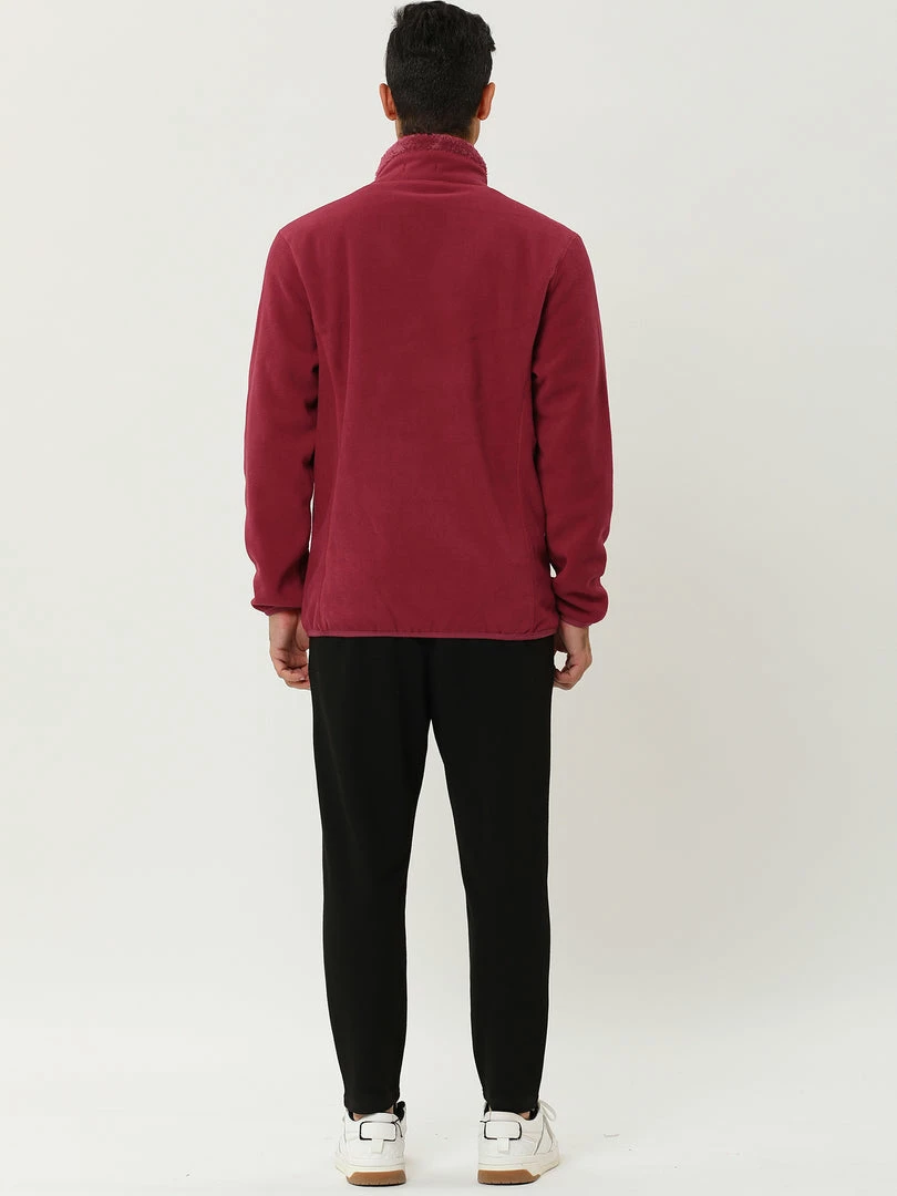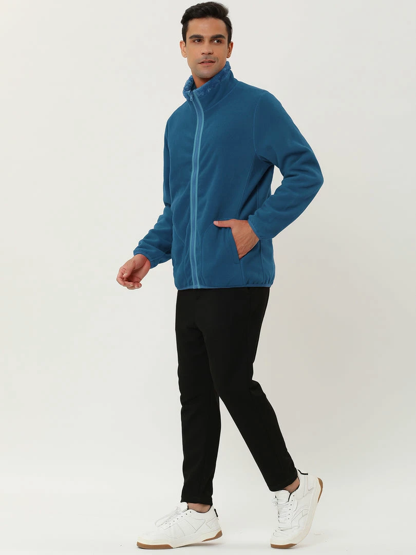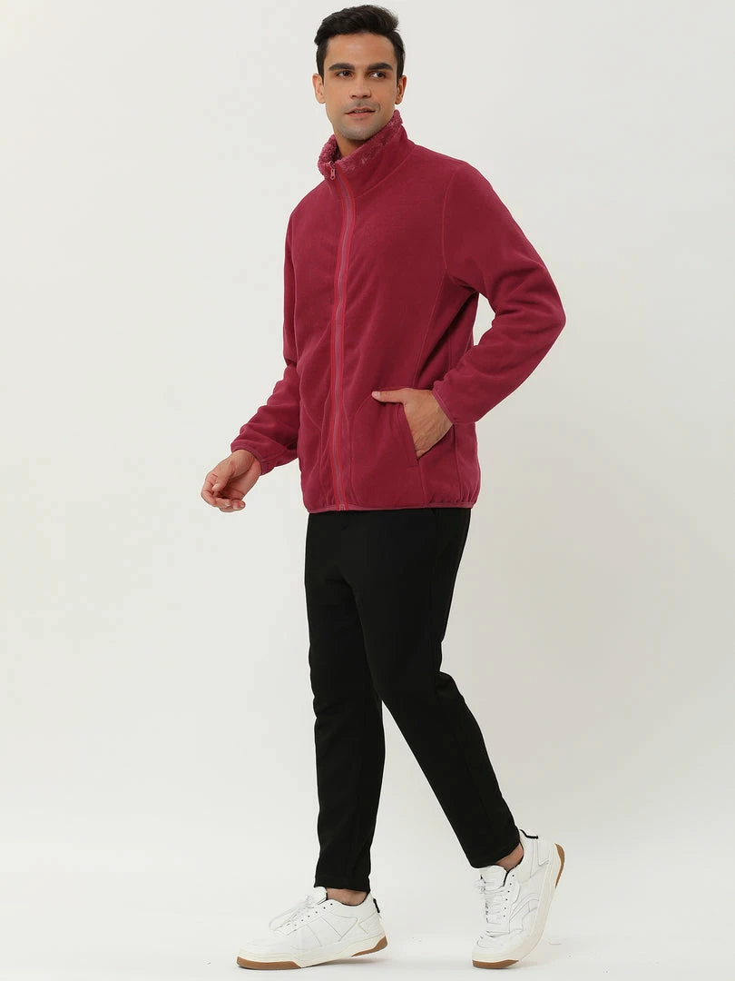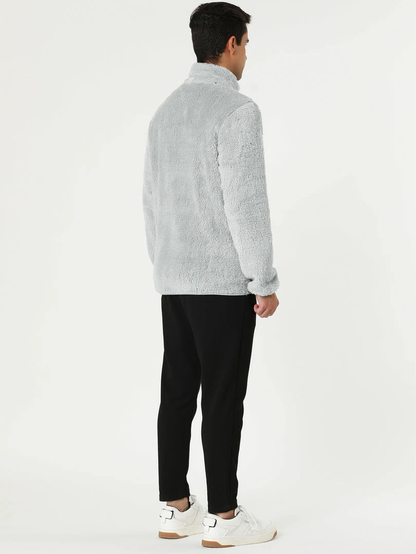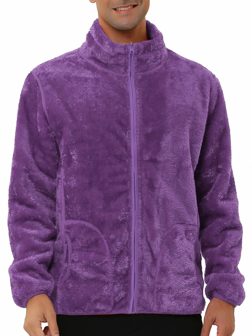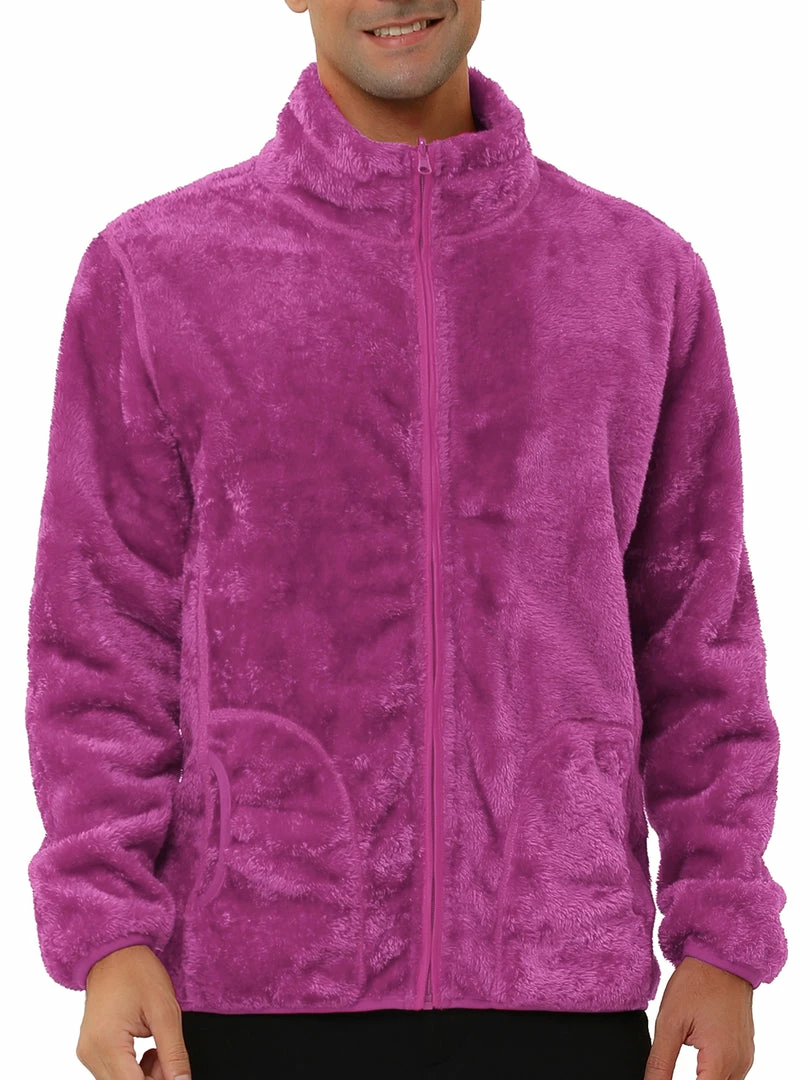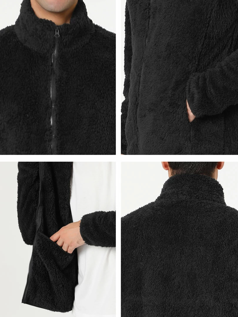Allegra K Men’s Winter Solid Color Long Sleeved Full-Zip Sherpa Fleece Jacket