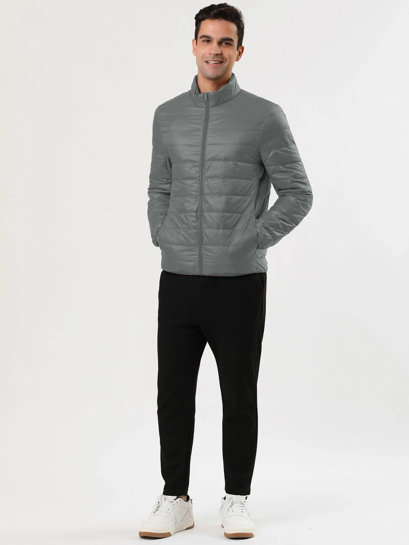 Allegra K Men’s Winter Stand Collar Zip Up Long Sleeves Padded Coat Down Jacket
