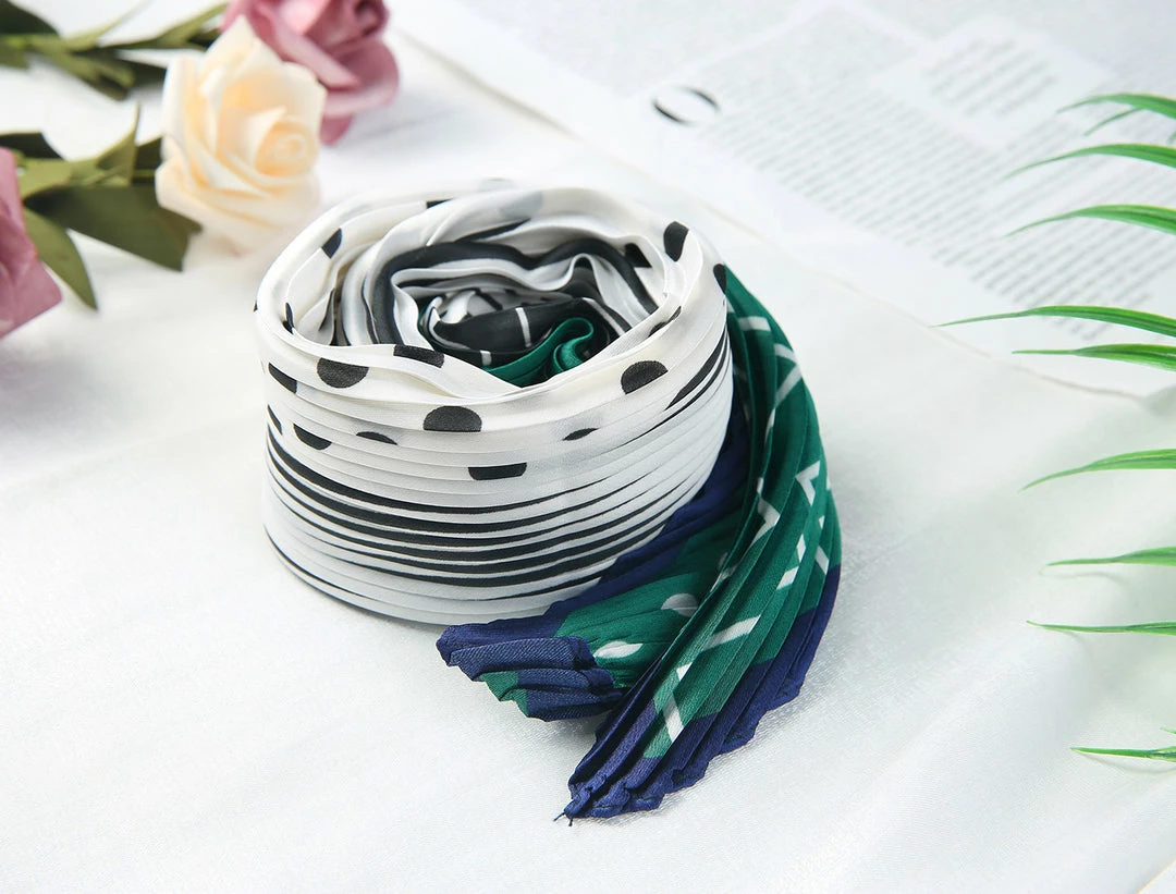 - When you go to party or travel, take this rhombus neck scarf will be a good choice. This scarf can be tied around your hair or your neck.