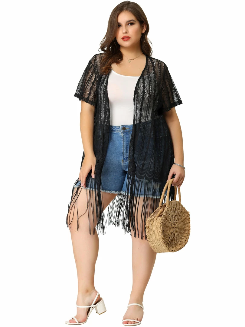 Head to the beach in style with a feminine mesh lace cardigan! Super soft and stylish shapes this essential shawl is asymmetric into a drape hem. Layer this with the comfy cardigan for a holiday look on its own for a sesh!