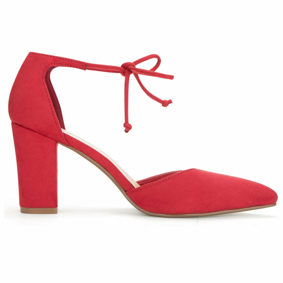 Tapered straps encircle the ankle and tie into a simple bow above a dramatic pointy-toe pump anchored by a high block heel. Slip into these stunners when you want to feel polished and feminine.
