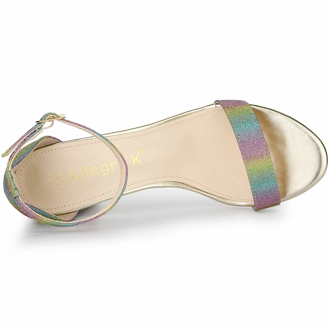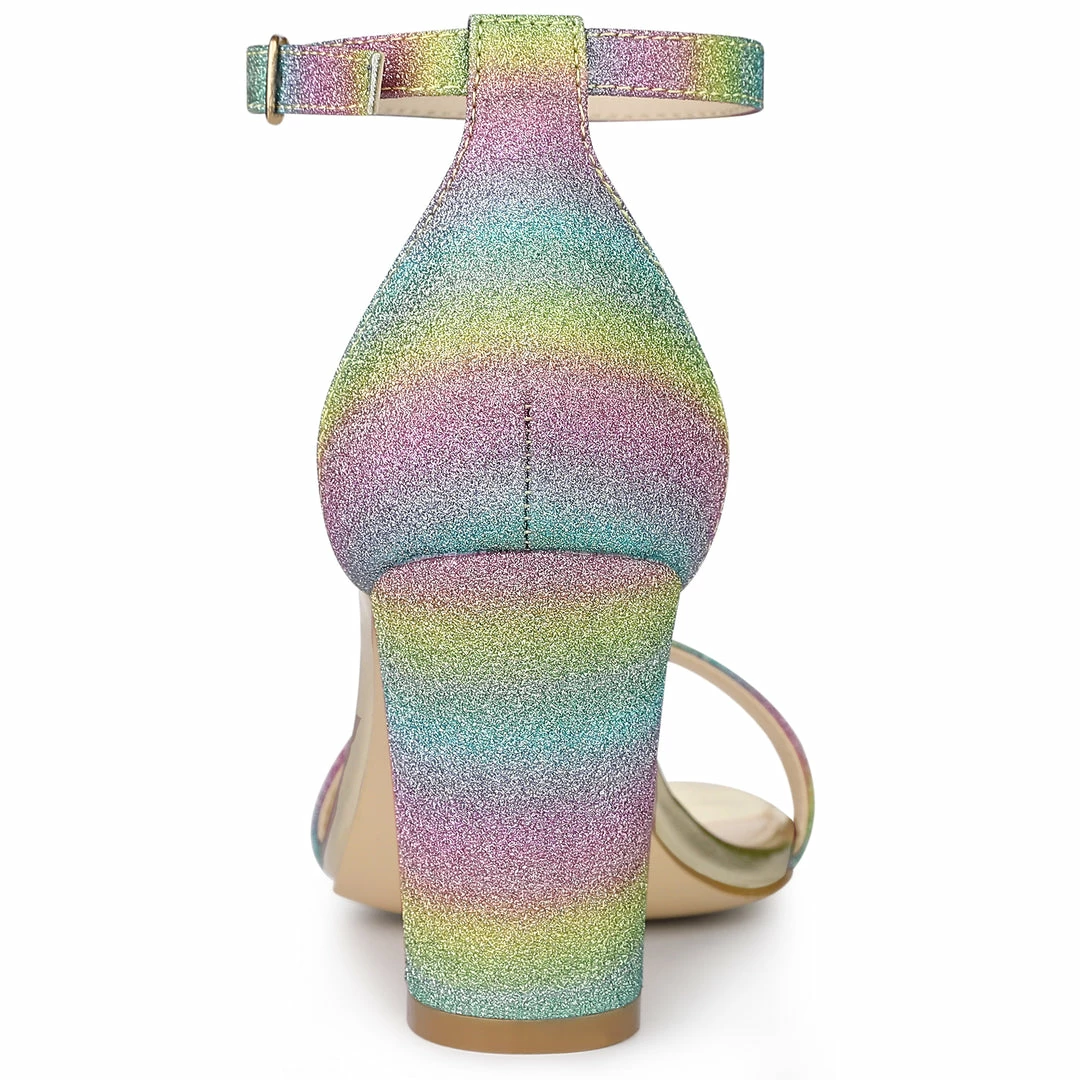 Especially love this rainbow glittered sandals that catches light from every angle. Made from glitter, they has ankle strap and rest on 75mm heels. They’re a great option for your next special occasion.