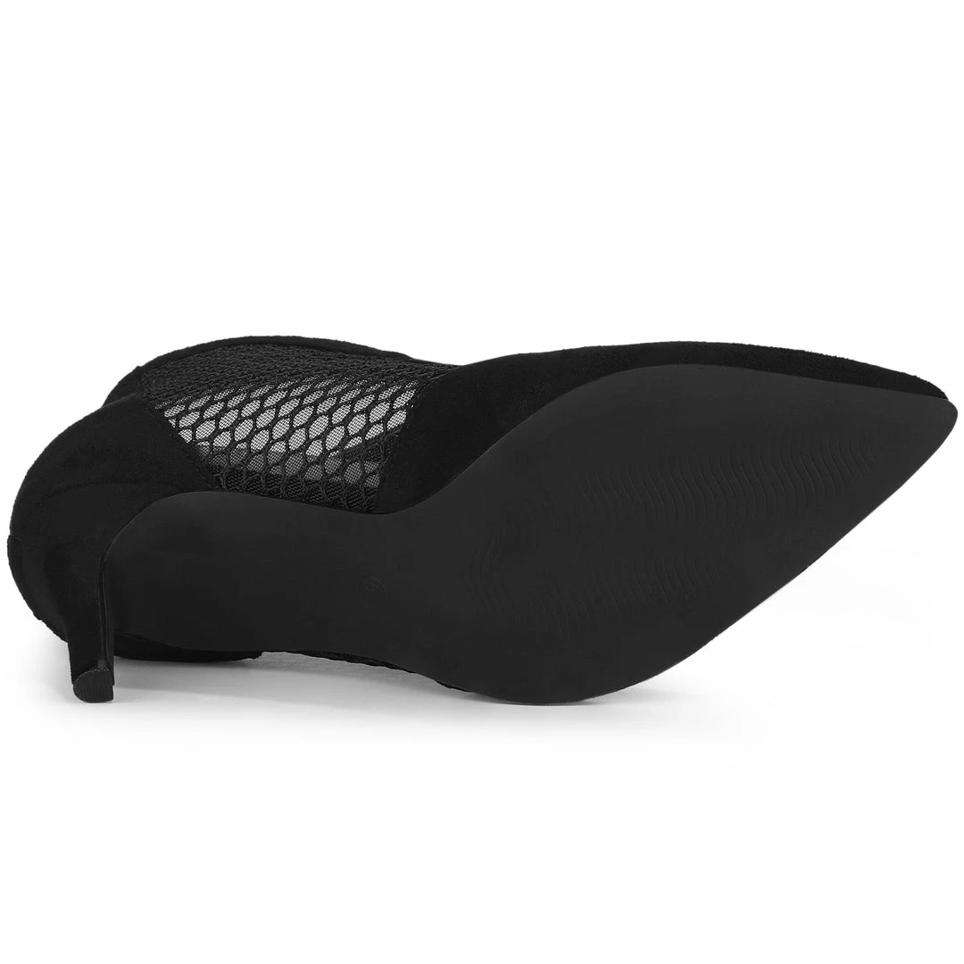 From the Sole Comfort range, these stylish ruffle ankle boots have a mesh fabric, stiletto heel. Perfect for teaming with trousers or a mini skirt for a casual downtime this season.