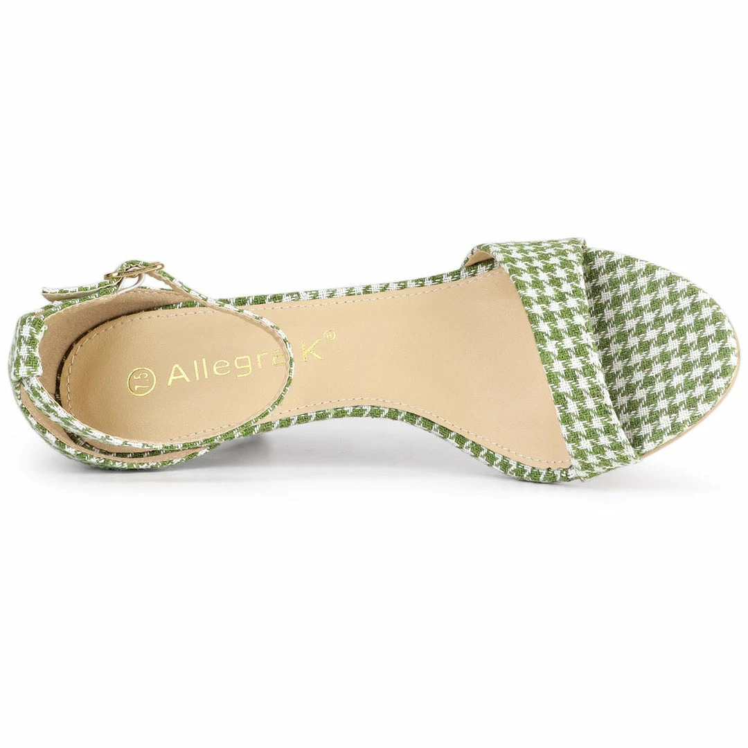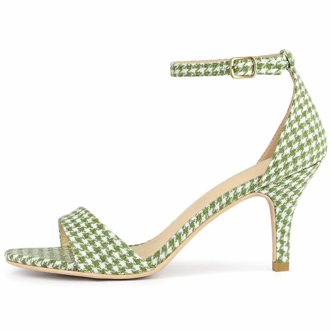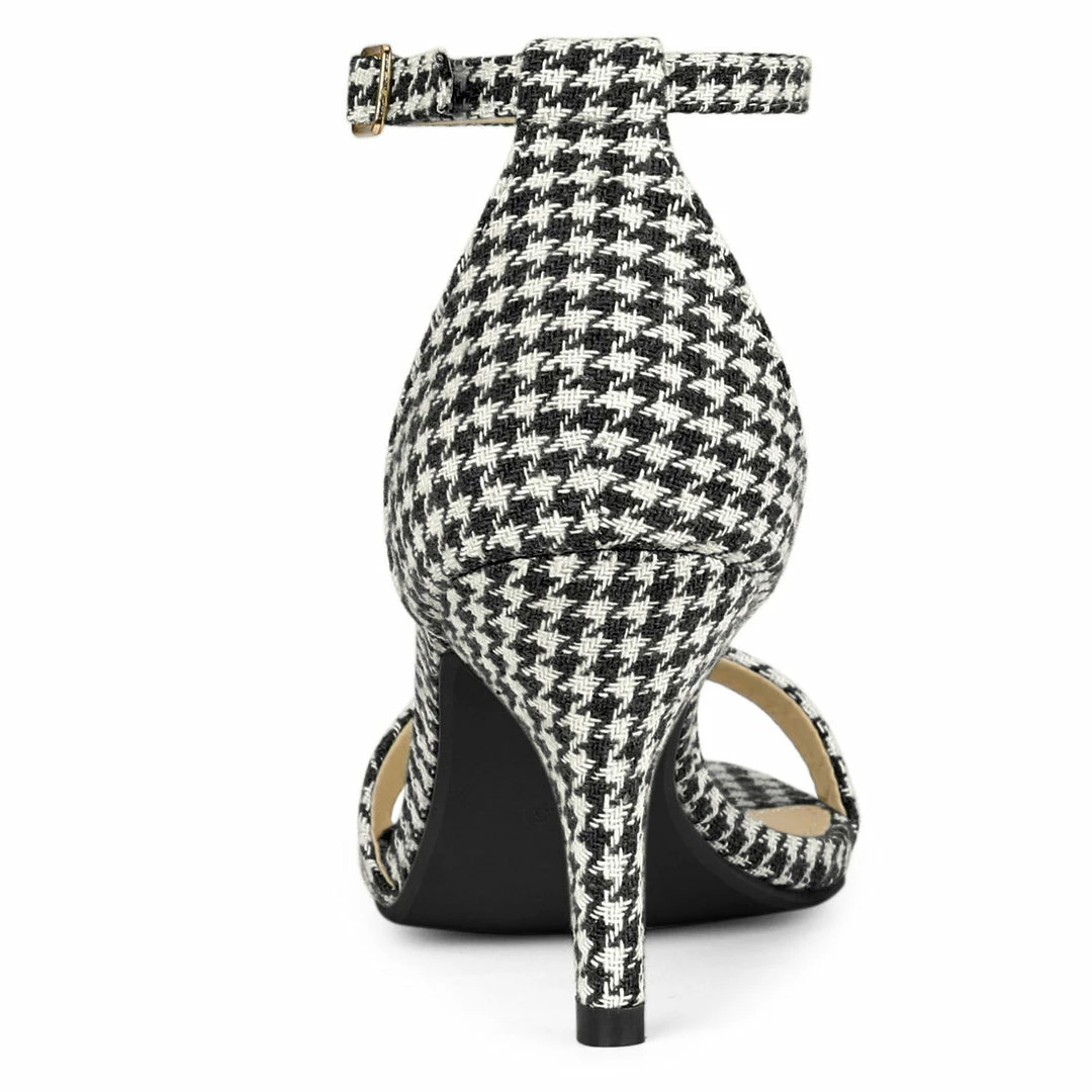 Go bold while keeping your look sleek with the Houndstooth High Heel Sandals! Trendy houndstooth fabric shapes these design heels with a ankle strap that creates a minimalist effect across the open toe upper.