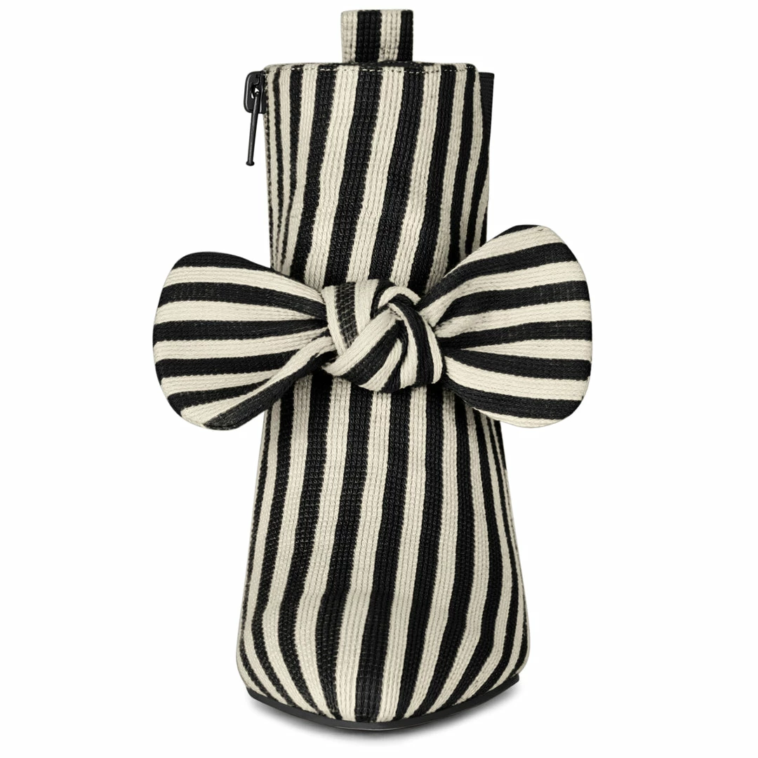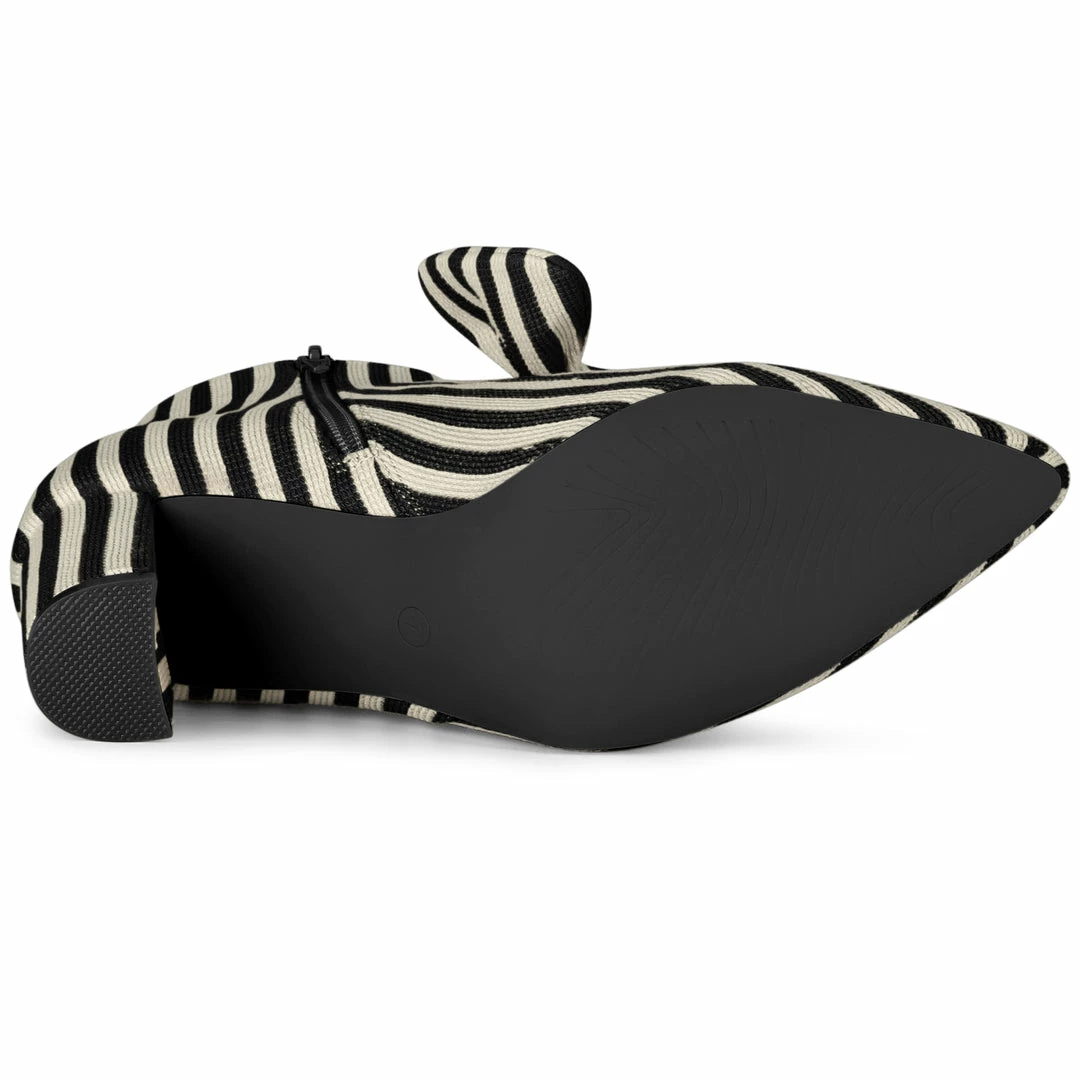 These fashionable stripe decor ankle boots have a pointed toe with a coordinating chunky heel and a side zip closure for a versatile beauty that can’t be beaten.