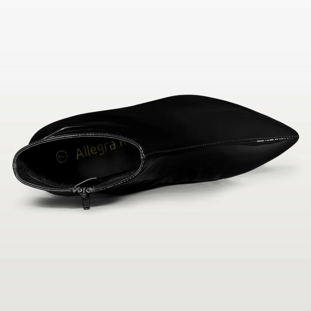 This lacquer technology of patent leather shows one kind of luxury; the mirror surface, just right height ankle boots, paired well with dress, jeans or skirts. Besides, the pointed toe style, can make your legs more slender, easy on and off with the boots of the zipper style.