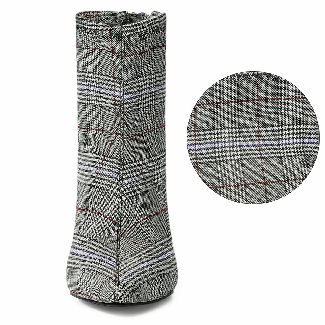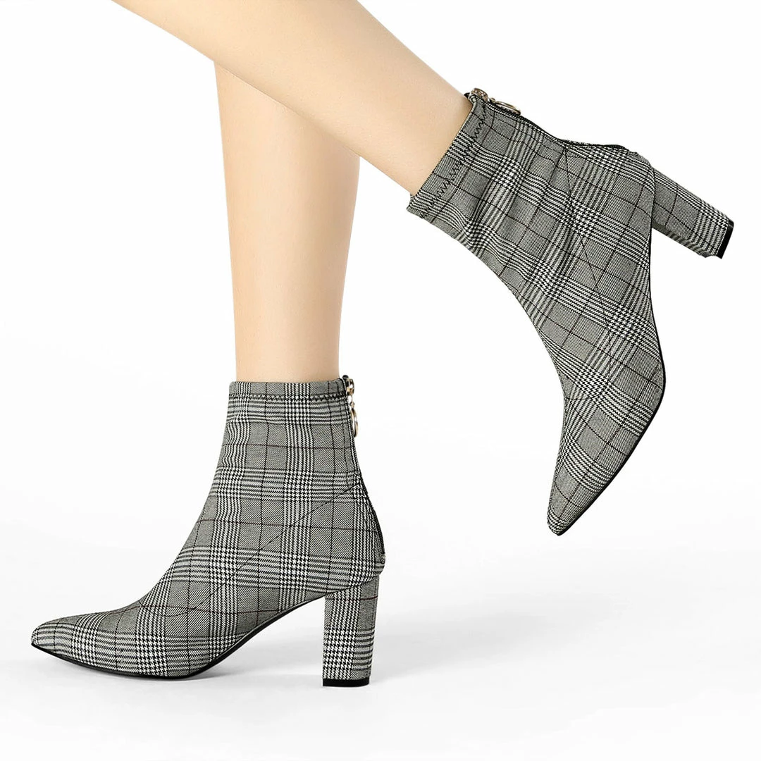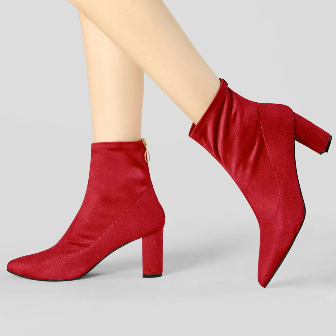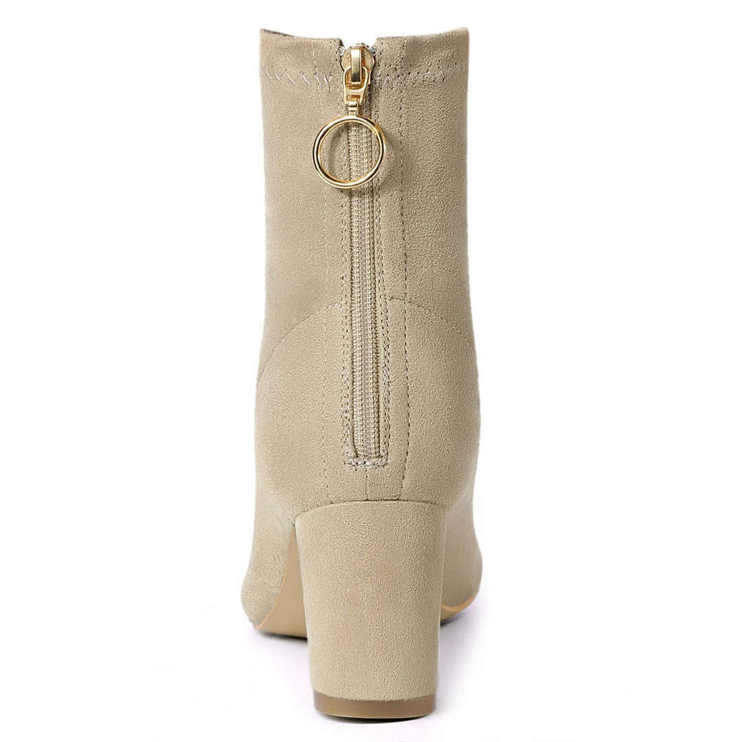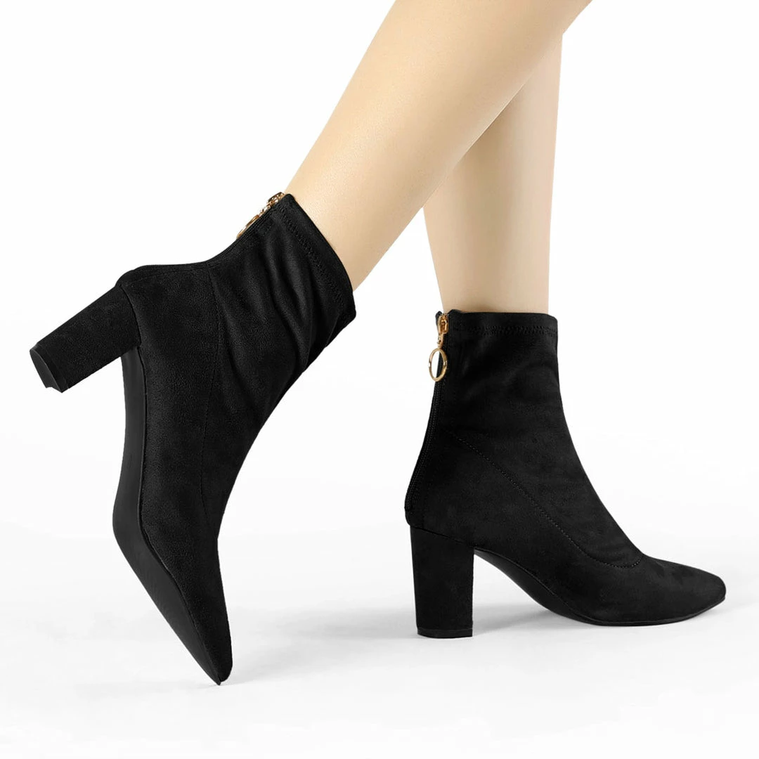 Update your footwear collection with these super stylish ankle boots. With a zip closure, block heel , fabric or faux suede and these are perfect to wear with skinny jeans for a chic look.