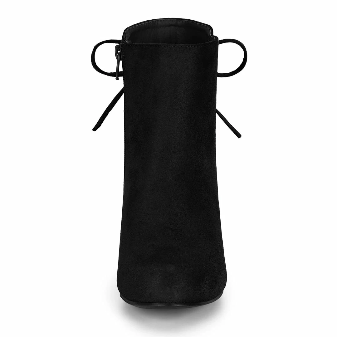 Back lace up add interest to the nicely round-toe boot lifted by a high block heel and outfitted with a comfortably cushioned footbed that offers excellent arch support.